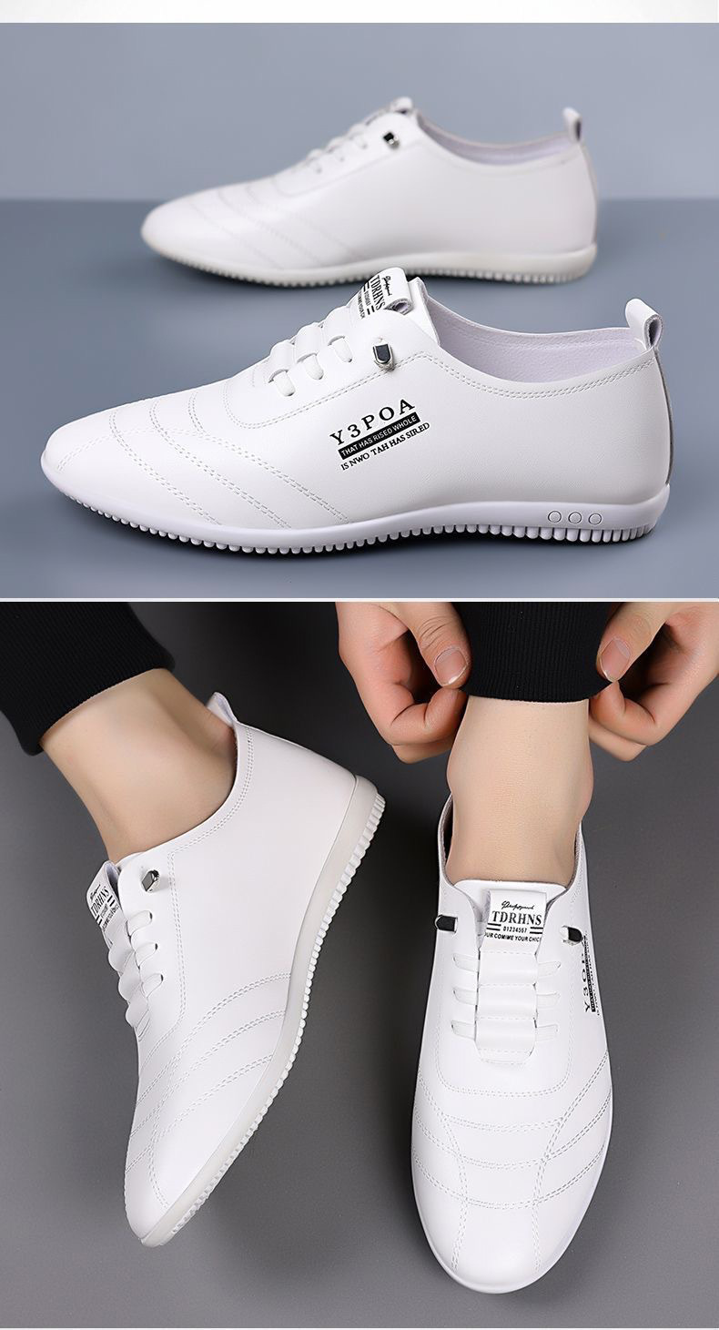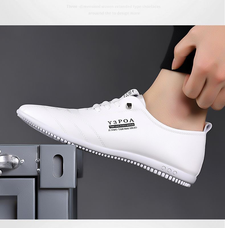 Новые мужские кожаные туфли, повседневные универсальные белые туфли в корейском стиле, мужские повседневные туфли на мягкой подошве, деловые кроссовки.