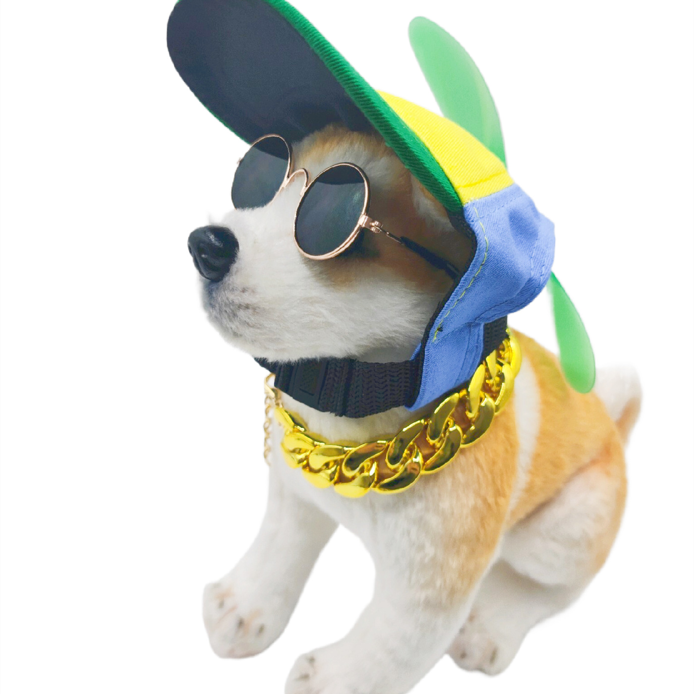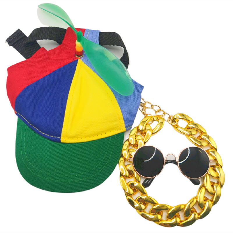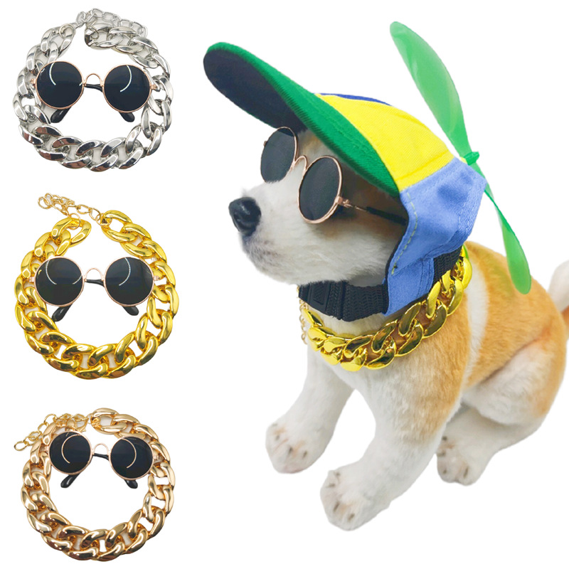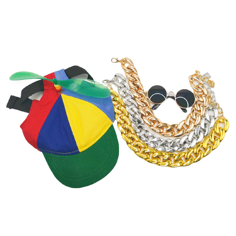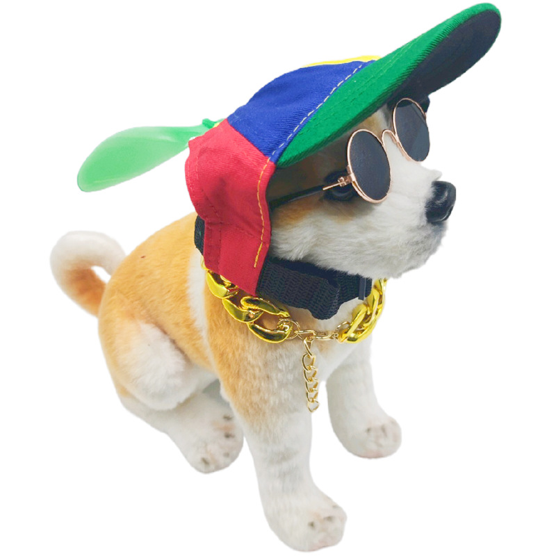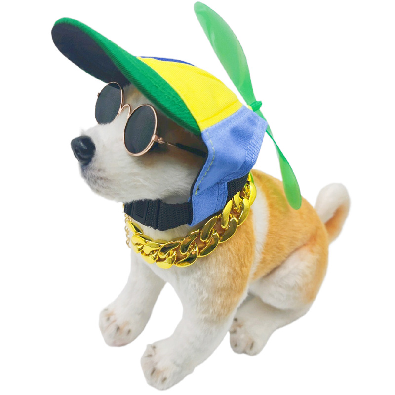 Новый стиль домашнее животное шляпа собака бейсболка Тедди Фа Доу Лабрадор большое золотое ожерелье очки шапка из трех частей