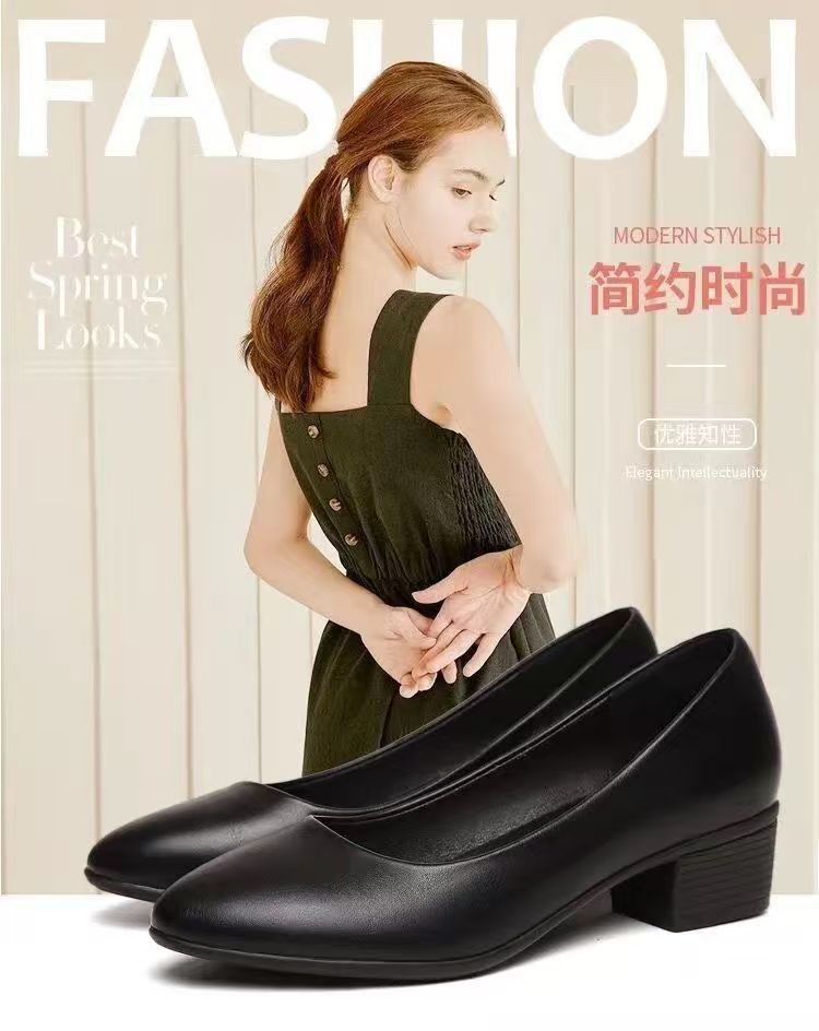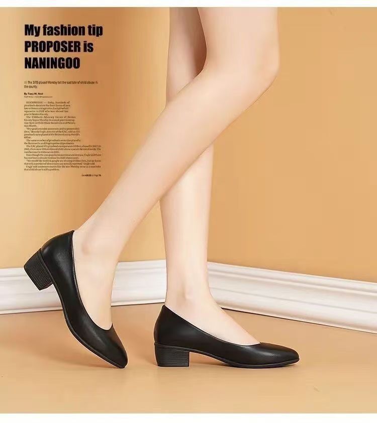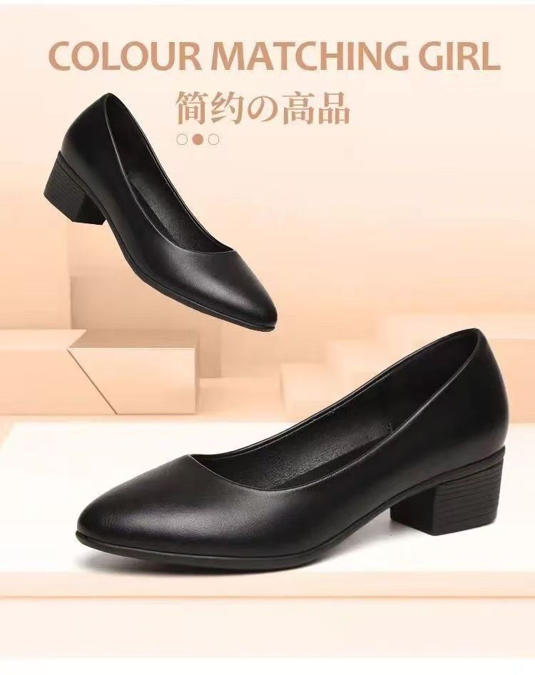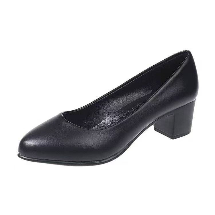 Женские кожаные туфли на низком каблуке, рабочая одежда на среднем каблуке, официальная одежда, женская весенне-осенняя рабочая обувь стюардессы на низком каблуке, черные профессиональные женские туфли для женщин.