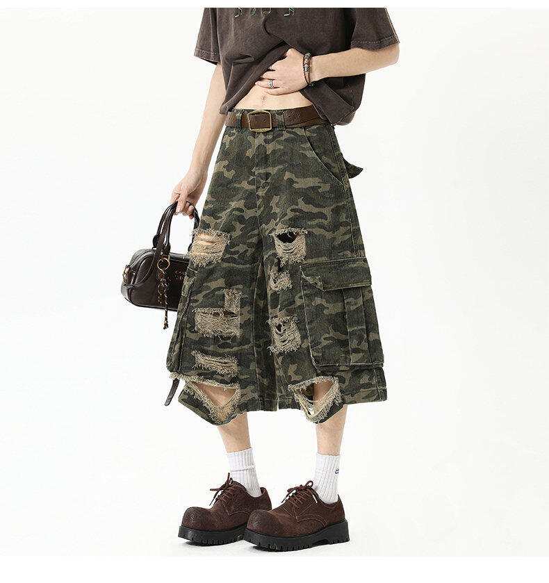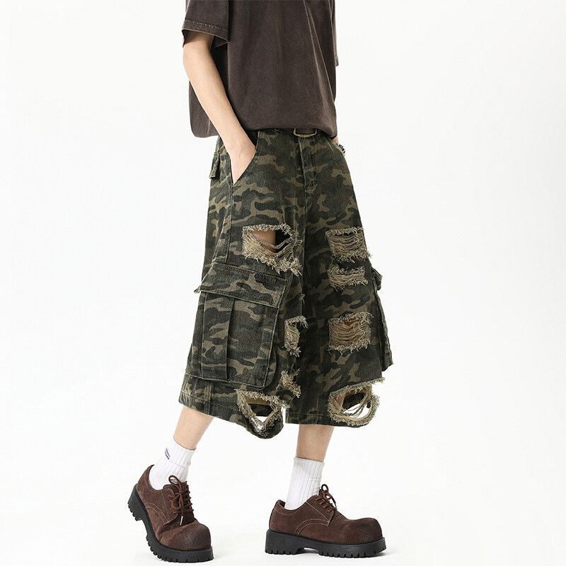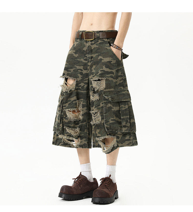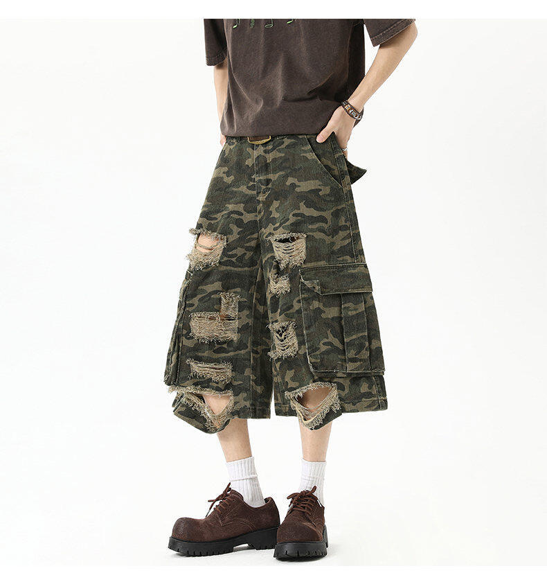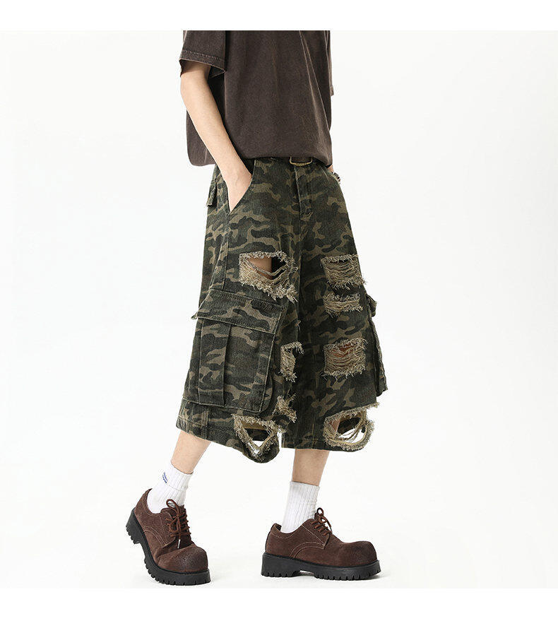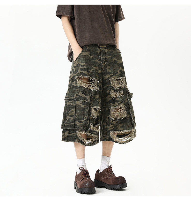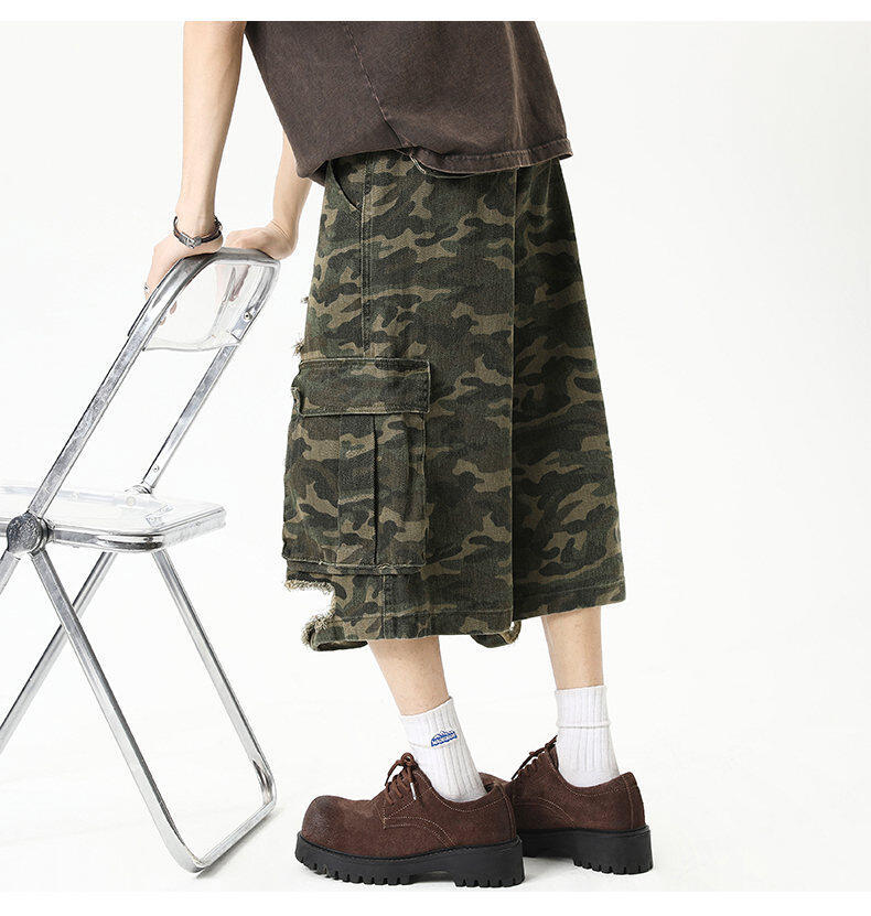 2025 камуфляжные рваные шорты джинсы контроль цен 88 американский хип-хоп стиль потертые укороченные брюки мужские цельные дропшиппинг