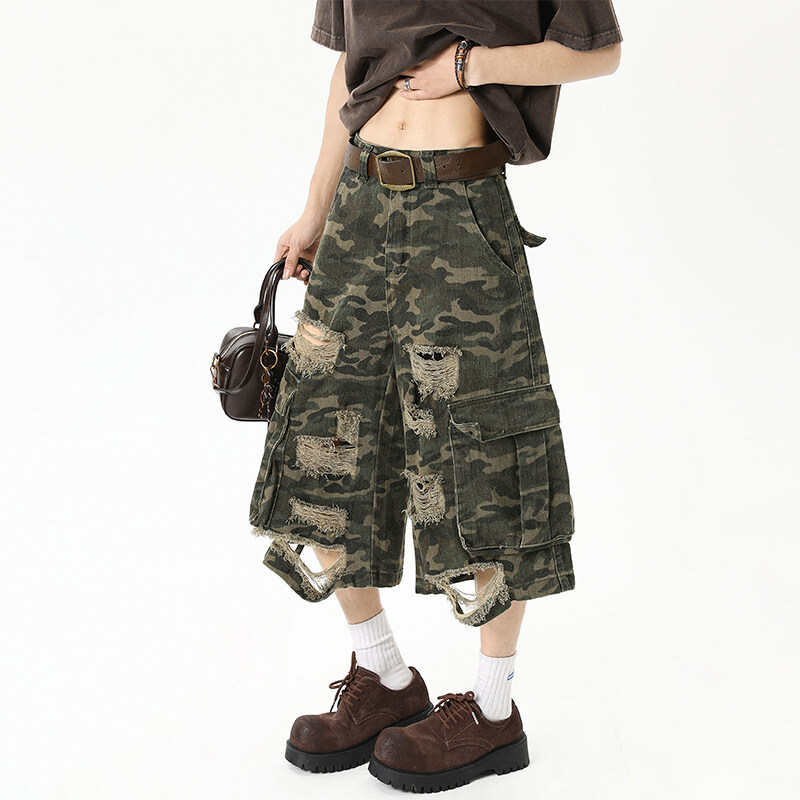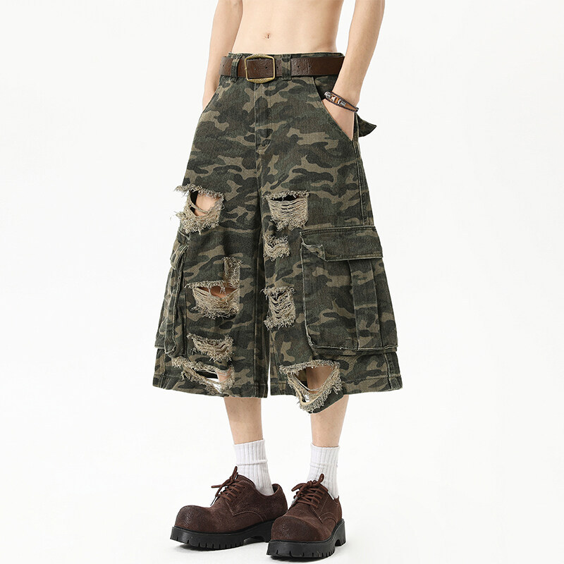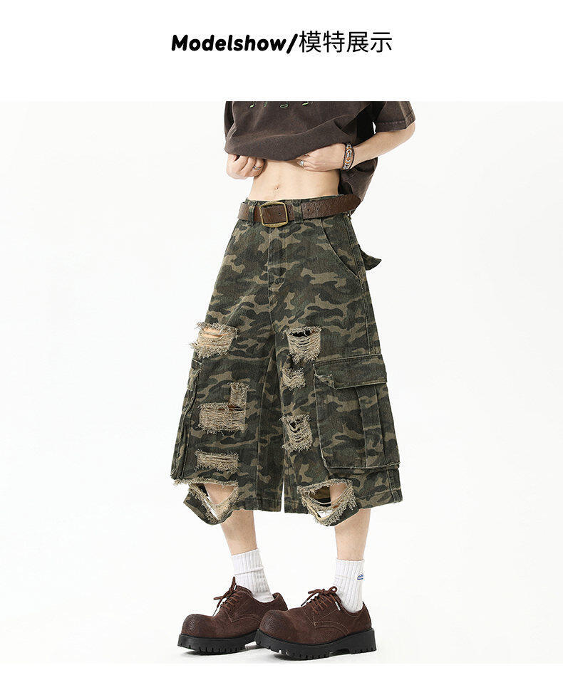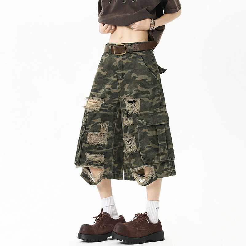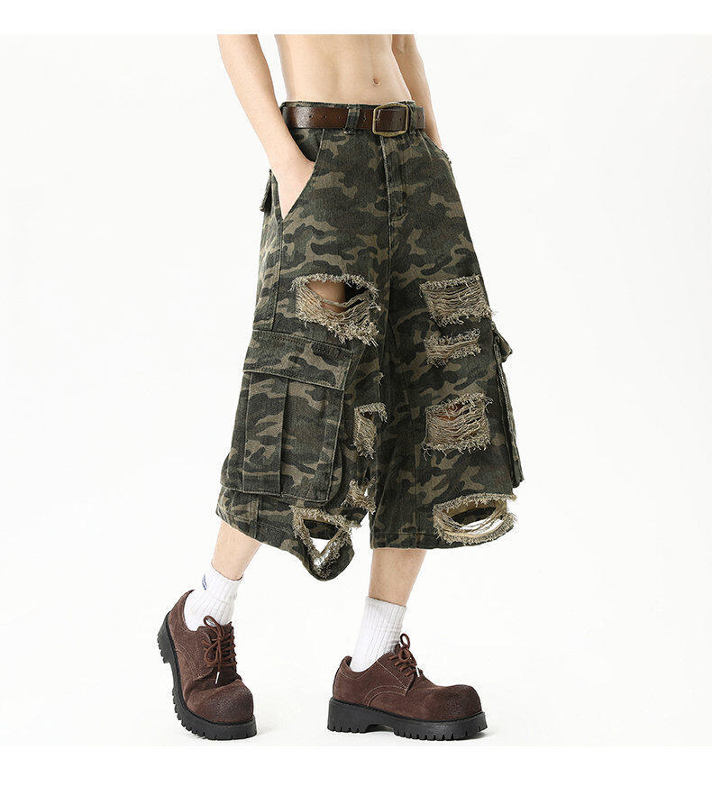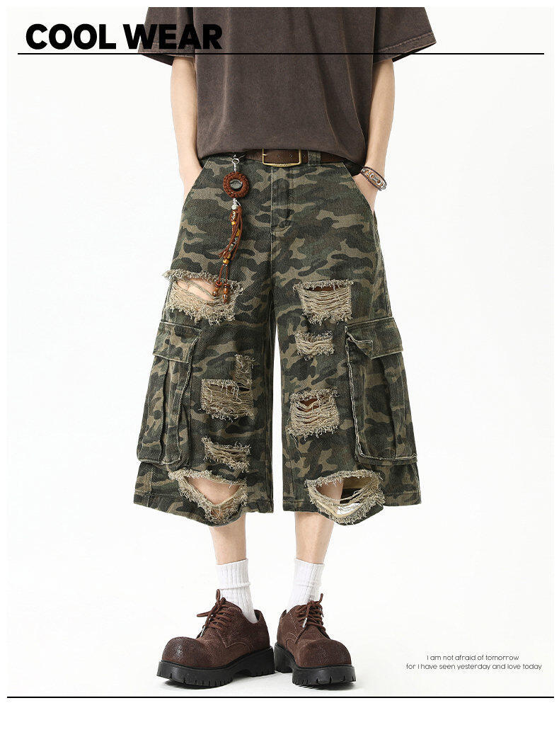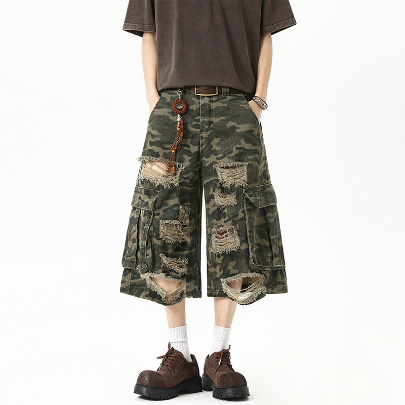 2025 камуфляжные рваные шорты джинсы контроль цен 88 американский хип-хоп стиль потертые укороченные брюки мужские цельные дропшиппинг