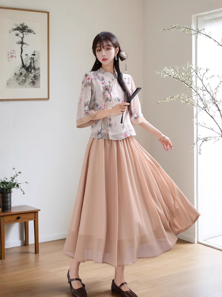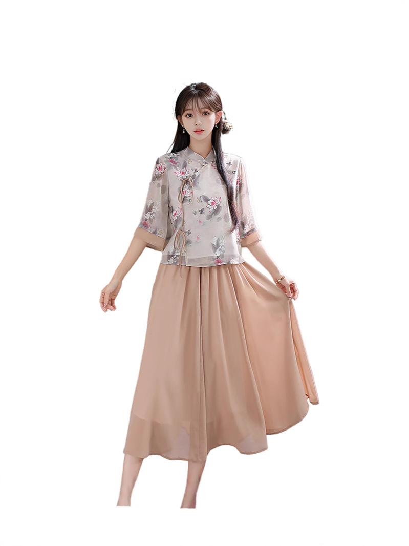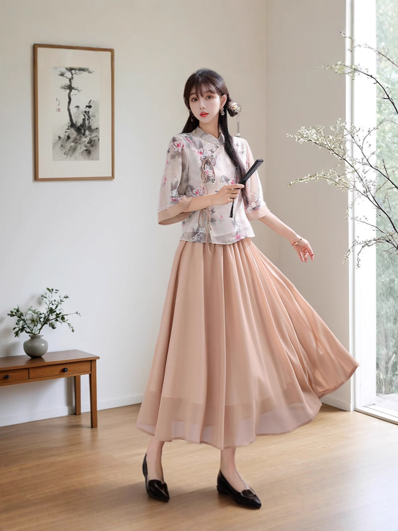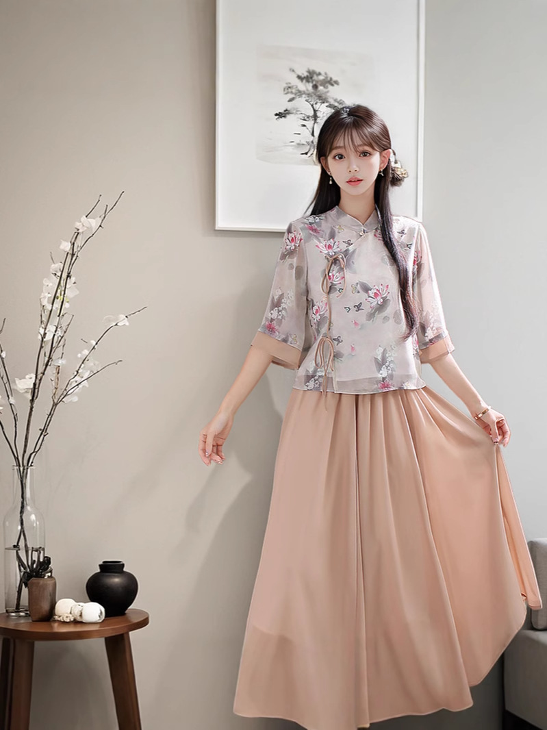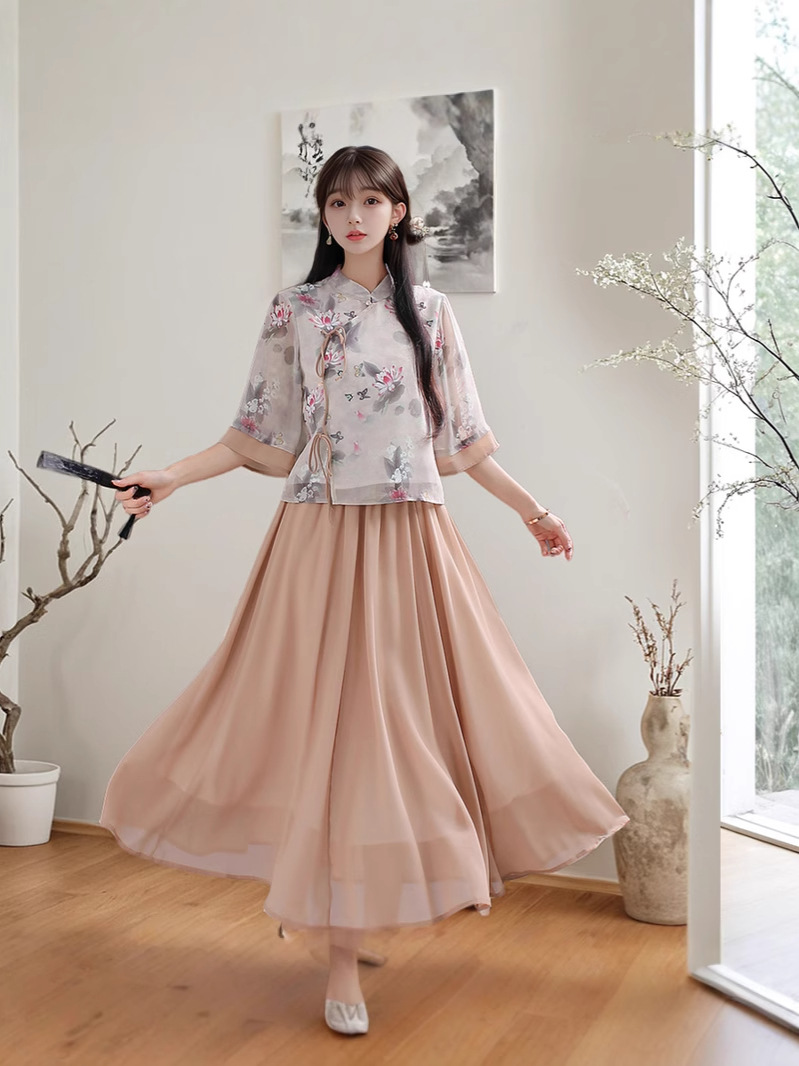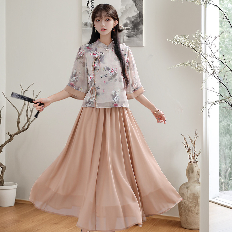 Летний костюм 2025 года в ретро-стиле, новый китайский стиль, улучшенный повседневный чонсам в стиле династии Хань, тан-костюм, верх в стиле Республики Китай, чайный костюм.