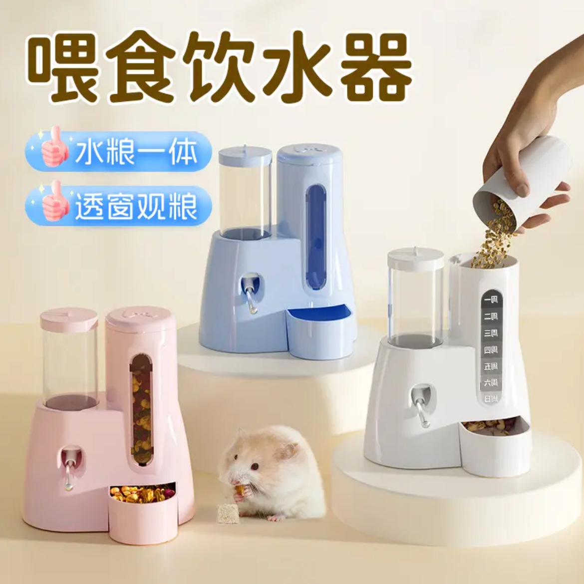 Автоматическая кормушка и поилка для хомяков с функцией кормления и поения, золотой медвежонок, чайник, миска для еды, двухфункциональная кормушка с шариком для воды, дропшиппинг