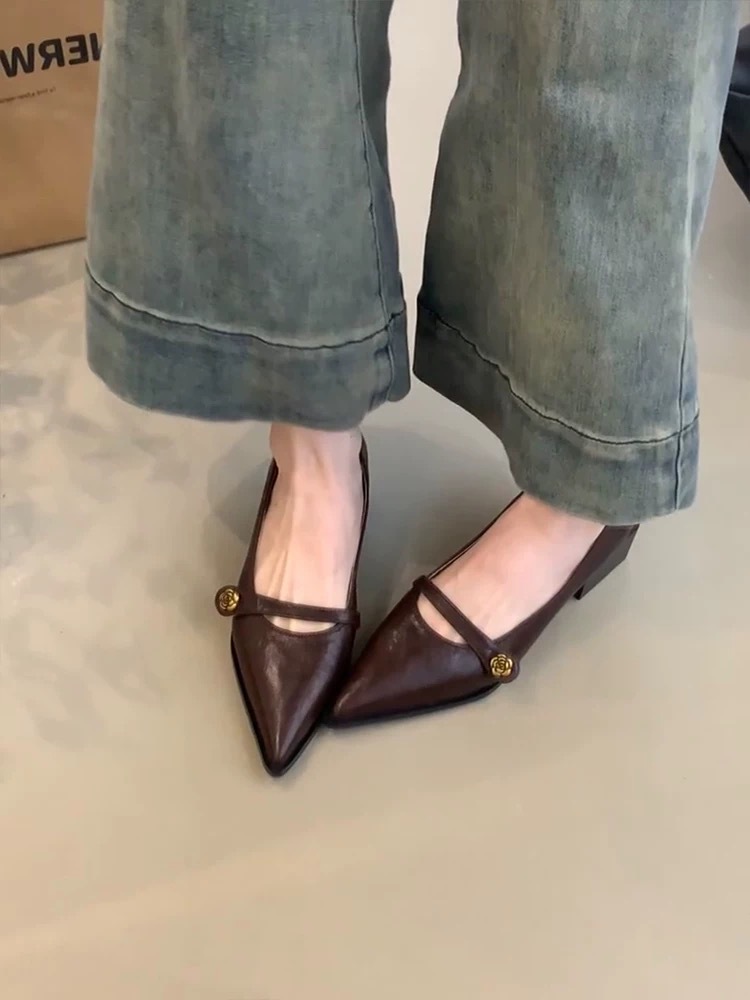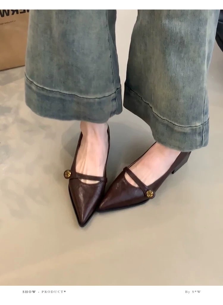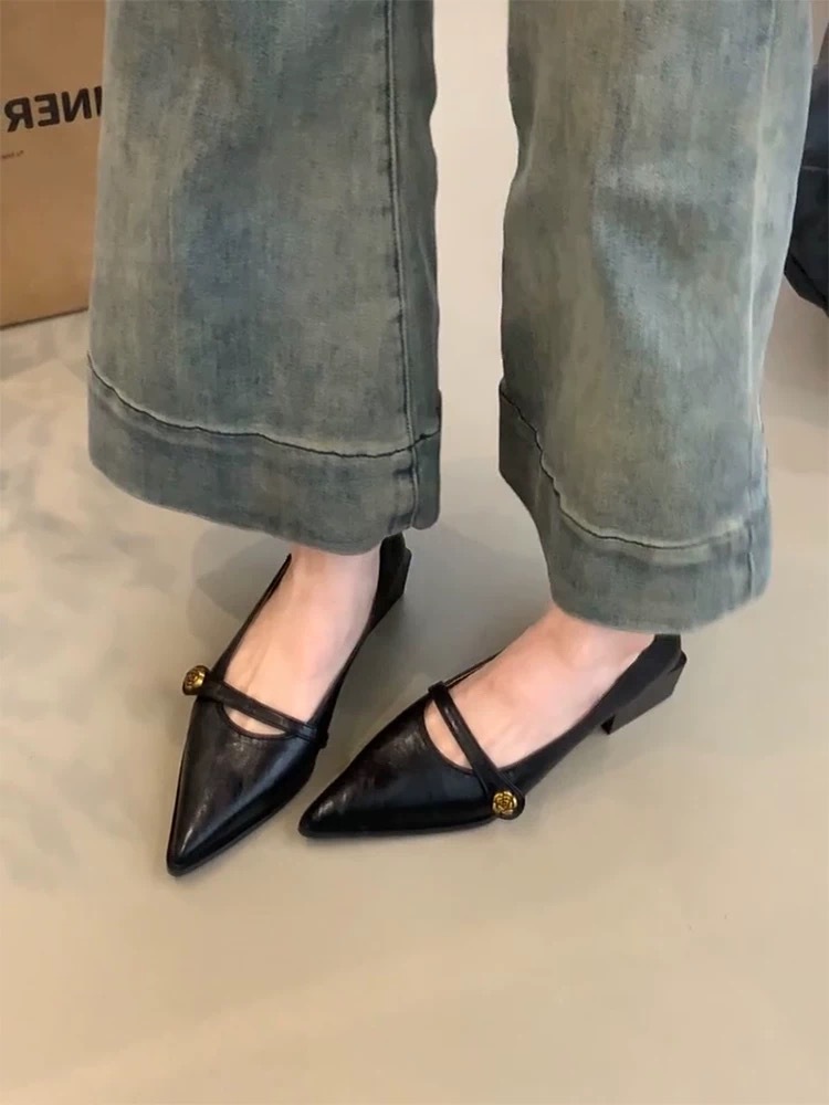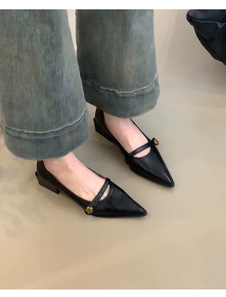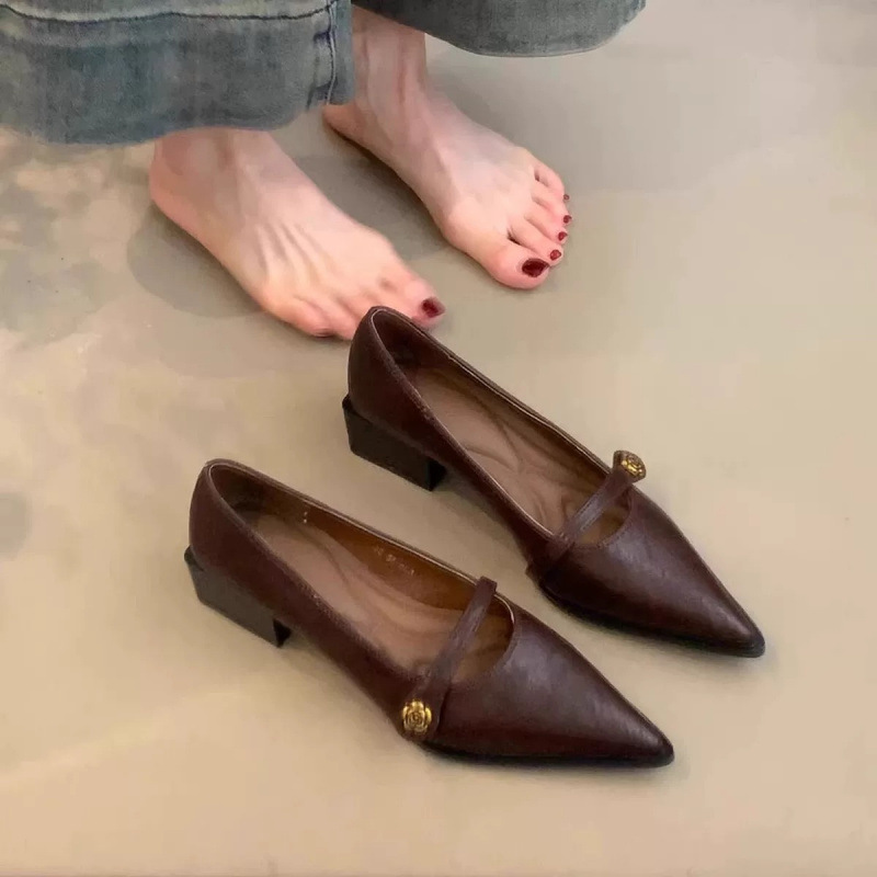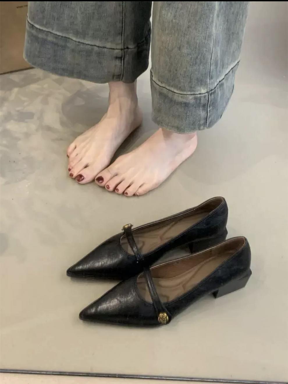 Женские туфли-лодочки на среднем каблуке с заостренным носком, французский стиль, весна-осень, на толстом каблуке с пряжкой.