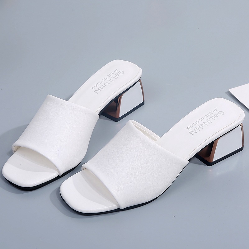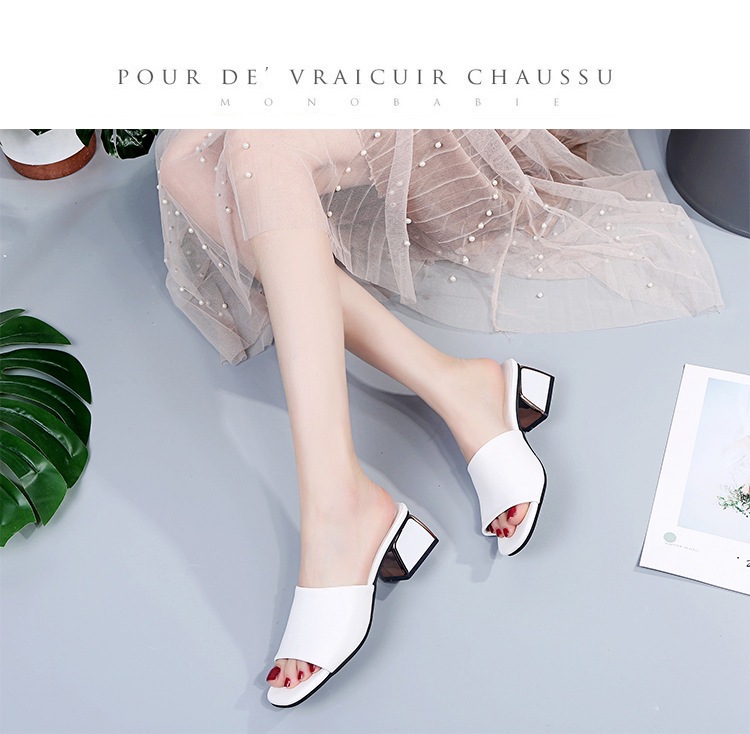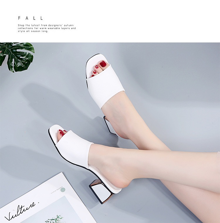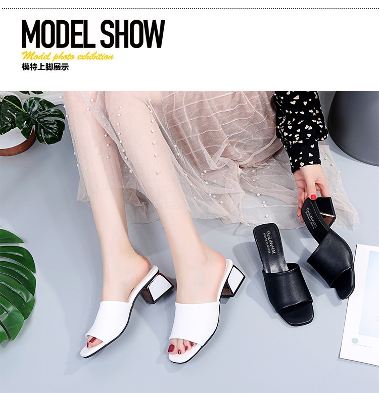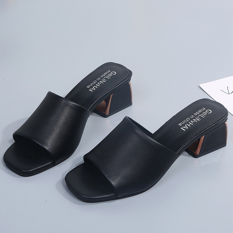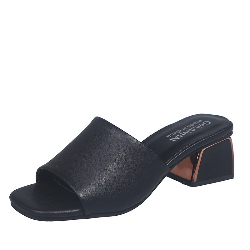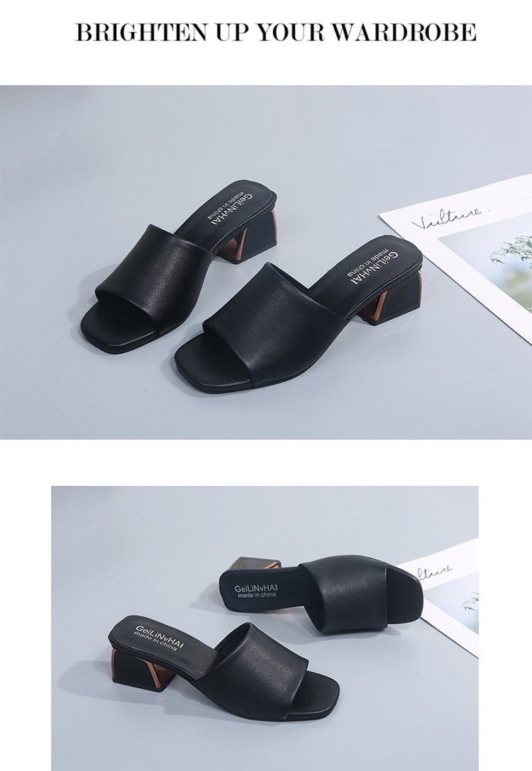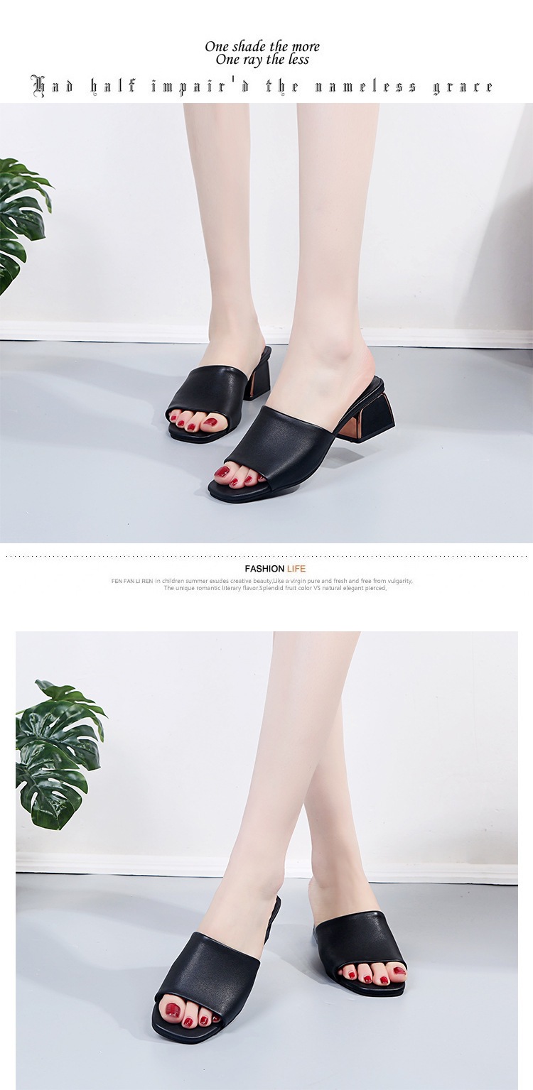 Модные и универсальные женские сандалии из мягкой кожи, новые тапочки на высоком каблуке на толстом каблуке, однотонные полуслипы пляжные сандалии со стразами.