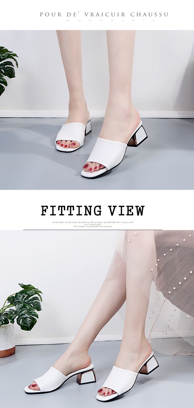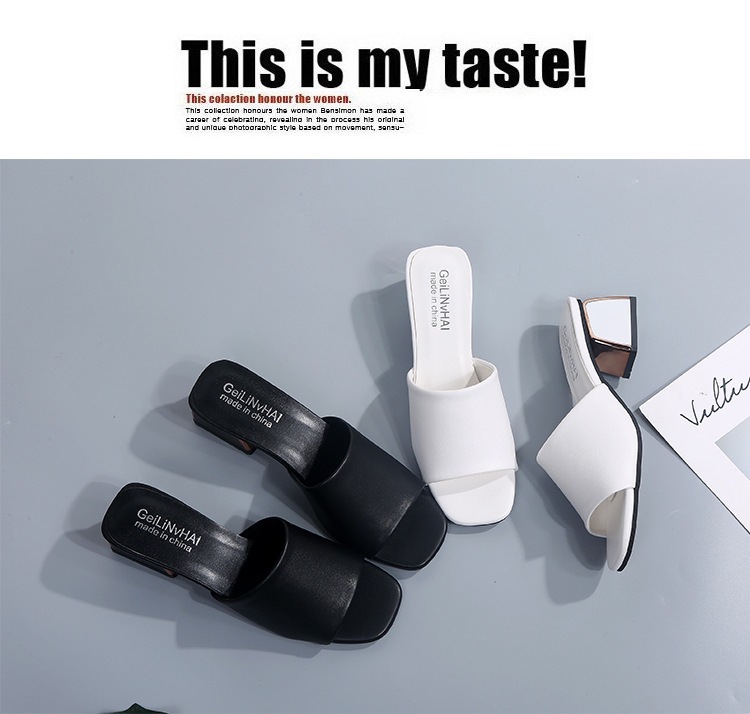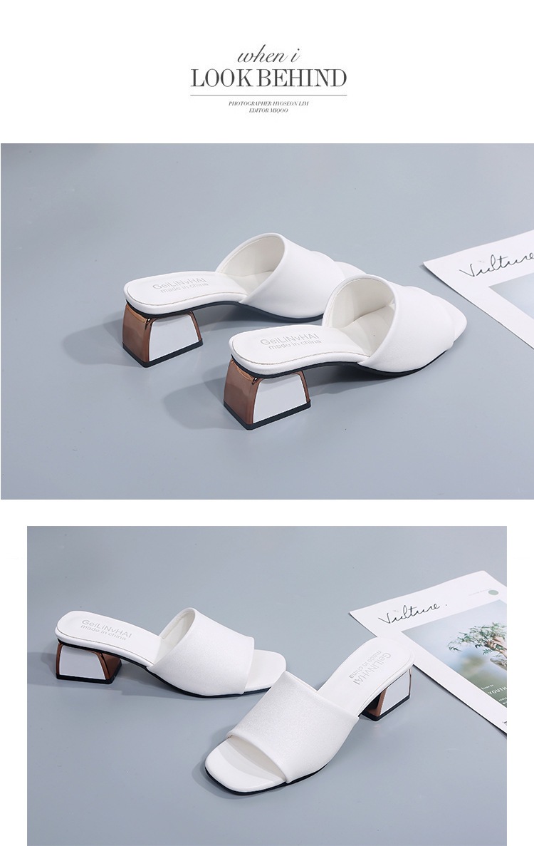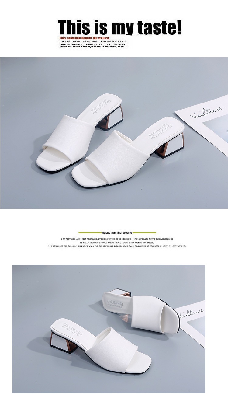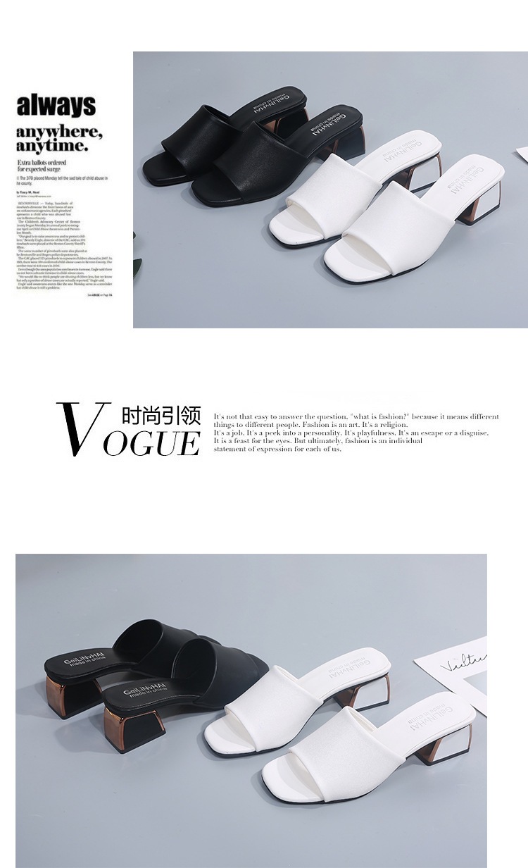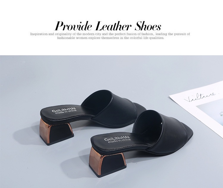 Модные и универсальные женские сандалии из мягкой кожи, новые тапочки на высоком каблуке на толстом каблуке, однотонные полуслипы пляжные сандалии со стразами.