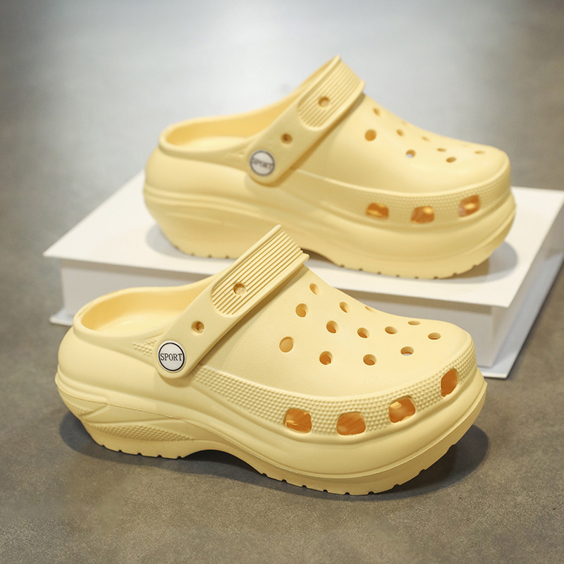 Оптовые летние женские сабо, девичьи облачные тапочки на средней толстой подошве с противоскользящей подошвой, дышащие пляжные сандалии