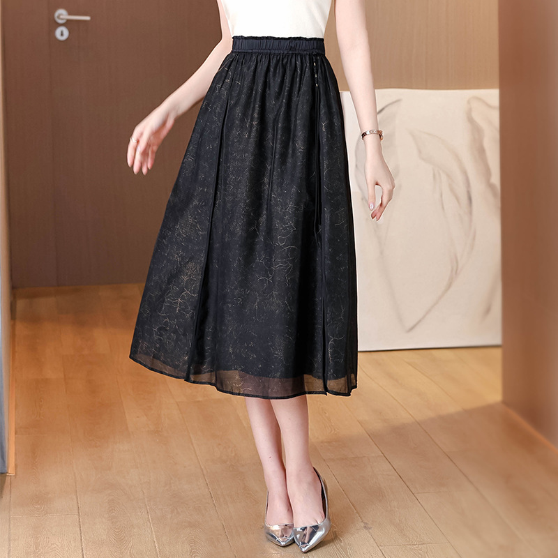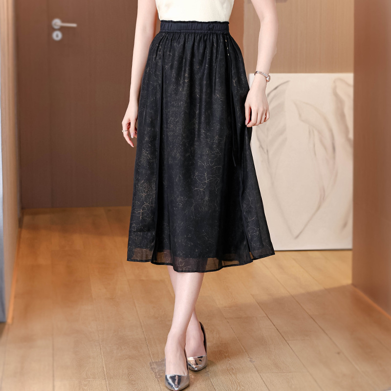 Новая юбка-карандаш в китайском стиле, плиссированная, элегантная, из атласа, миди, облегающая бедра, с эффектом "рыбий хвост", весна-лето 2025