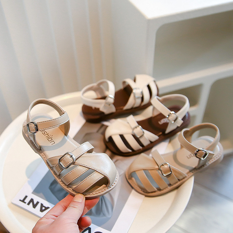 Детские босоножки для девочек лето 2025, новые, с открытым носком, римские, мягкая подошва, туфельки принцессы, пляжная обувь для маленьких девочек