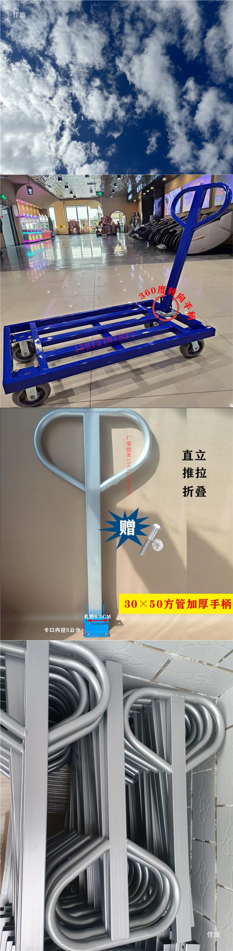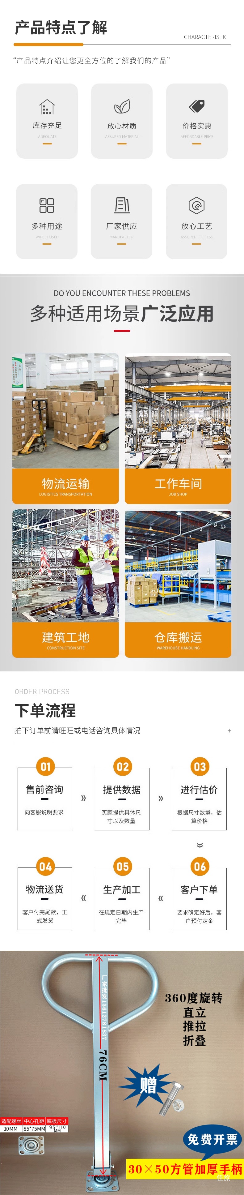 Ручка тележки, тягово-толкающая рукоятка грузовика, платформенный грузовик, вращающаяся ручка, ручка прицепа, аксессуары для тележек из стальных пластин