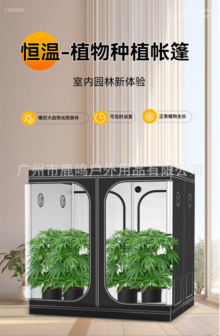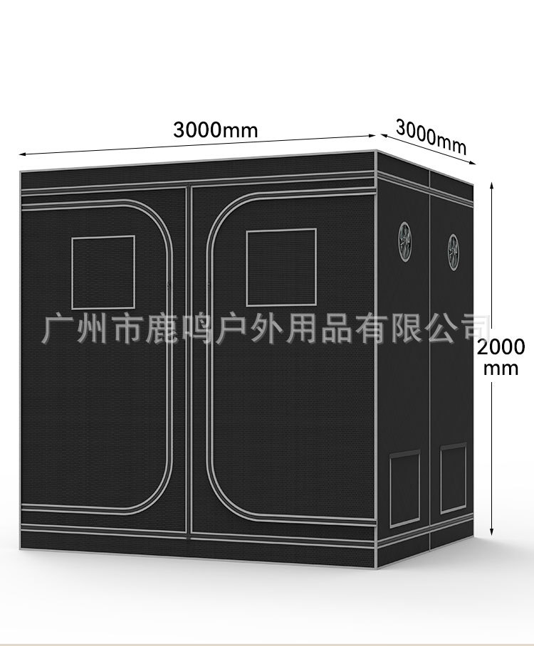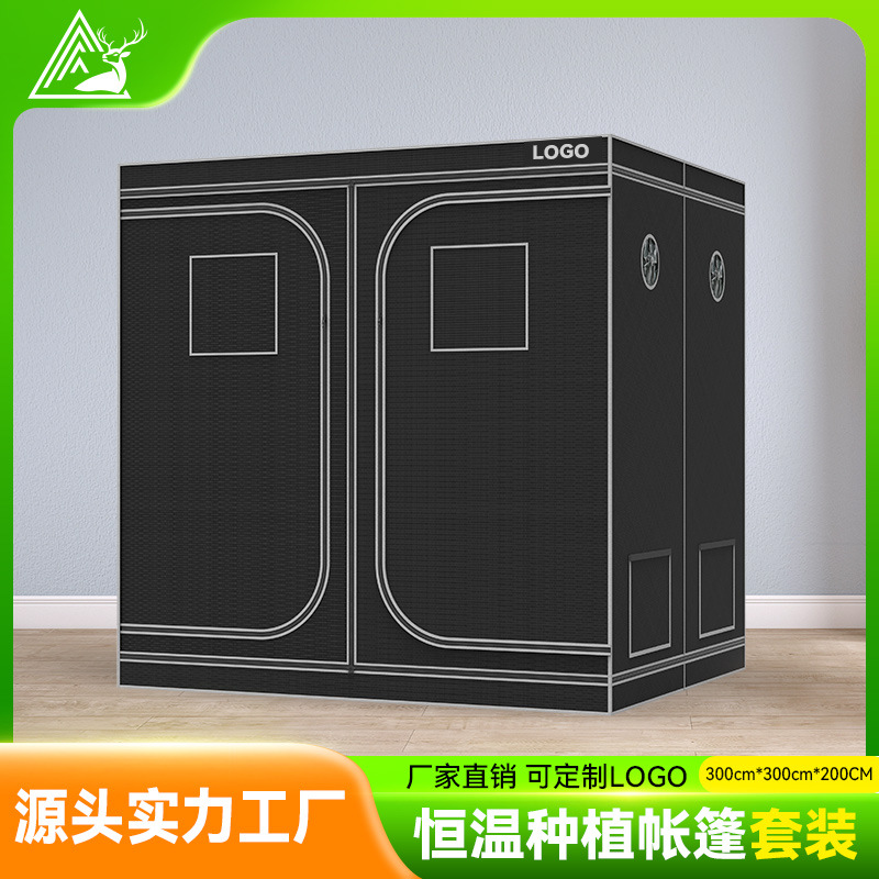 Трансграничный большой тент для выращивания растений 3x3x2м с двойной дверью, черный, из утолщенной ткани Оксфорд, для использования в помещении
