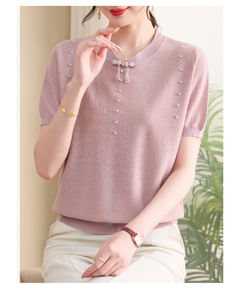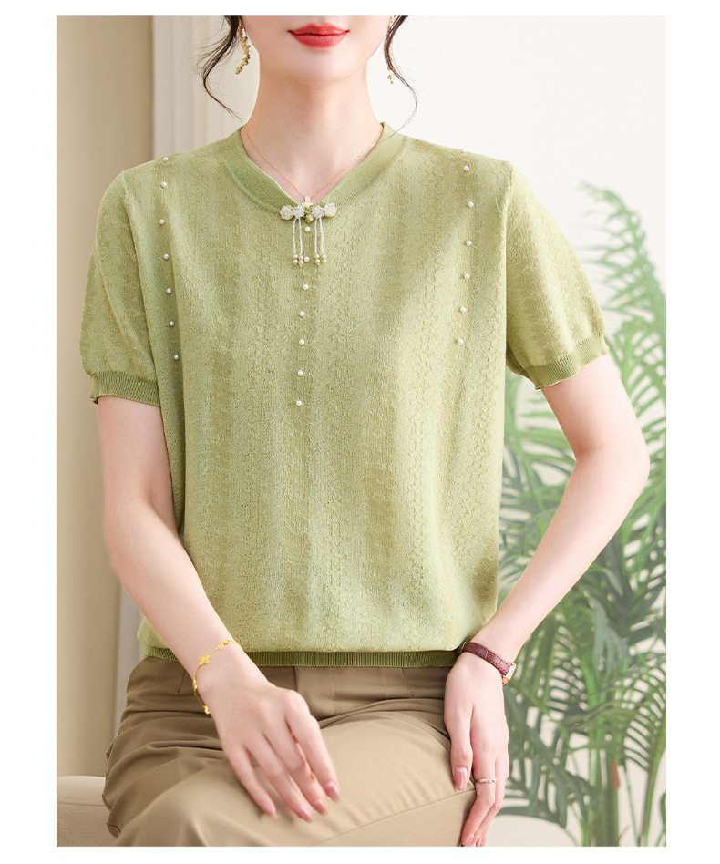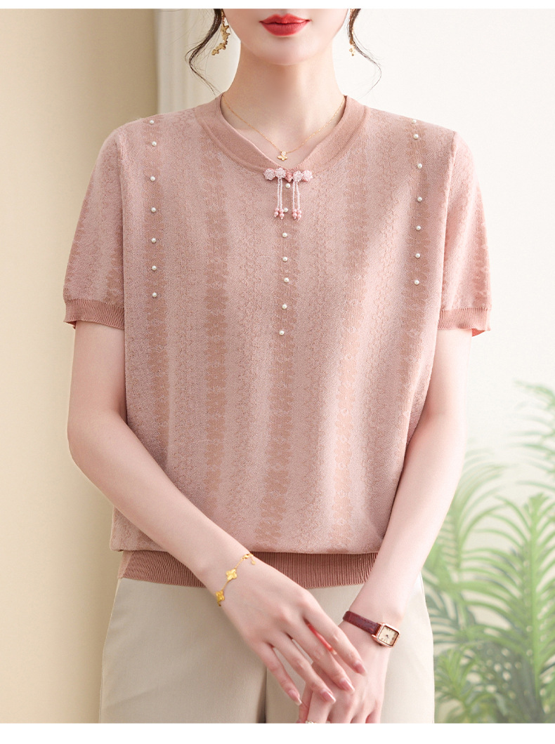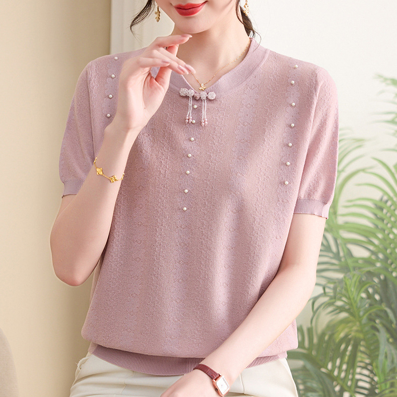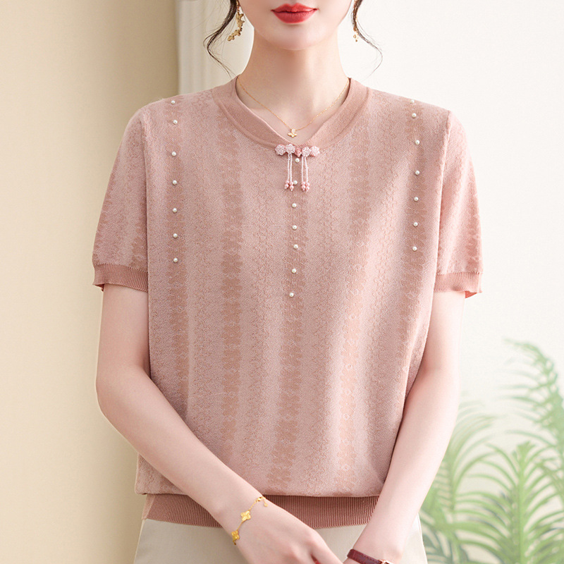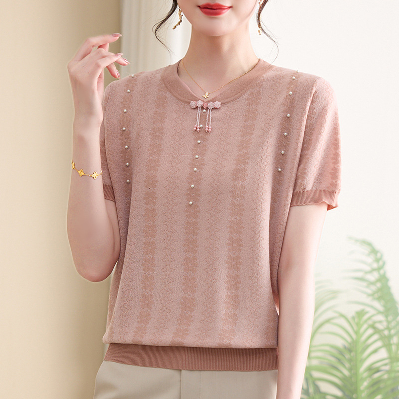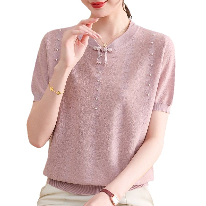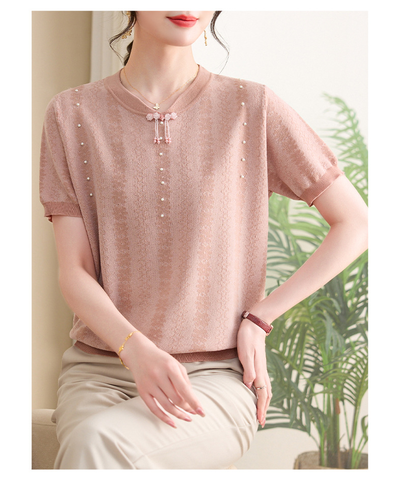 2025 Весенне-осенний модный вязаный свитер для мам, уменьшающий возраст, весенне-осенний новый осенний стильный топ для женщин среднего и пожилого возраста с круглым вырезом