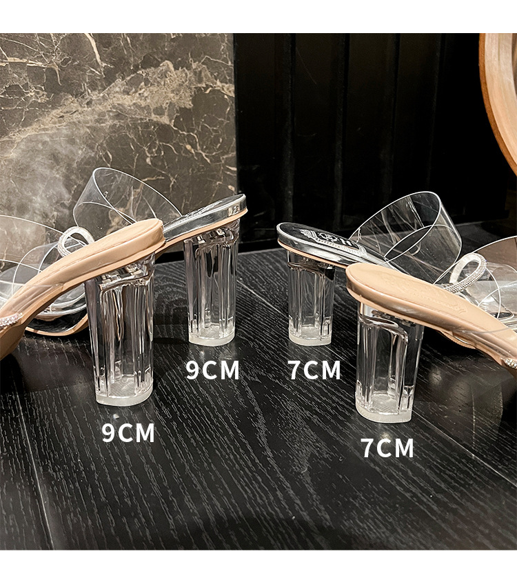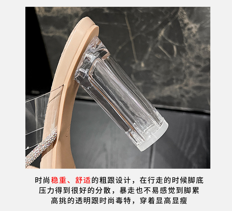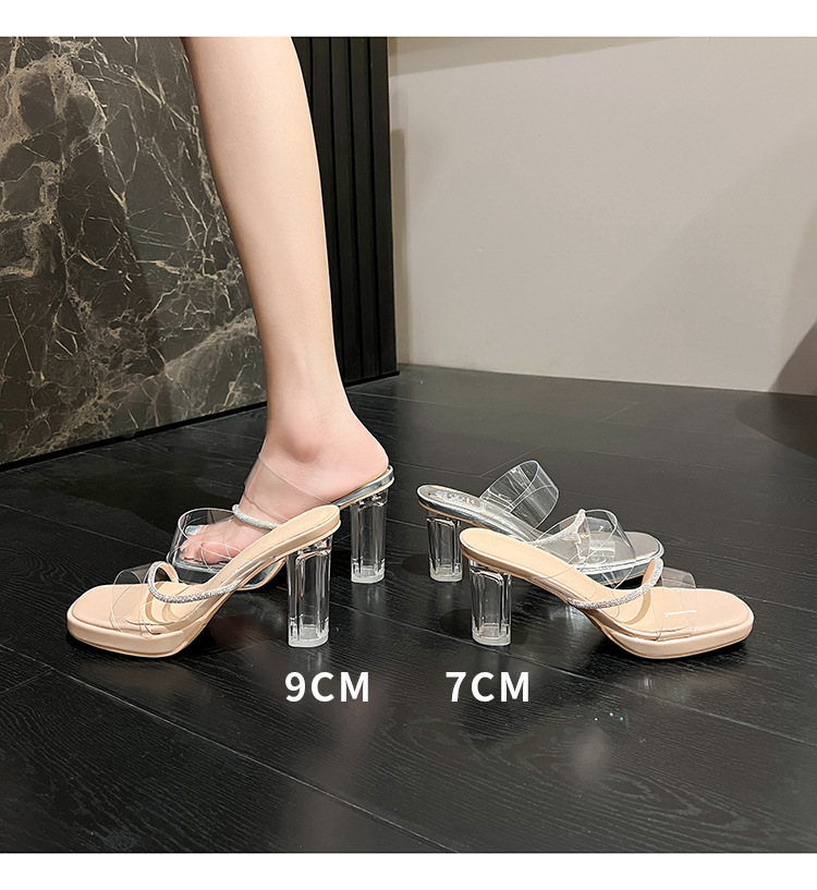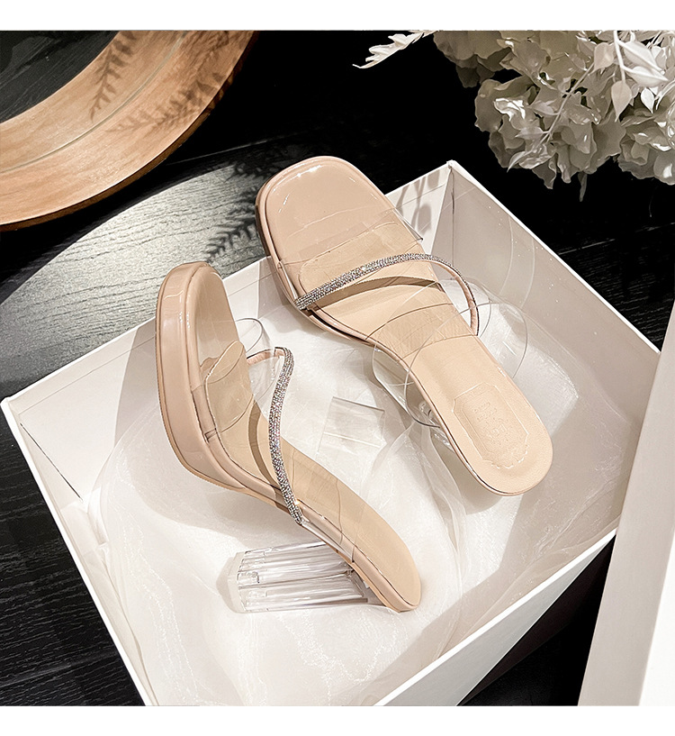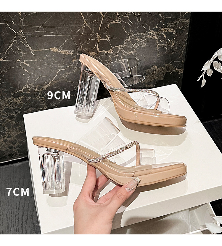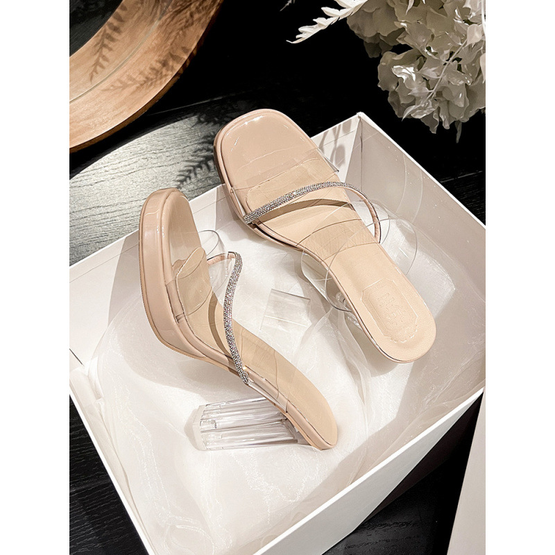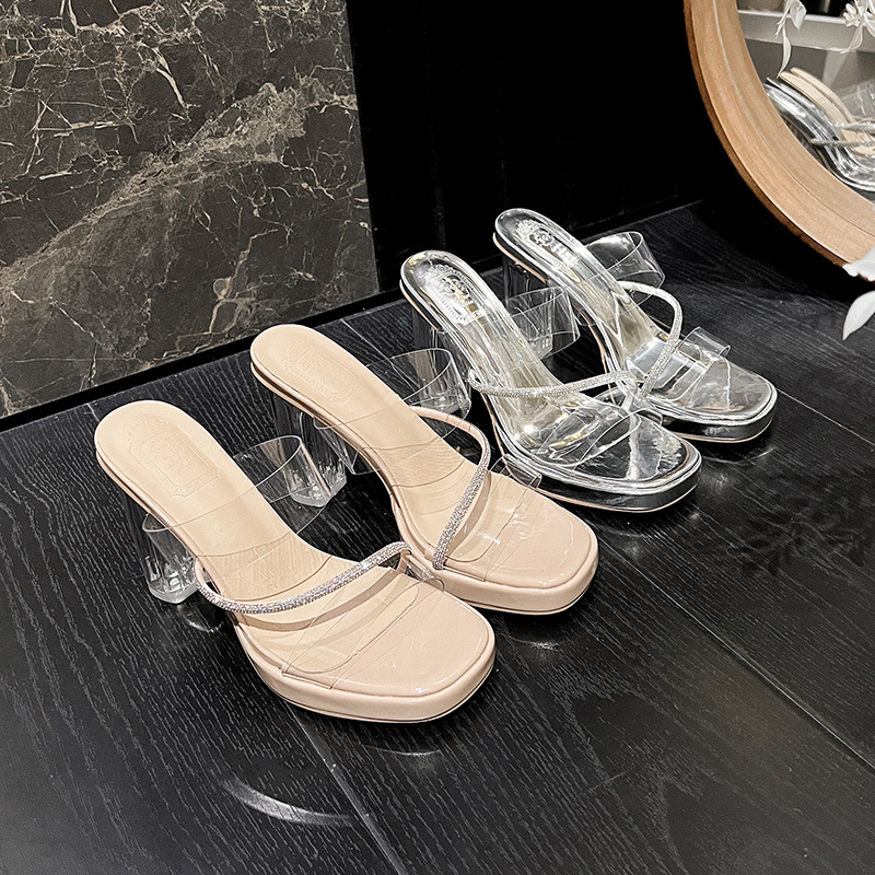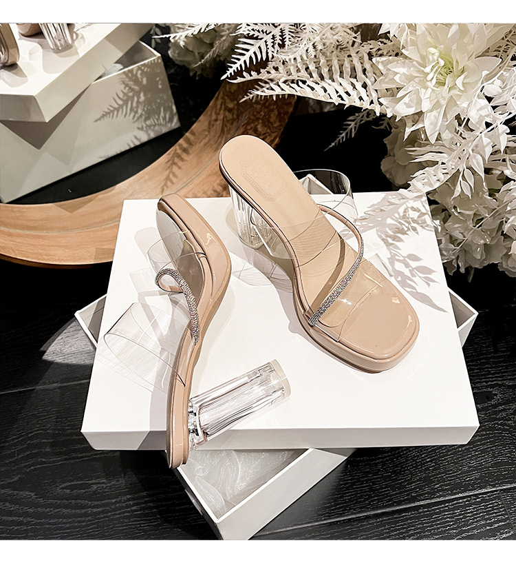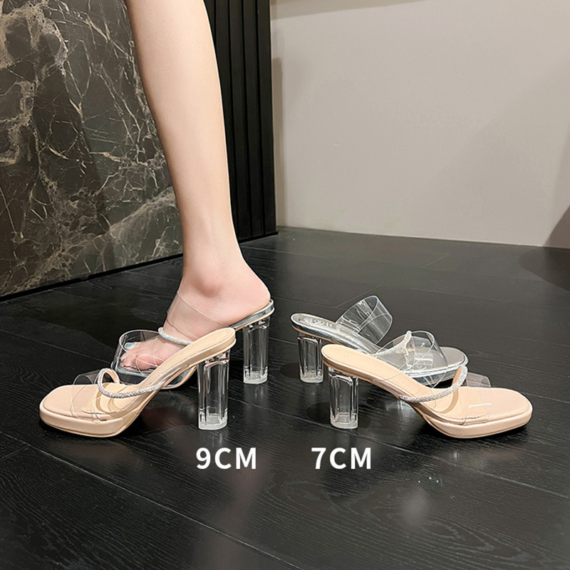 Красивые прозрачные босоножки на высоком каблуке со стразами во французском стиле для женщин, летние белые босоножки на толстом каблуке с кристаллами и одним ремешком для верхней одежды