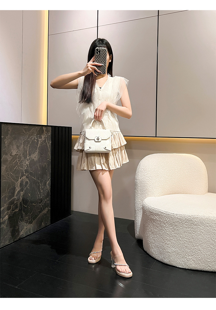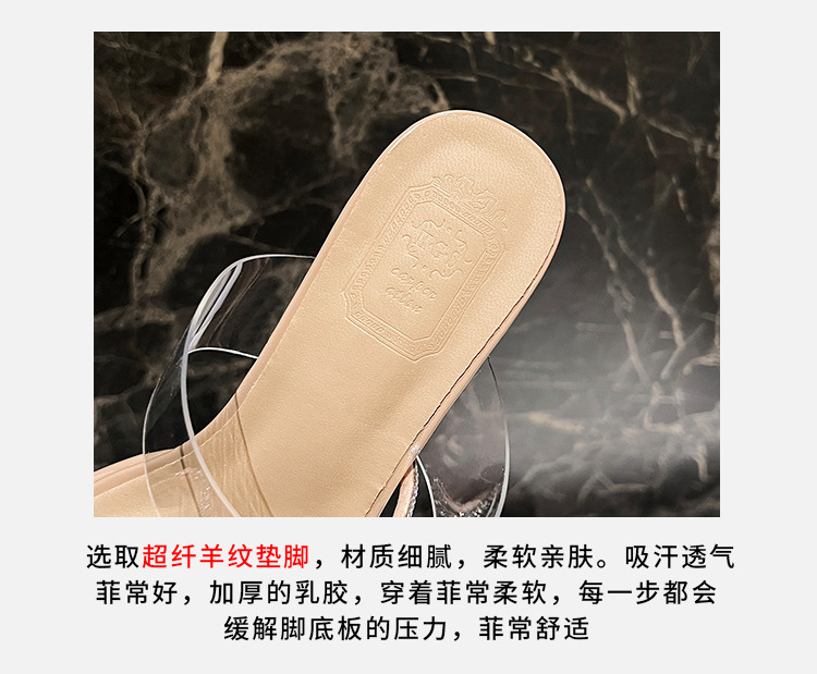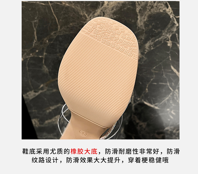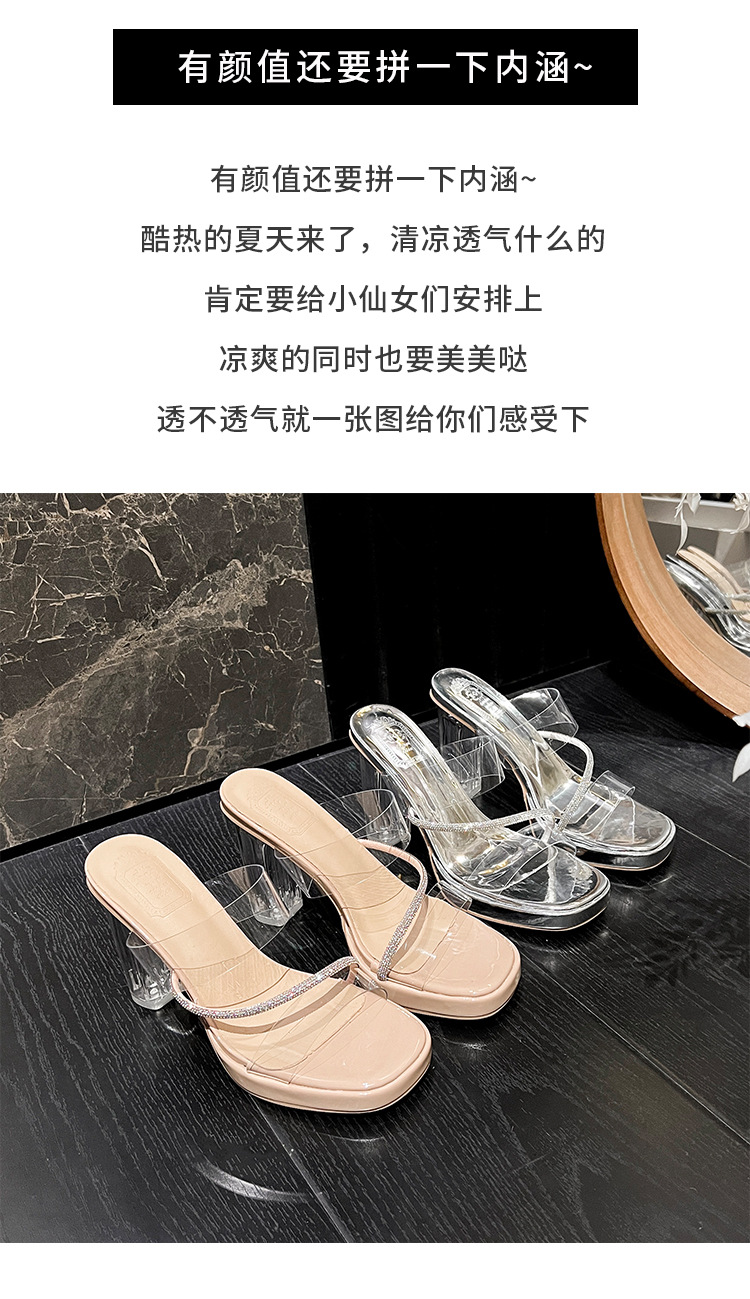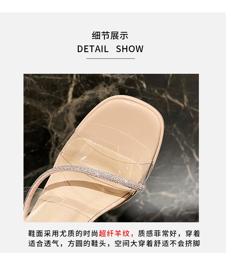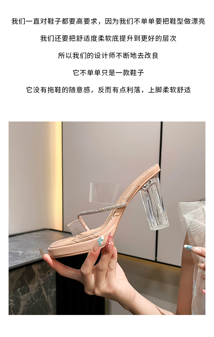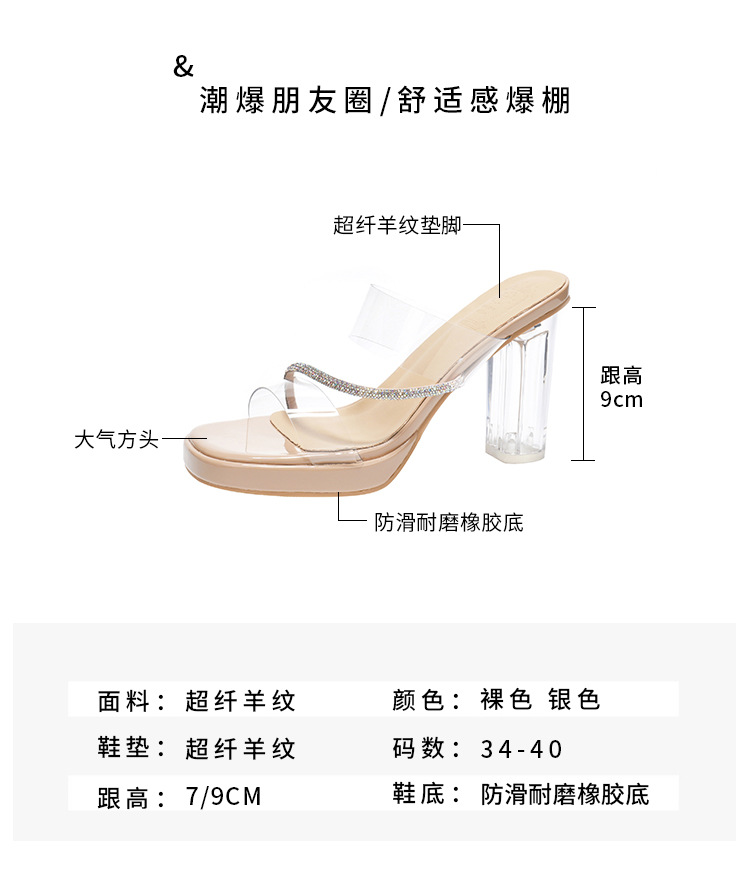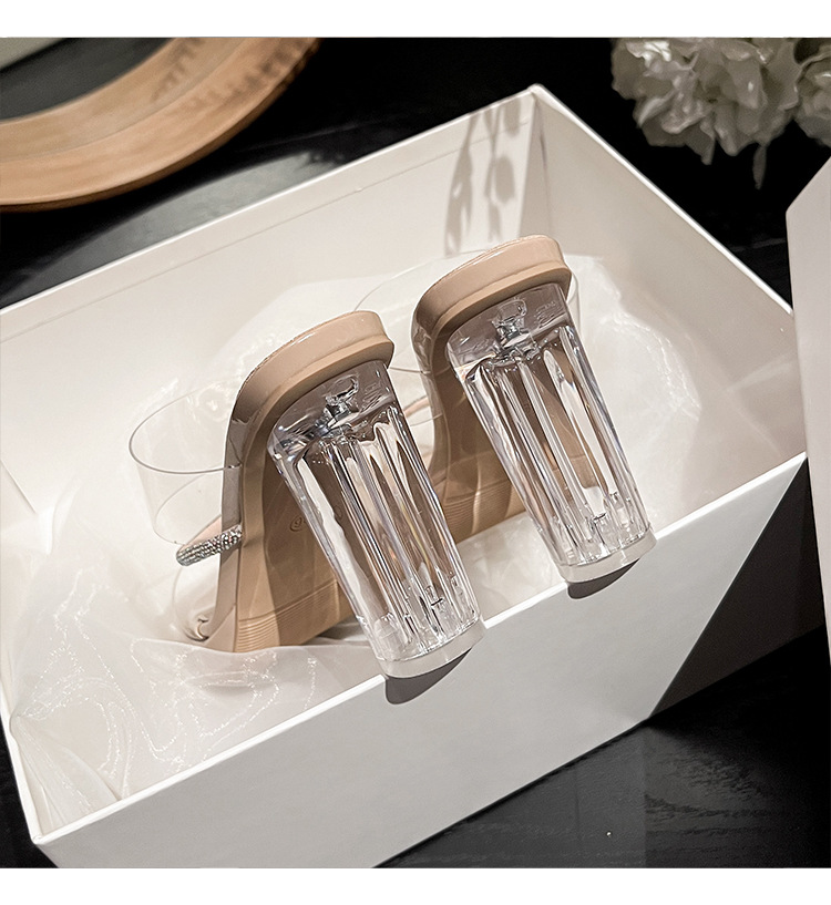 Красивые прозрачные босоножки на высоком каблуке со стразами во французском стиле для женщин, летние белые босоножки на толстом каблуке с кристаллами и одним ремешком для верхней одежды