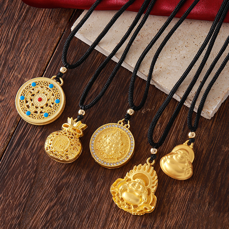 Древний Фа Шацзинь кулон Ожерелье Голова Будды Гуаньинь Будда Майтрейя Благословение замок