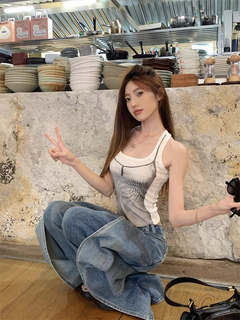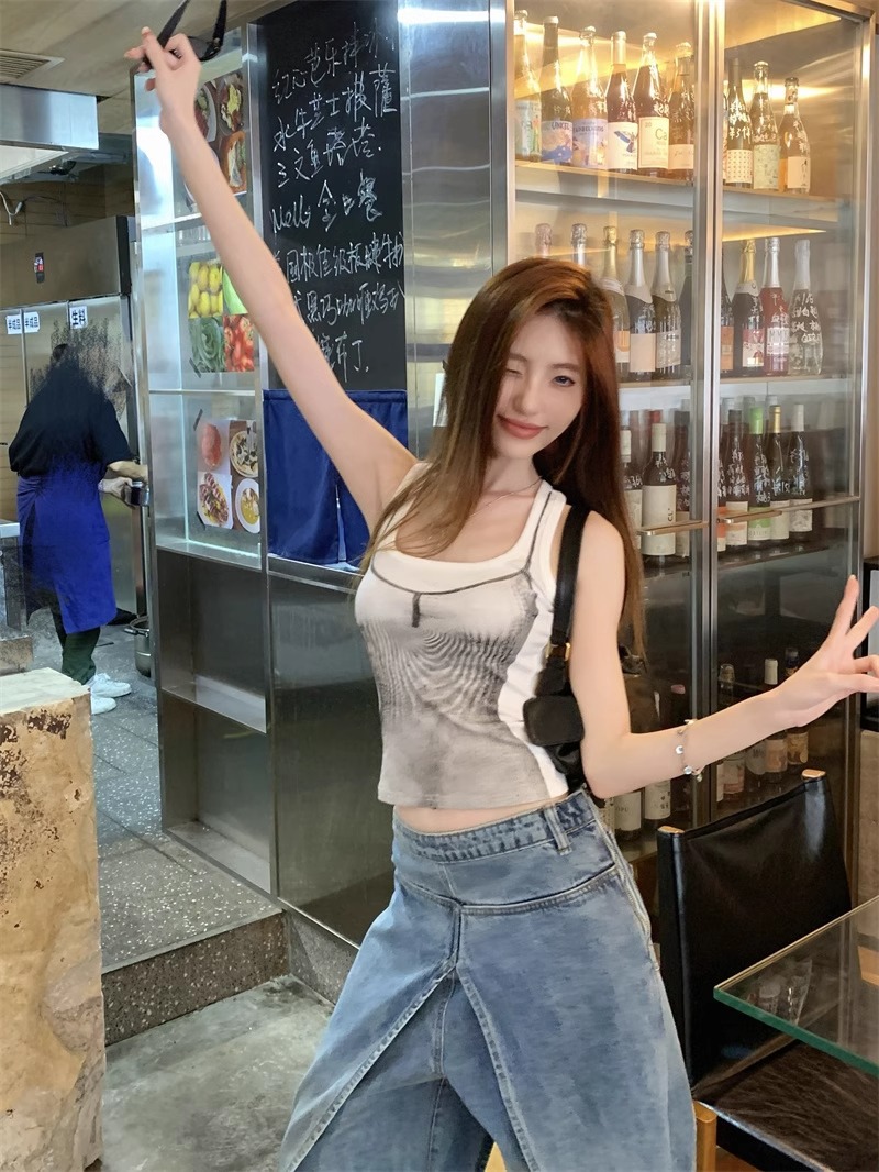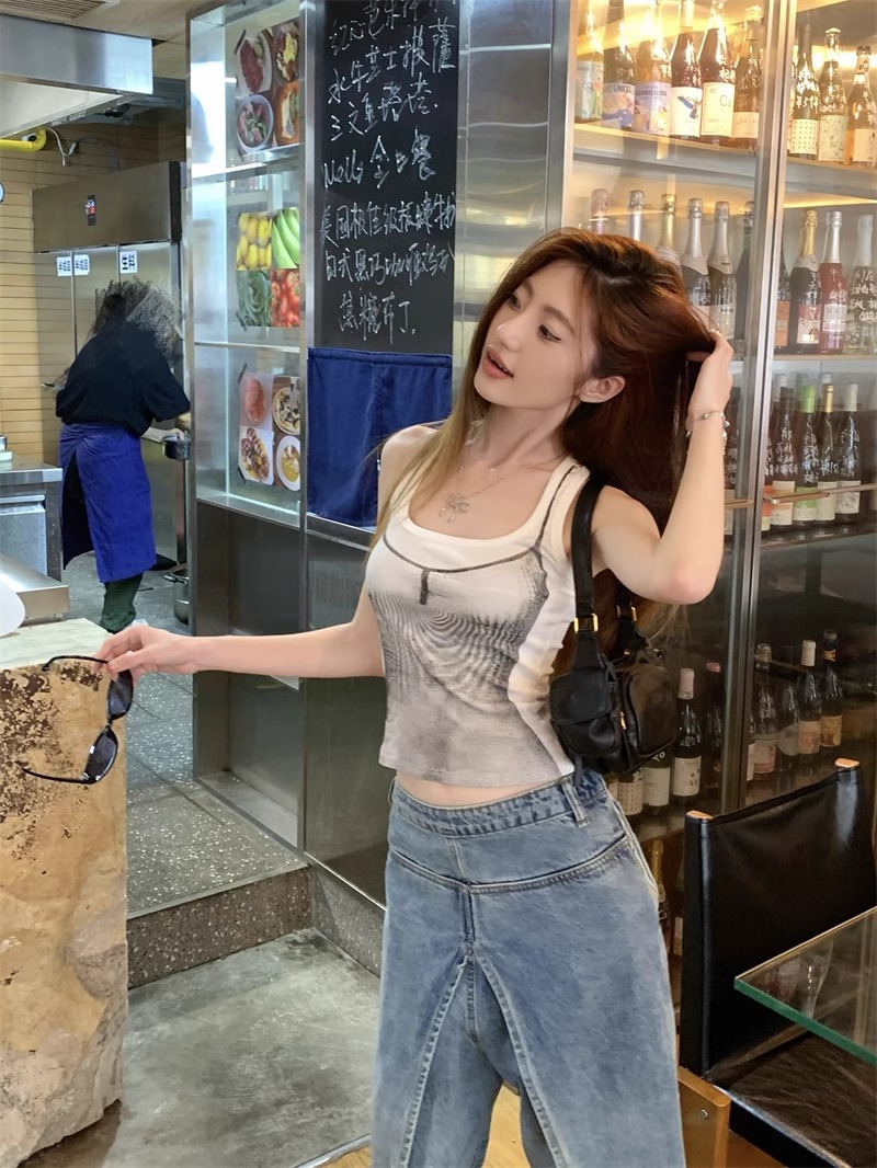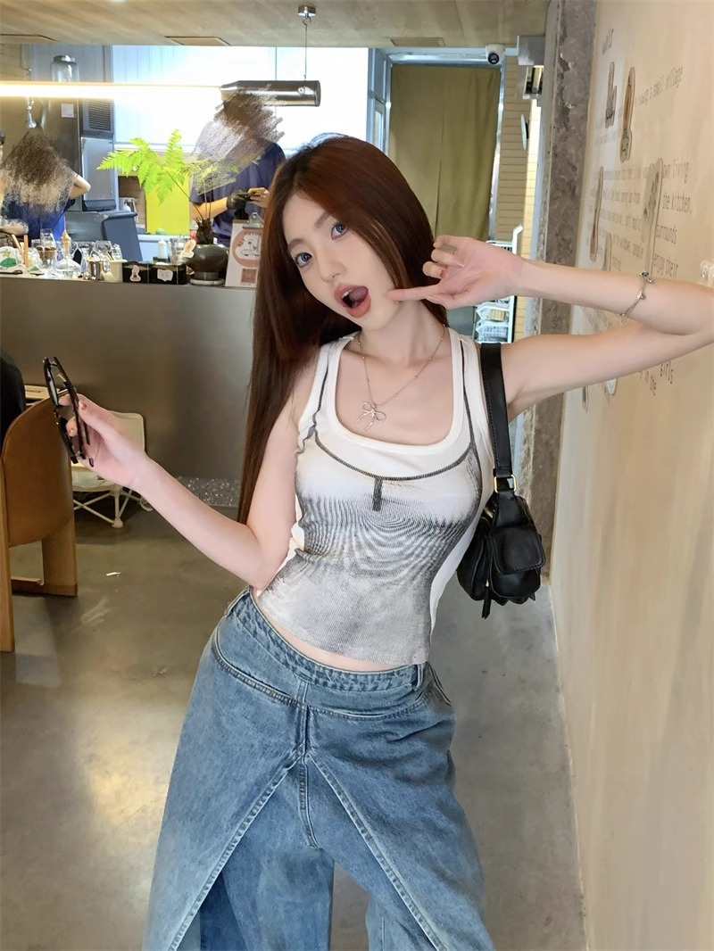Белый камзол женский внешний носить новый летний бикини с принтом тонкая и горячая девушка короткая рубашка