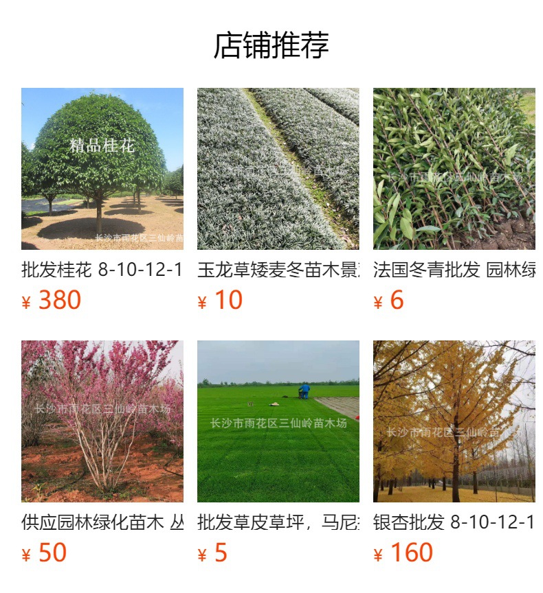 长沙市雨花区跳马镇三仙岭苗木场位于“中国花卉苗木生产示范基地”的湖南省长沙市雨花区跳马镇三仙岭村,本公司有1000多亩苗木基地,是湖南省以苗木经济、苗木交易为主要业务的自产自销的苗圃基地,是一家依托多年来可靠的技术,完善的服务,服务于全国园林事业的苗木服务公司。