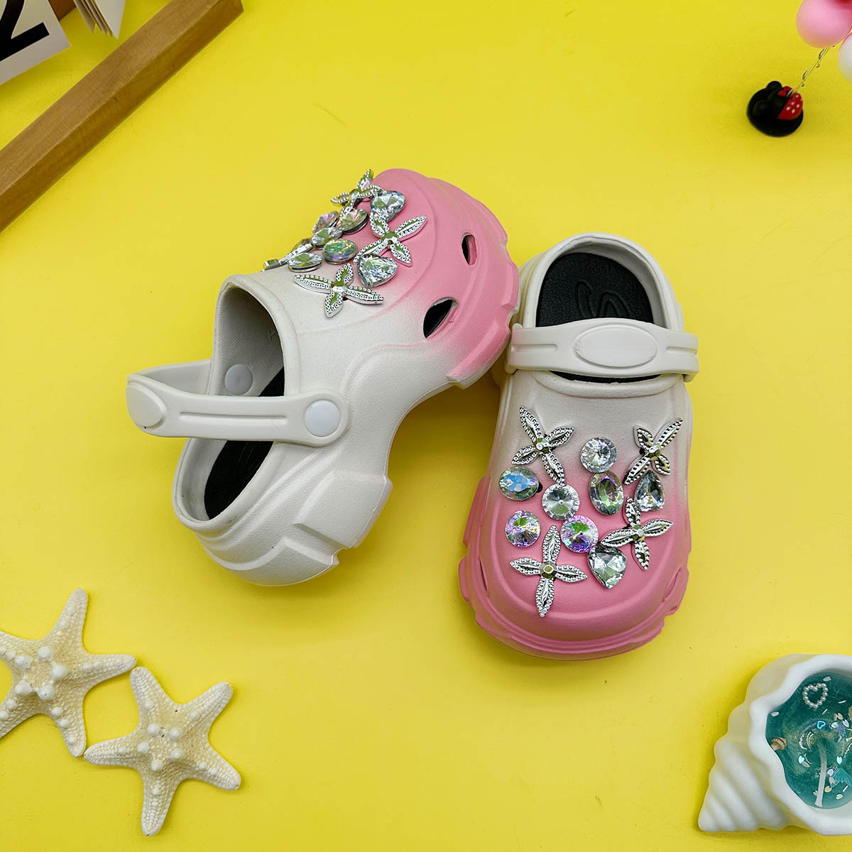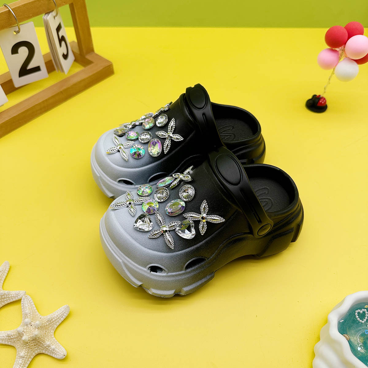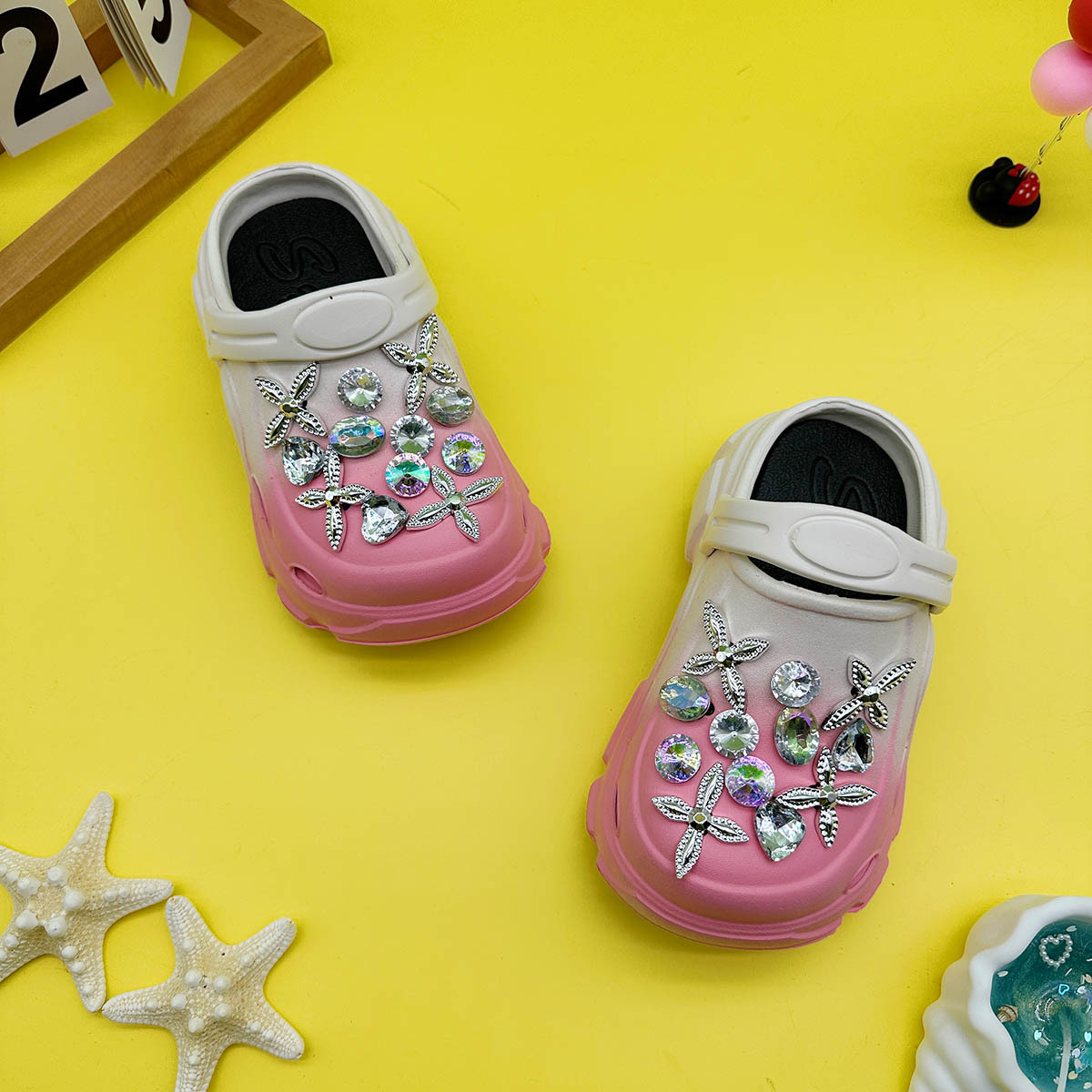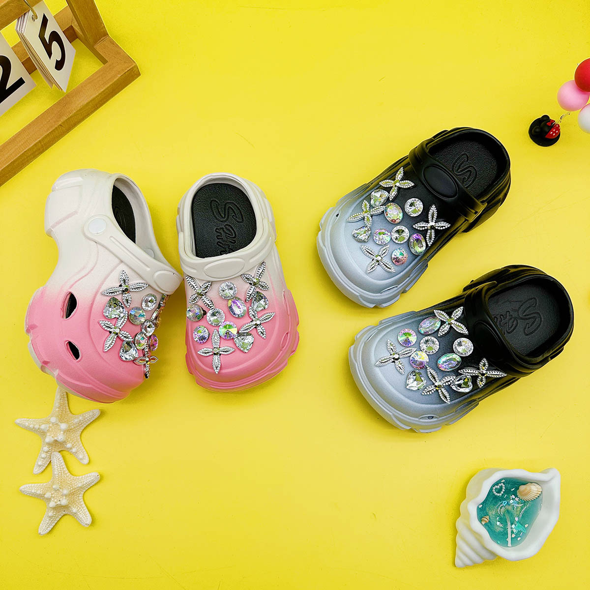 Милые и универсальные тапочки для родителей и детей для мальчиков и девочек, новые сабо со стразами в виде ветряной мельницы, мягкая подошва, нескользящие носки.