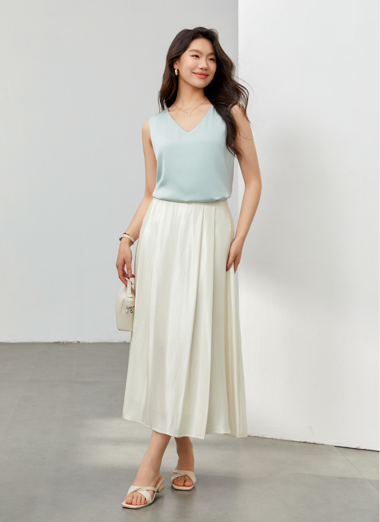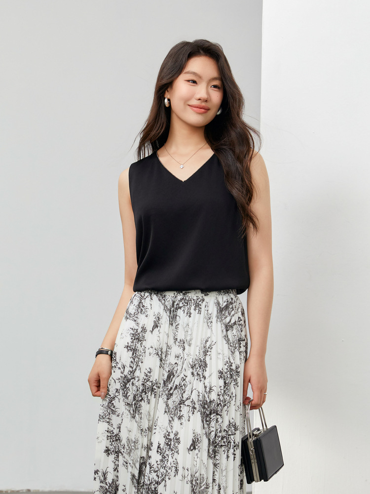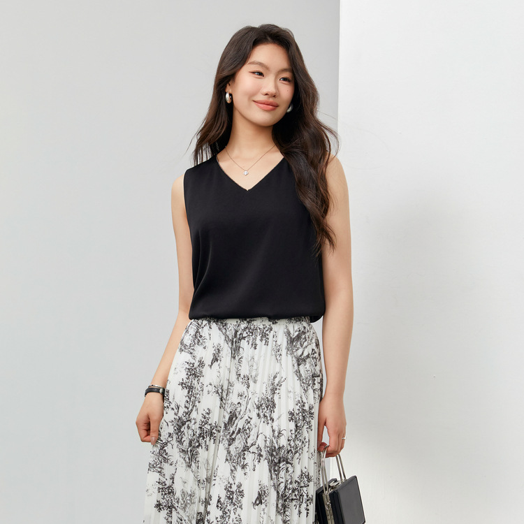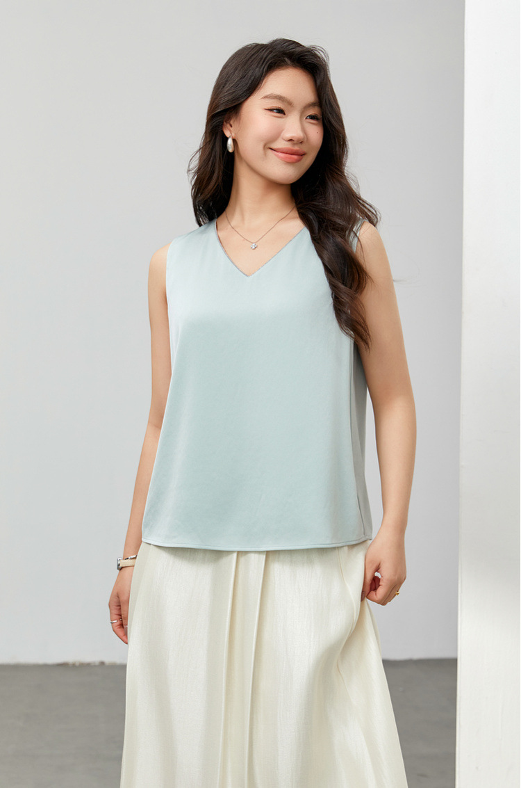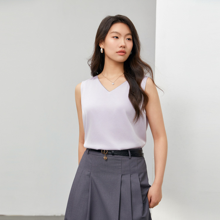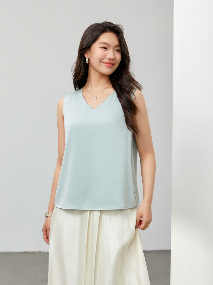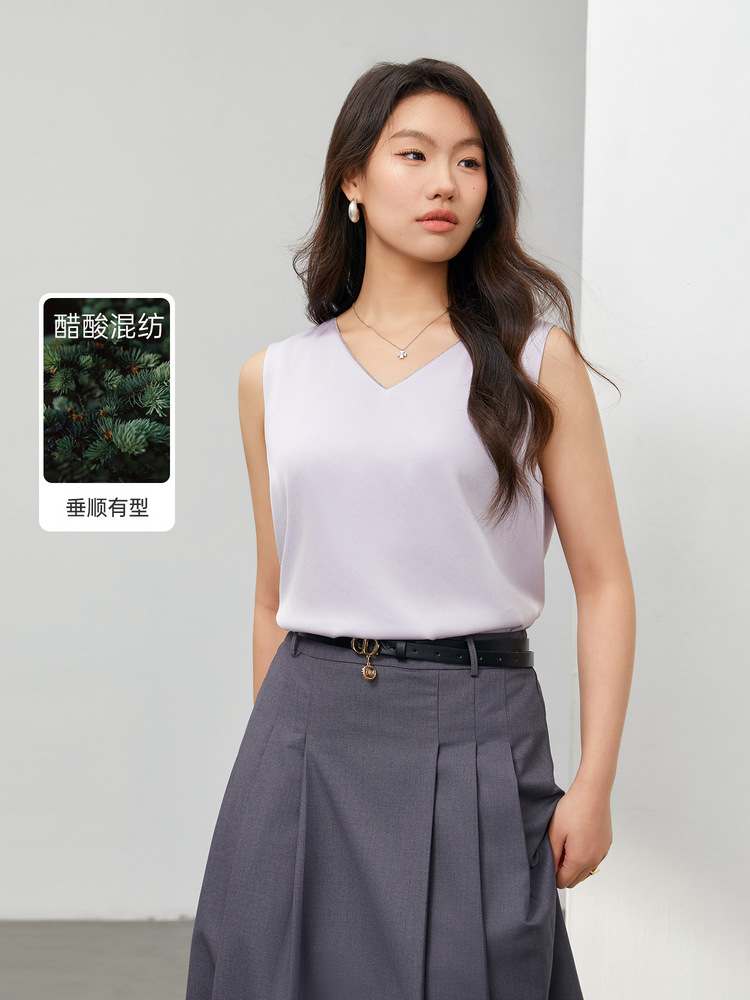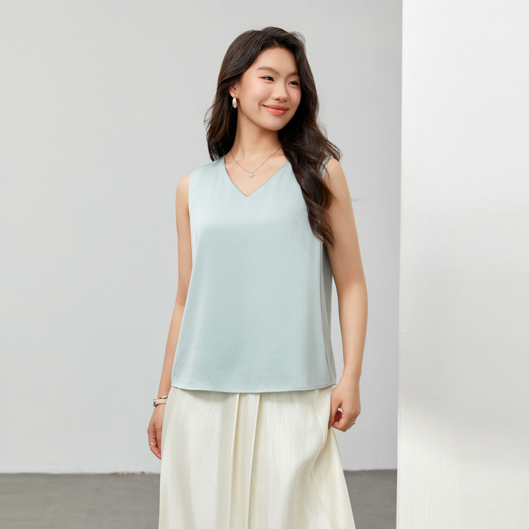 [Атласная уксусная кислота] Простой темпераментный V-образный дикий жилет подтяжка