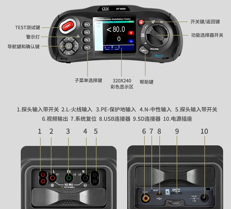 CEM Huashengchang DT-6650 многофункциональный электрический комплексный тестер, изоляция переключателя, сопротивление заземления, последовательность фаз напряжения