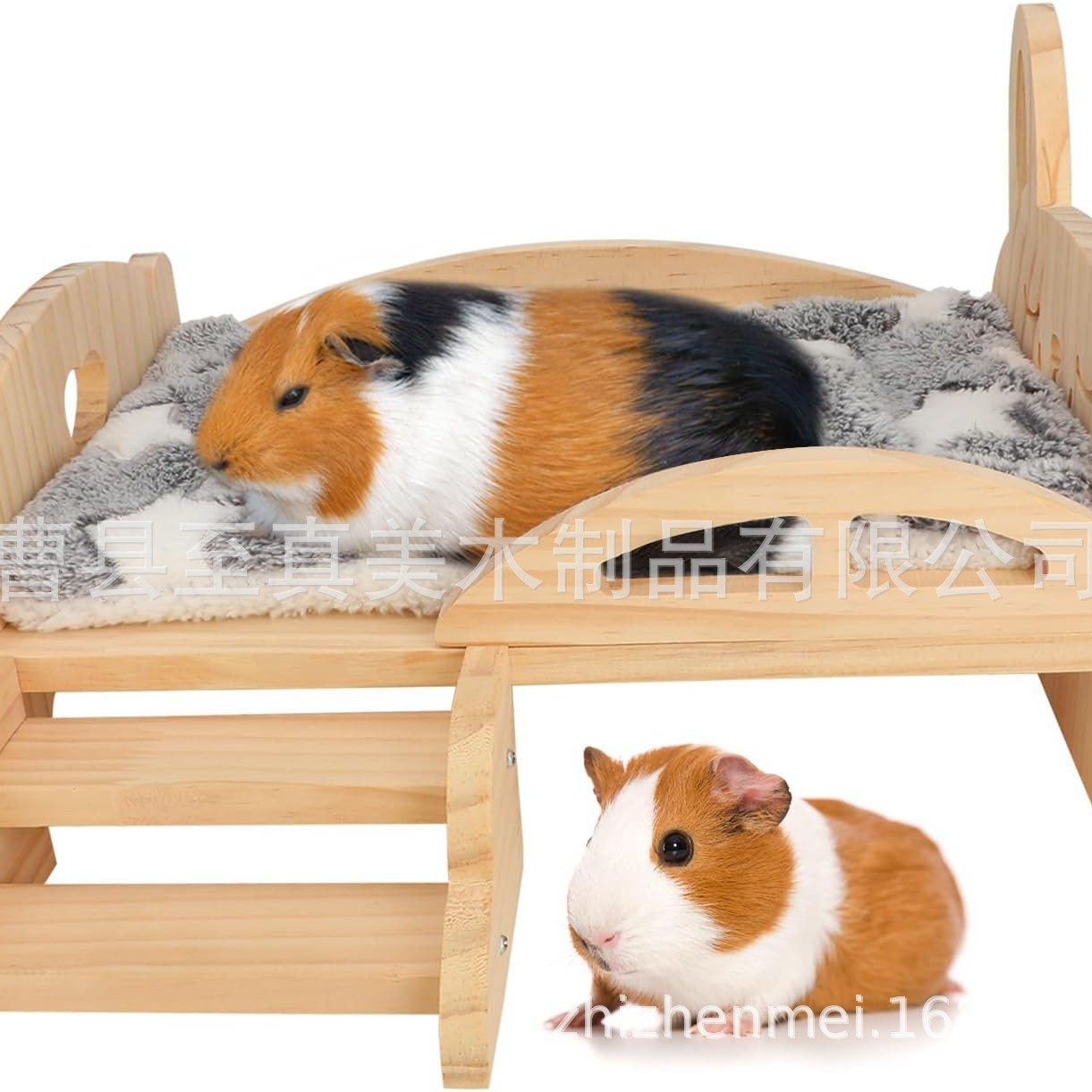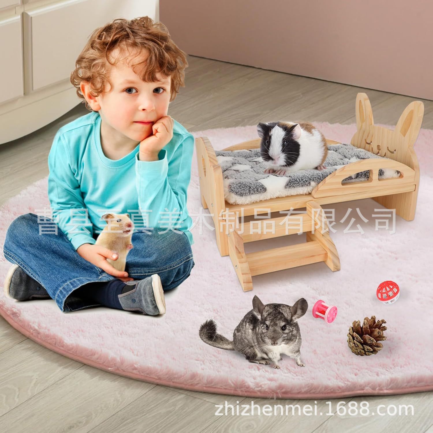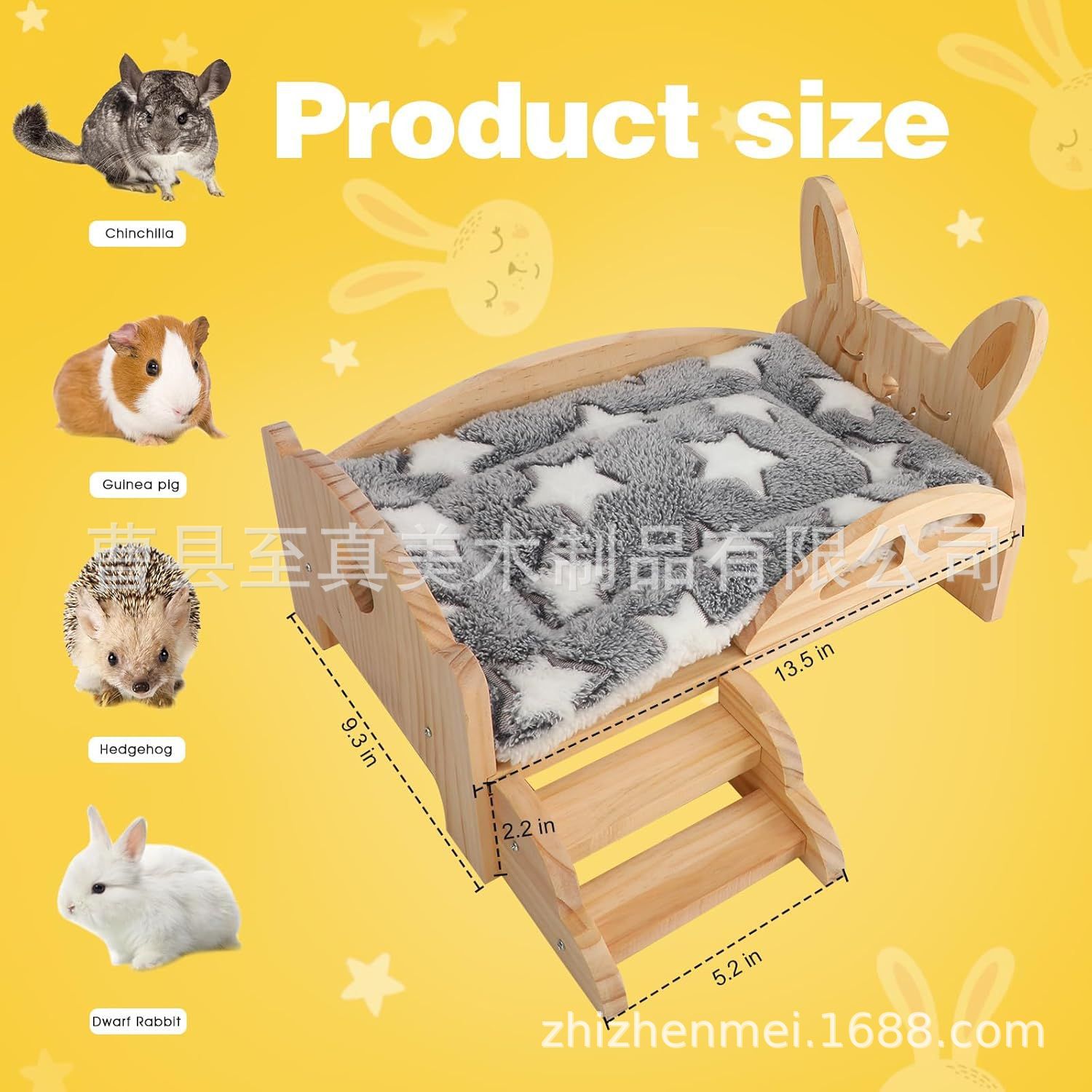 Деревянная кровать для кроликов Деревянная кровать для домашних животных со съемной подушкой Кровать для маленьких животных Спальное место Деревянная кровать