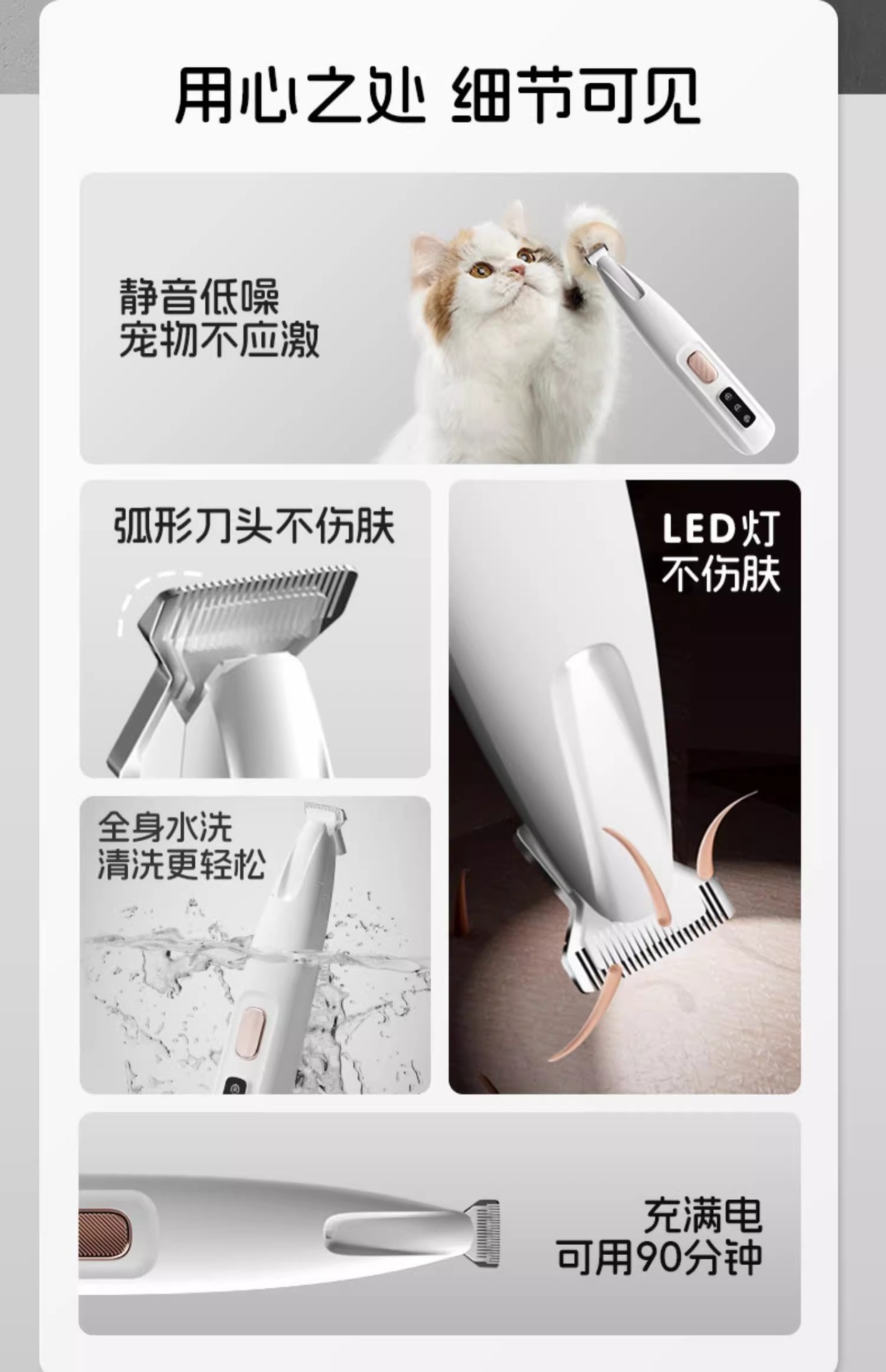 Бритва для домашних животных — маленькая бритва для головы [светодиодный дисплей]; Бритва для домашних животных с расширенной головкой [моющаяся + низкие басы и низкий уровень шума]; Бритва для домашних животных — сменная головка*1 + бритва с расширенной головкой [моющаяся + низкие басы и низкий уровень шума]; Полировщик для ногтей