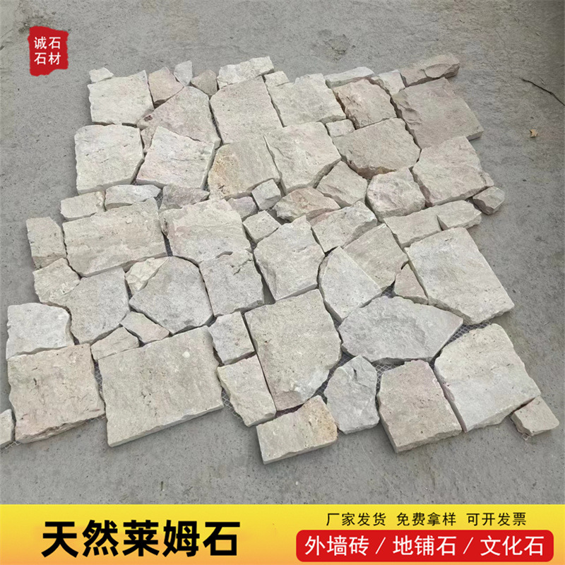 Натуральные напольные плитки из известняка с натуральной поверхностью, комбинация больших и маленьких блоков, внутренняя и наружная стена, европейский стиль, бежевый натуральный культурный камень