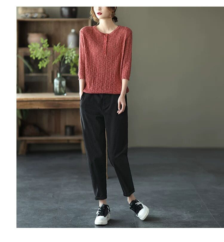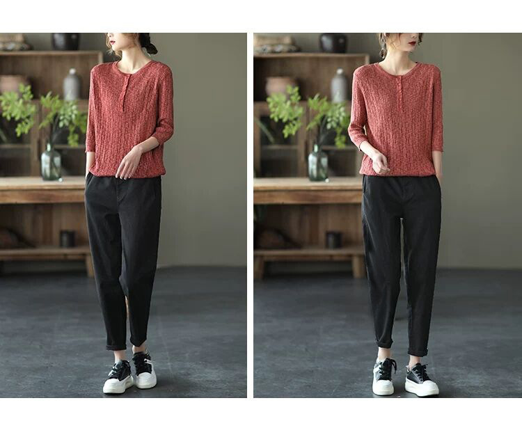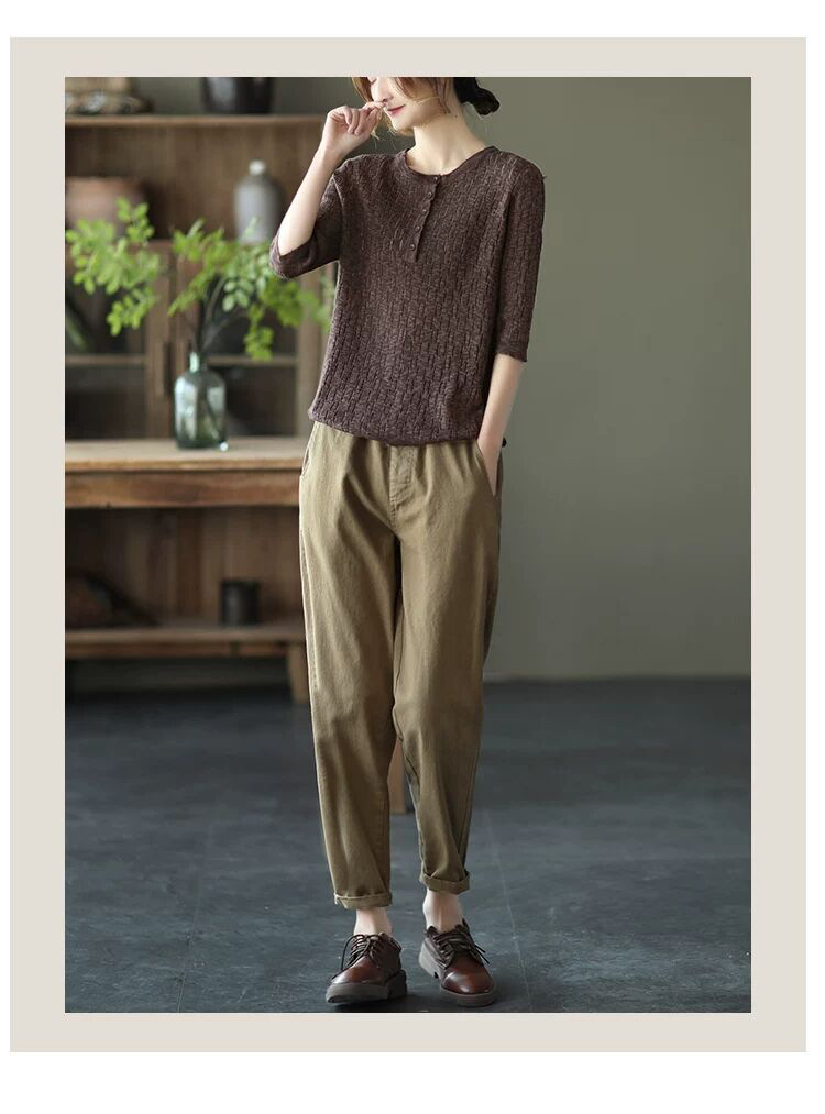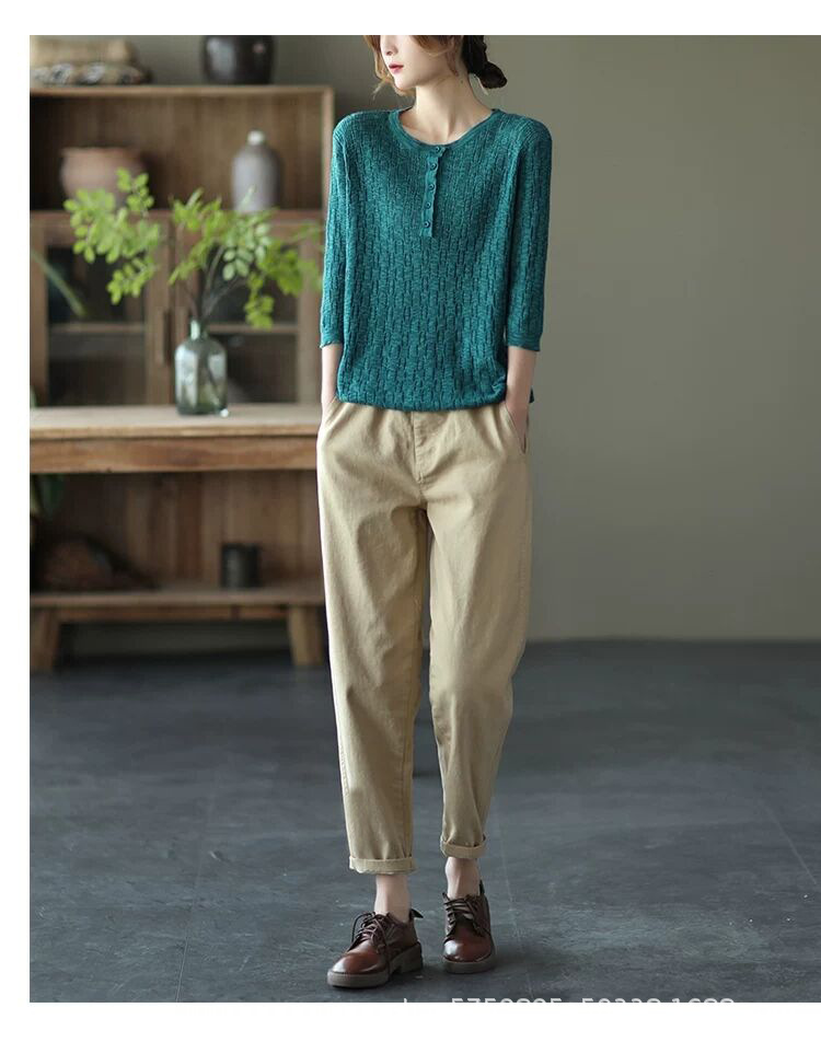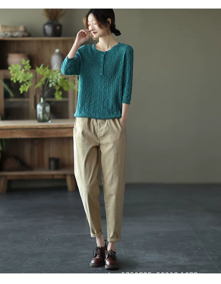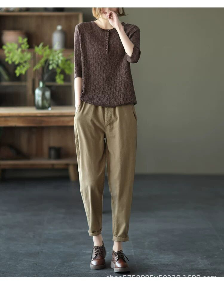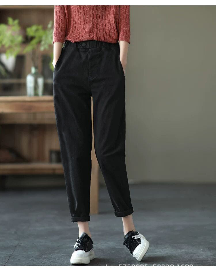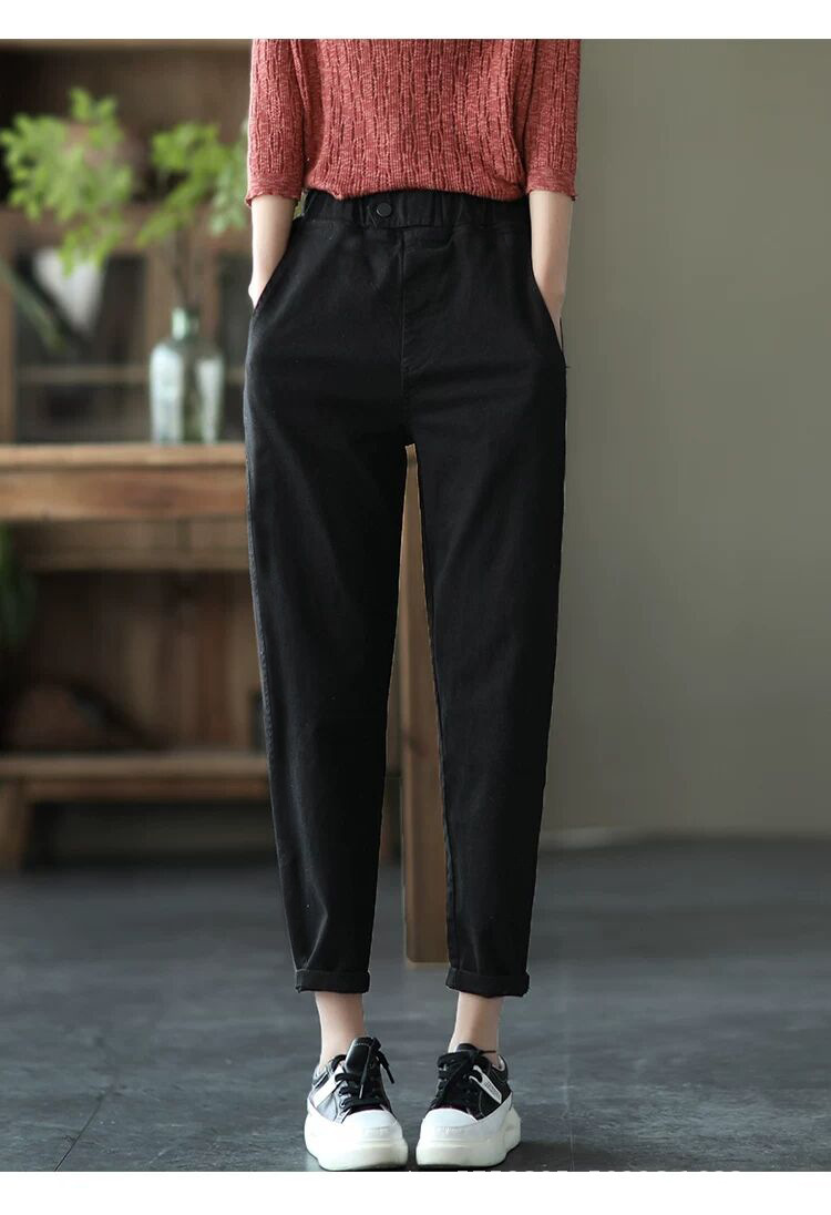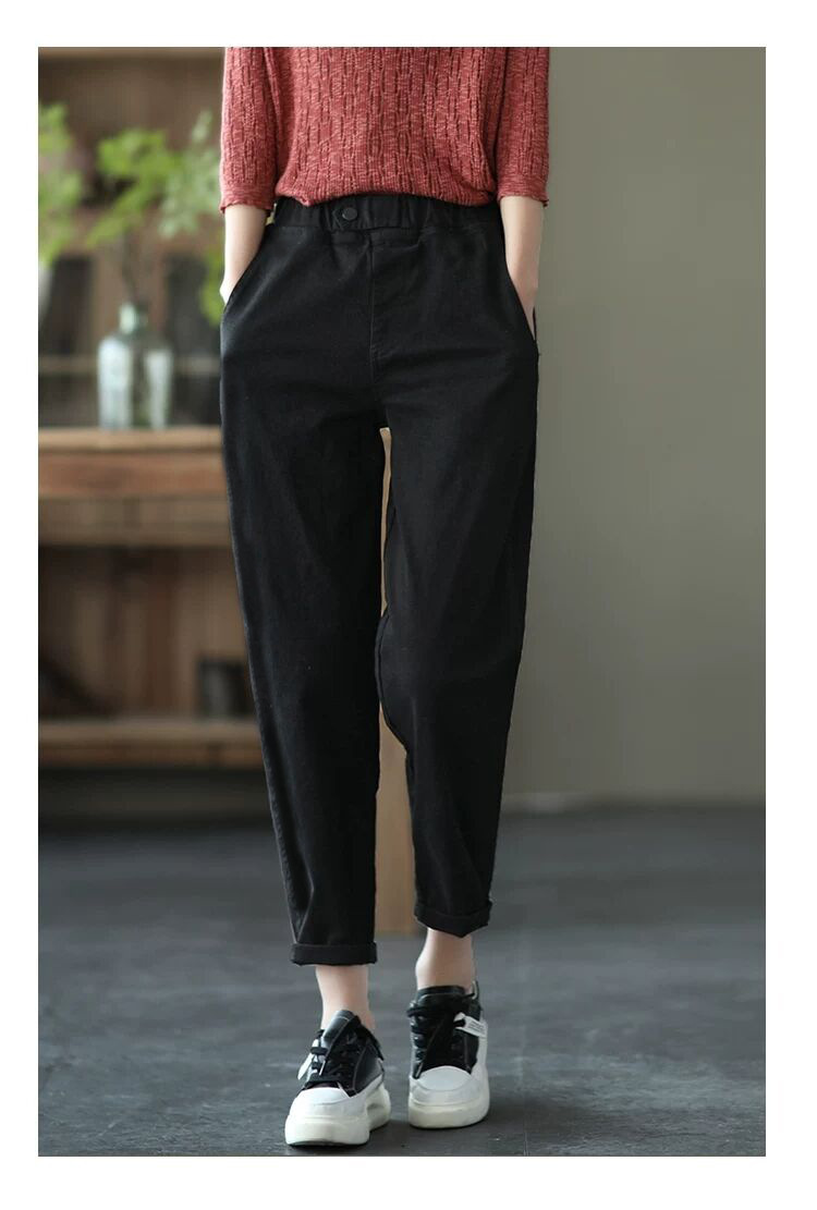 Весенне-осенние новые хлопковые повседневные брюки в стиле ретро для женщин, тонкие универсальные шаровары с эластичной резинкой на талии, укороченные брюки из чистого хлопка, длинные брюки.