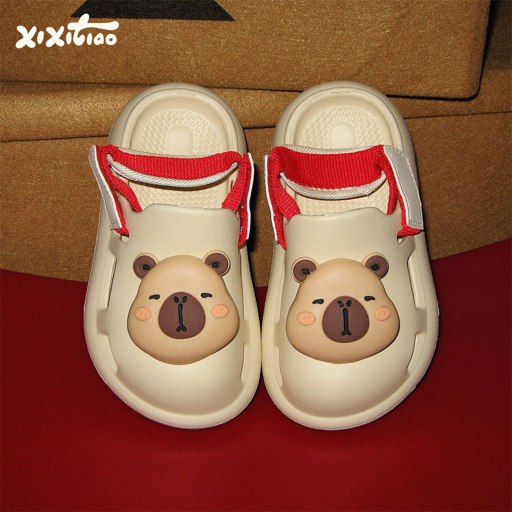 Тонкие полоски стерео капибала детские сандалии летние мягкая подошва удобные для мальчиков и девочек верхняя одежда пляжные сабо