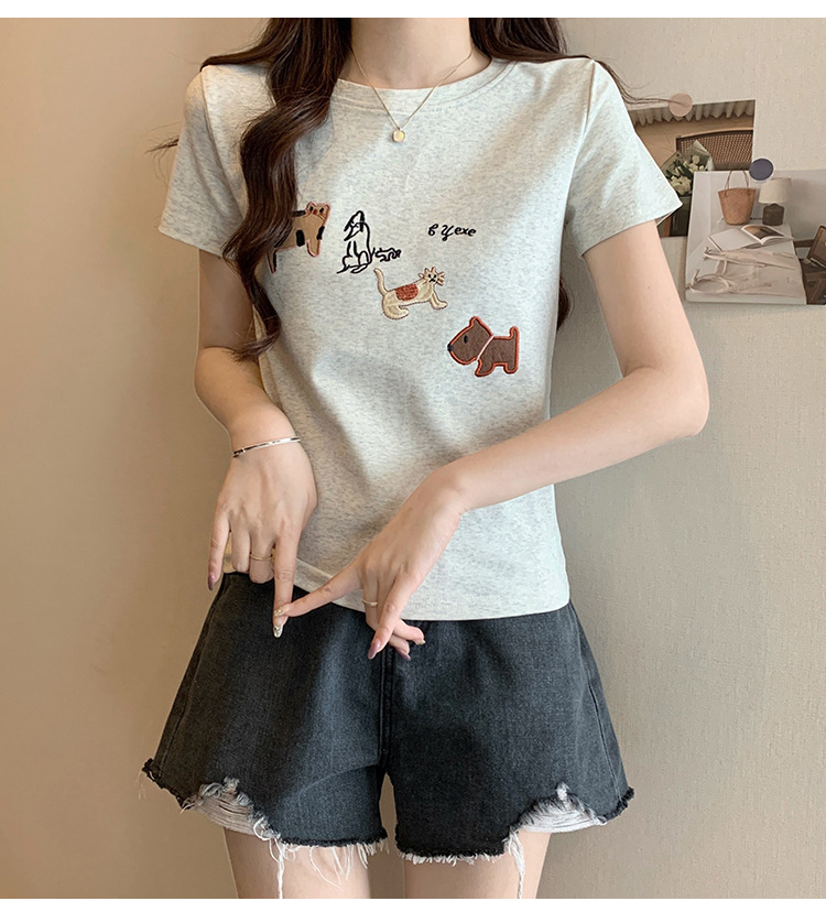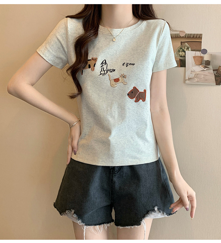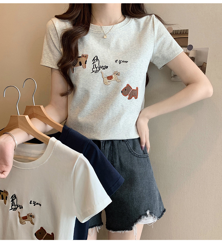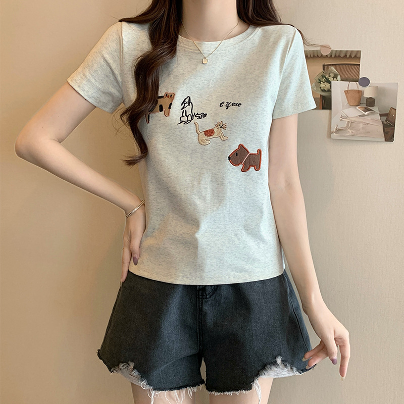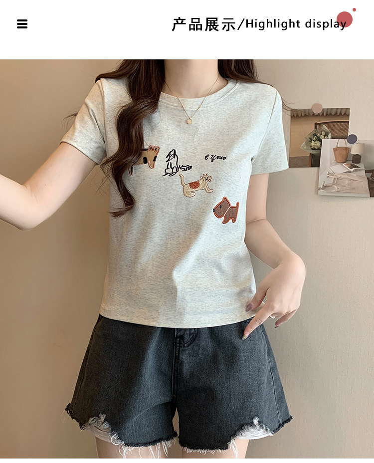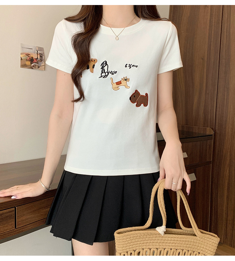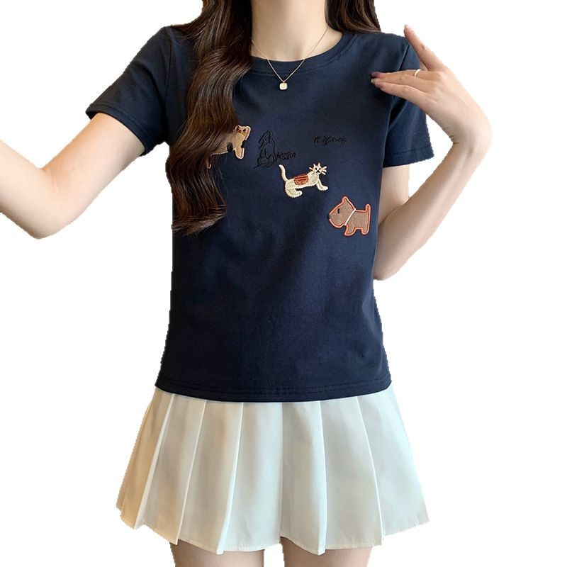 2025 модный стильный молодежный вышитый короткий рукав футболка для женщин летний корейский стиль топ с правым плечом красивая рубашка