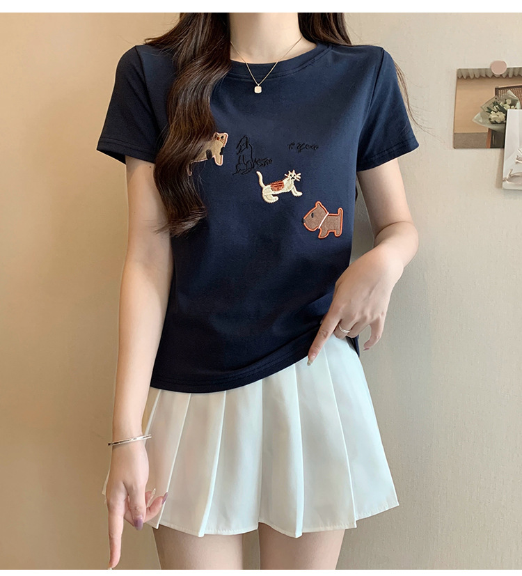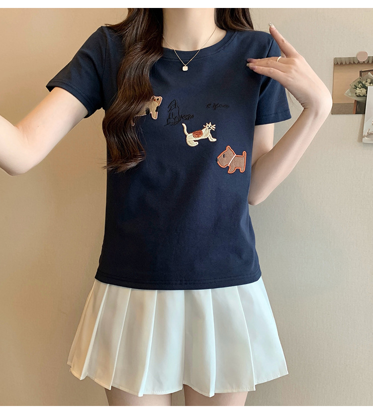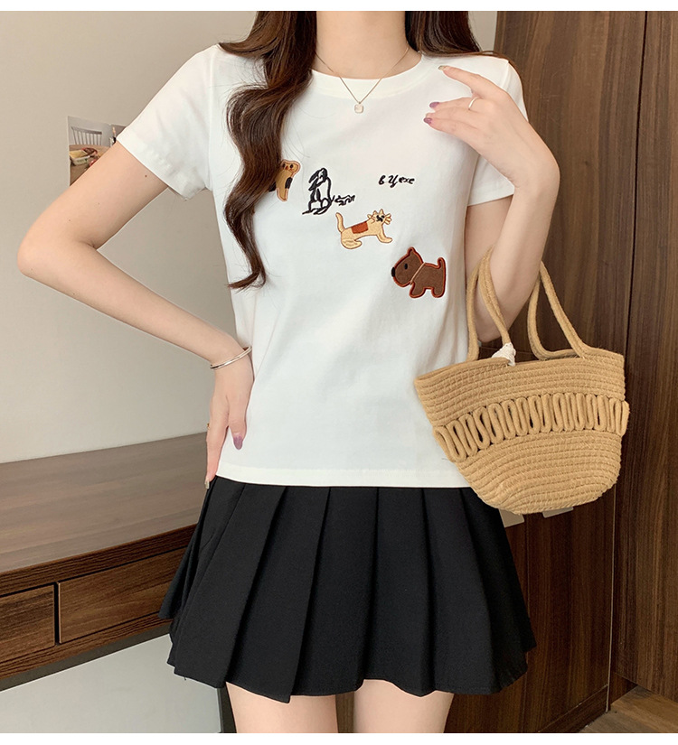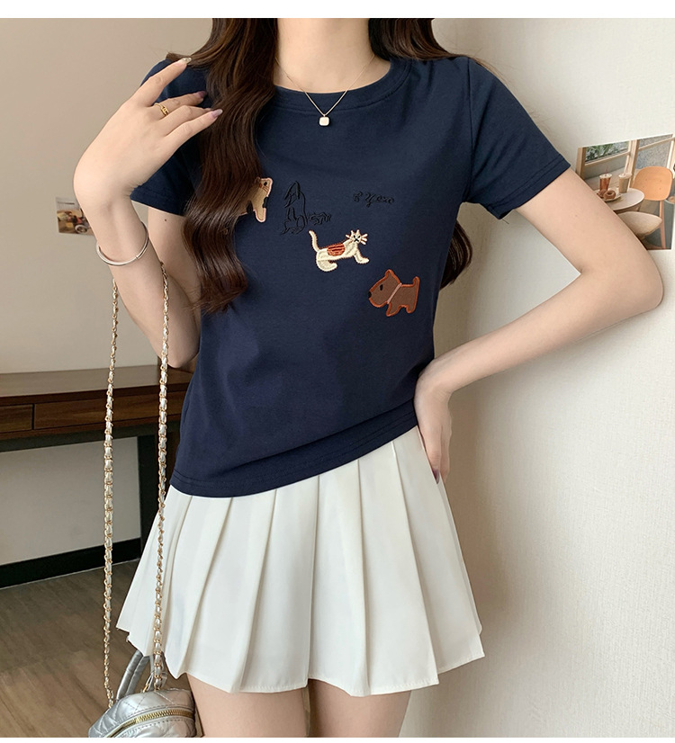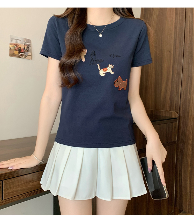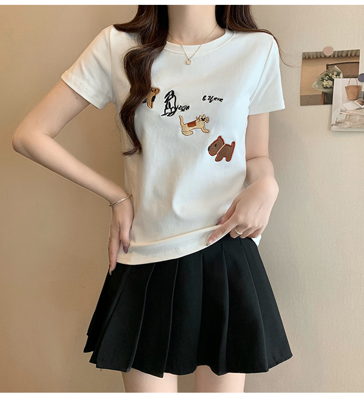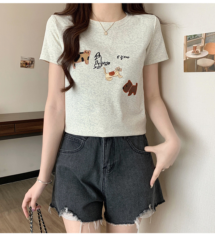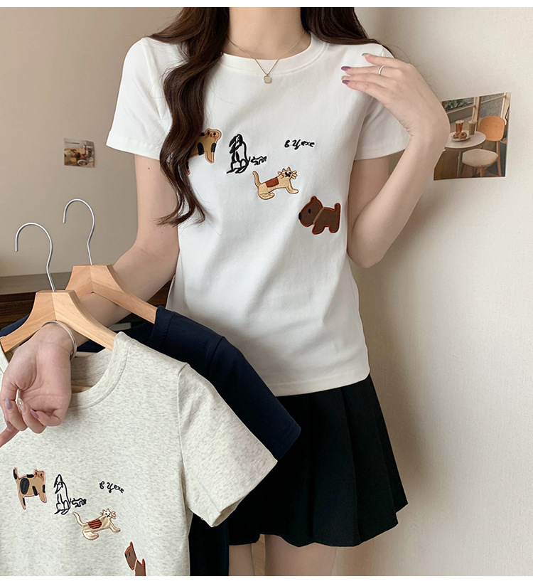 2025 модный стильный молодежный вышитый короткий рукав футболка для женщин летний корейский стиль топ с правым плечом красивая рубашка