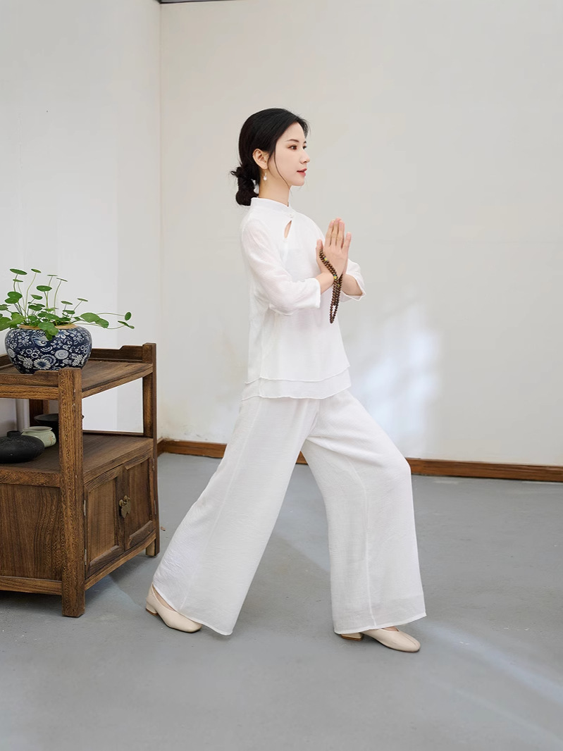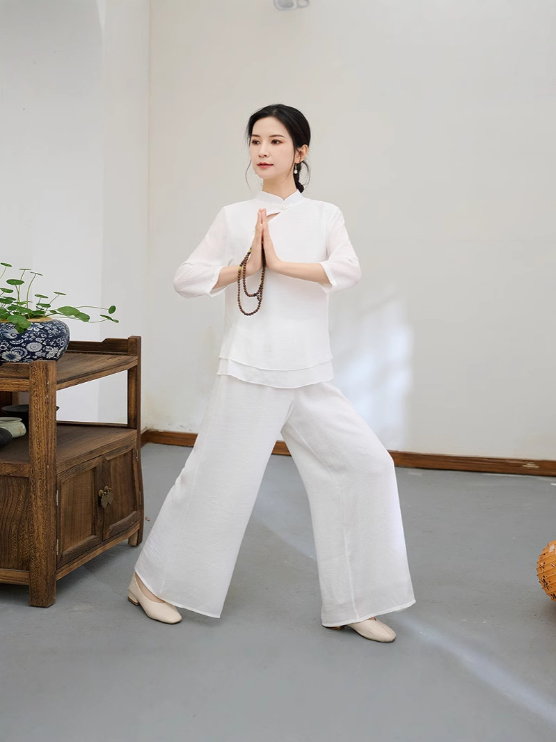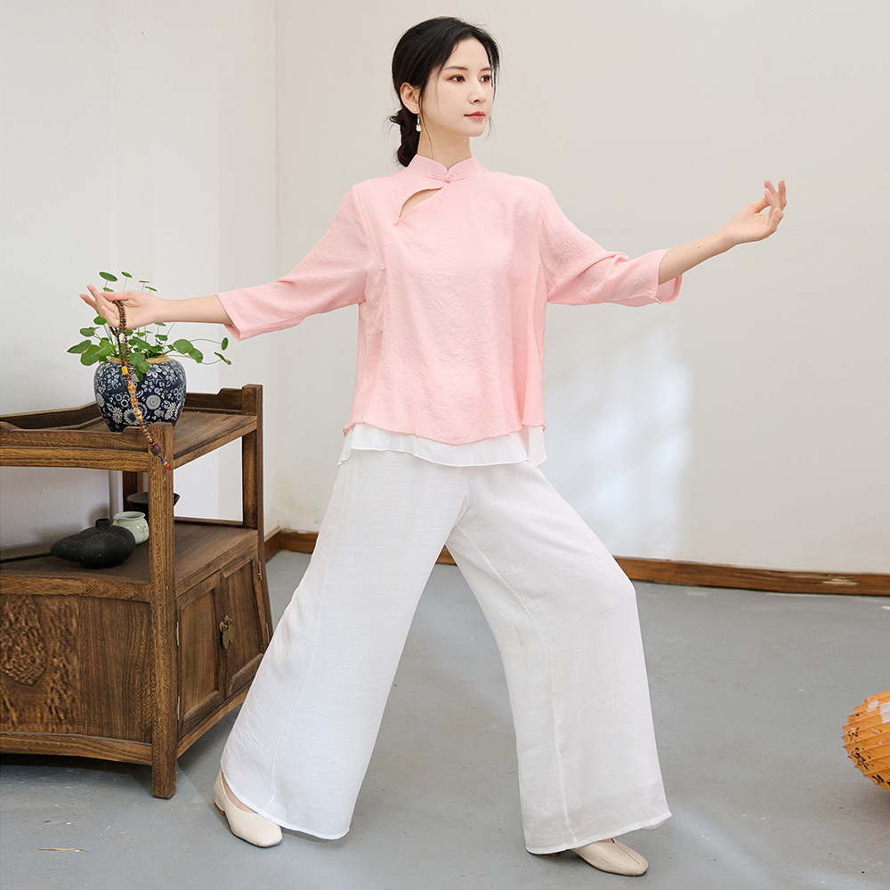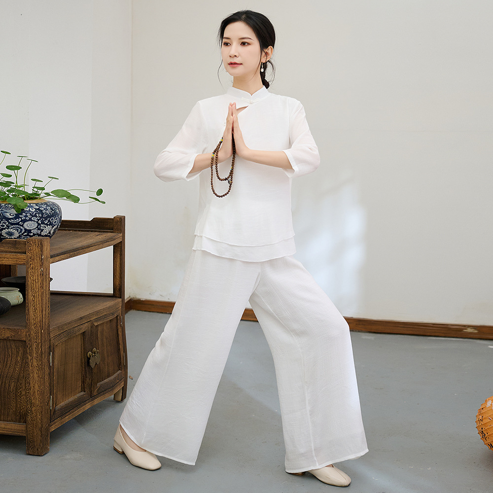 Новый китайский стиль, ретро, повседневный темперамент, китайский стиль, костюм Тай Чи, костюм для занятий медитацией в стиле дзен, свободный костюм для йоги, костюм из двух предметов