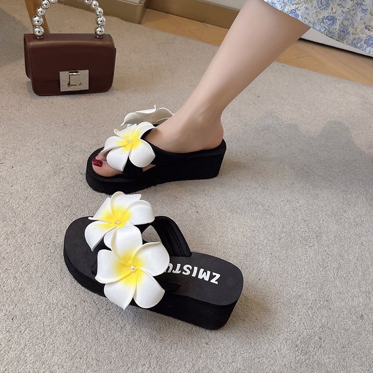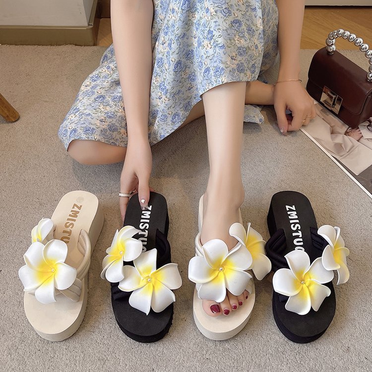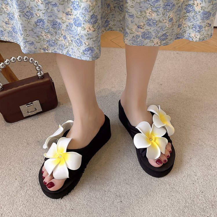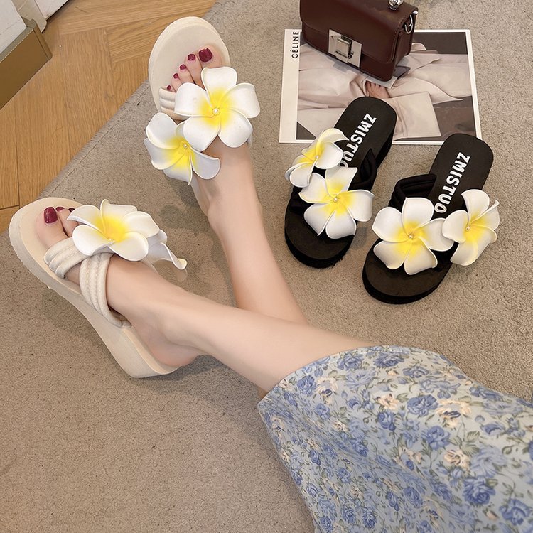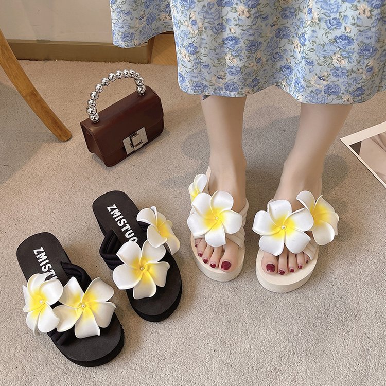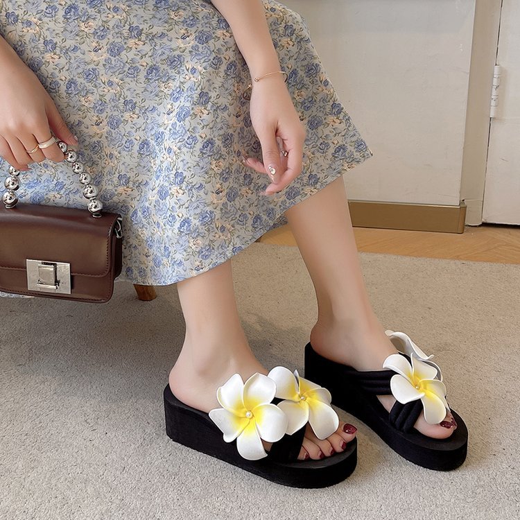 Женские тапочки с цветочным принтом, лето 2025, повседневные сандалии на толстой подошве для улицы, в сочетании с платьями, девчачьими туфлями на танкетке.