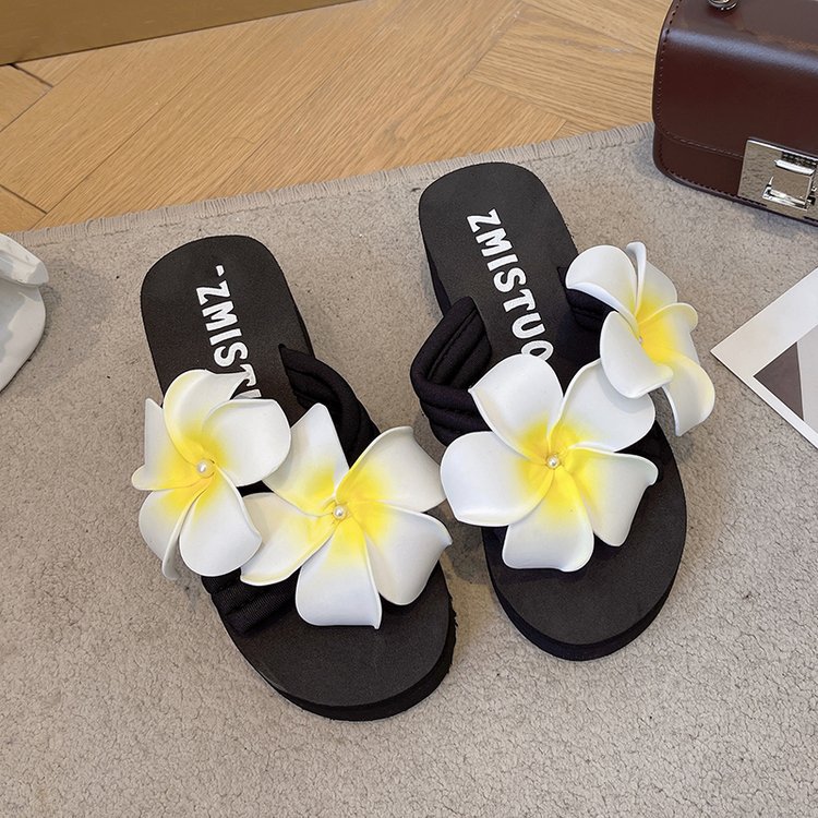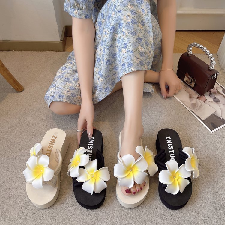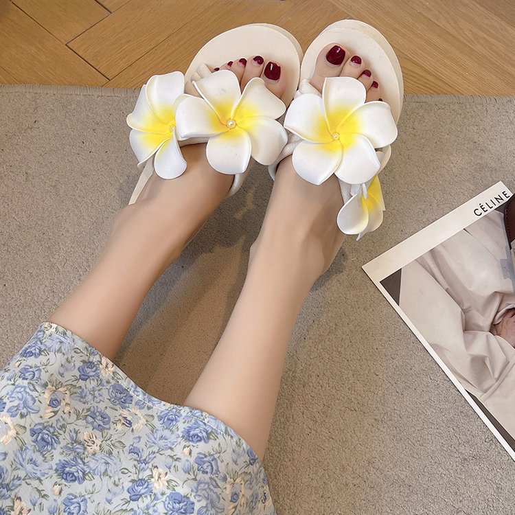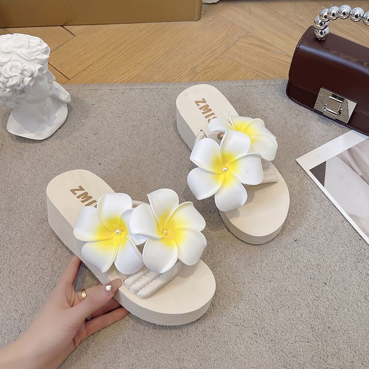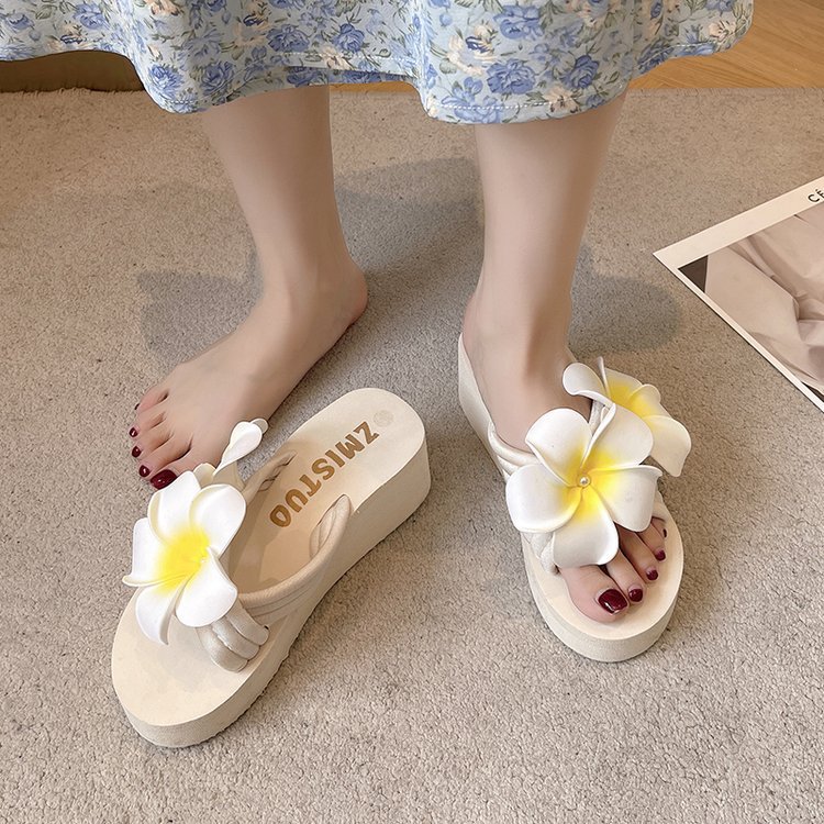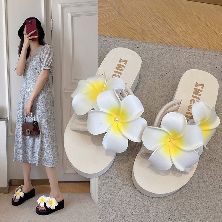 Женские тапочки с цветочным принтом, лето 2025, повседневные сандалии на толстой подошве для улицы, в сочетании с платьями, девчачьими туфлями на танкетке.