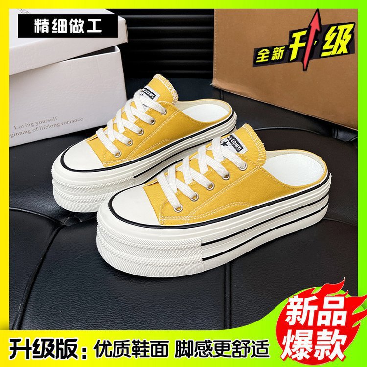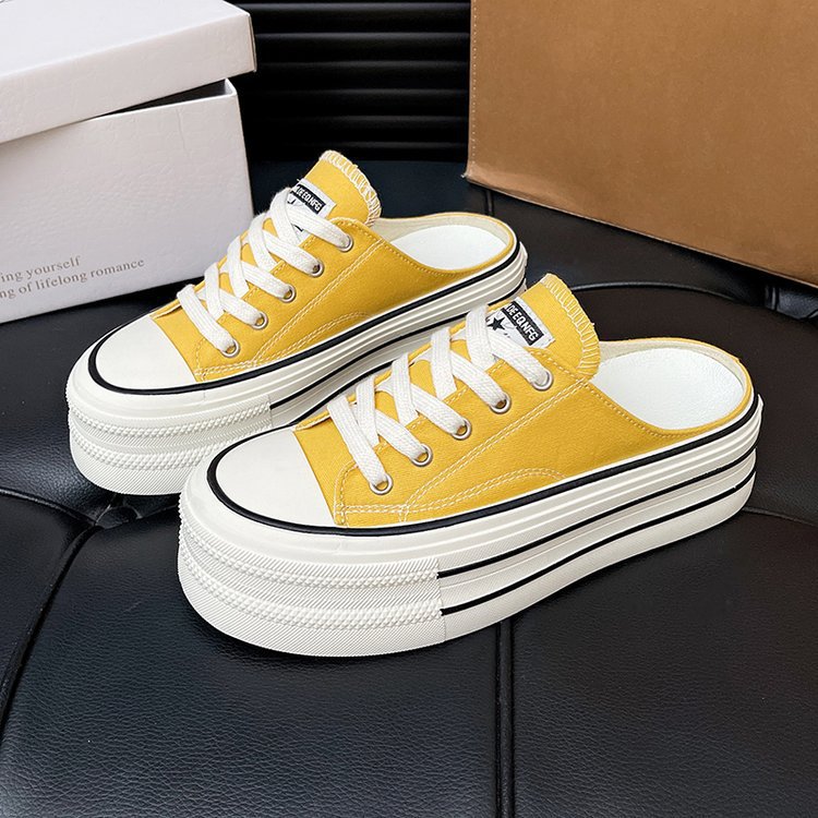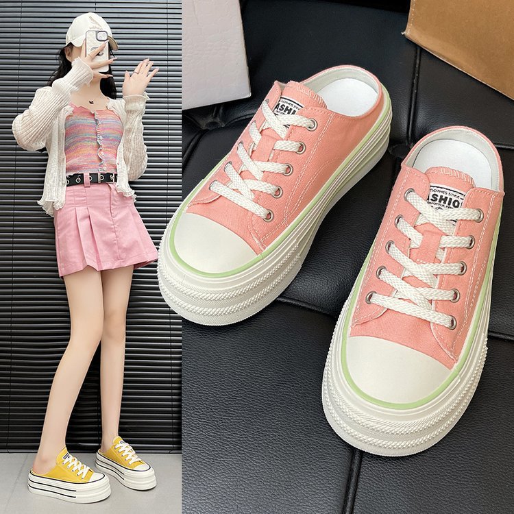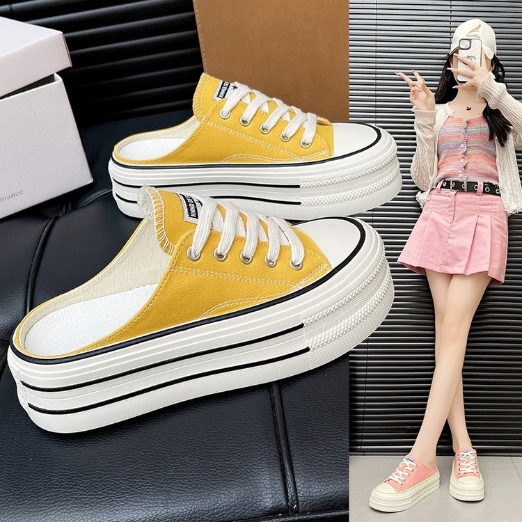 Женские летние туфли-лодочки 2025 года, новые, в стиле преппи, из ткани цвета конфетти, на плоской подошве, с толстой подошвой, простые полусабо.