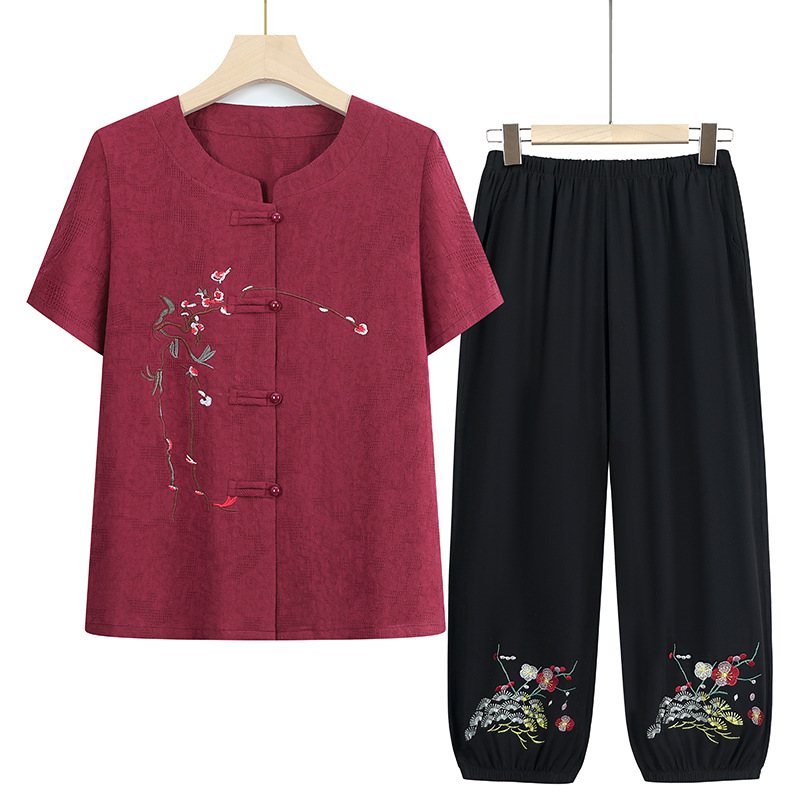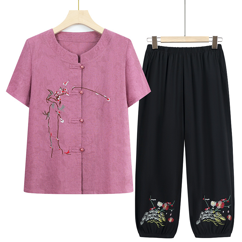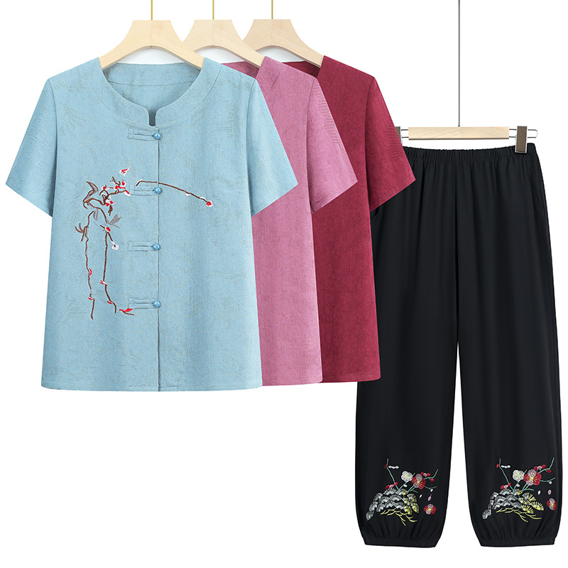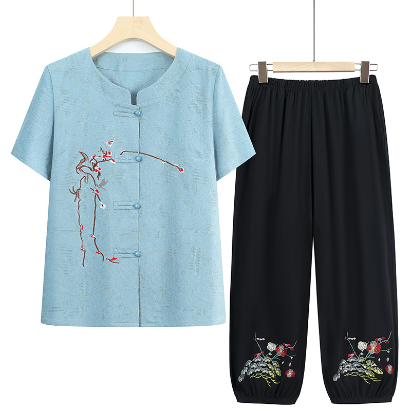 Среднего и пожилого возраста бабушка летняя одежда костюм хлопчатобумажная льняная девушка мама большой размер рубашка пожилая одежда вышивка костюм