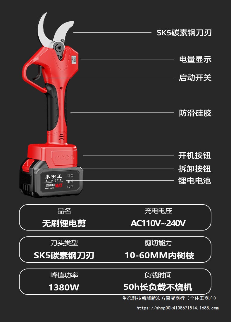 Импортные электрические секаторы Honda King, секаторы для обрезки ветвей, беспроводные ножницы для фруктовых деревьев, литиевая батарея, перезаряжаемые садовые ножницы для толстых ветвей