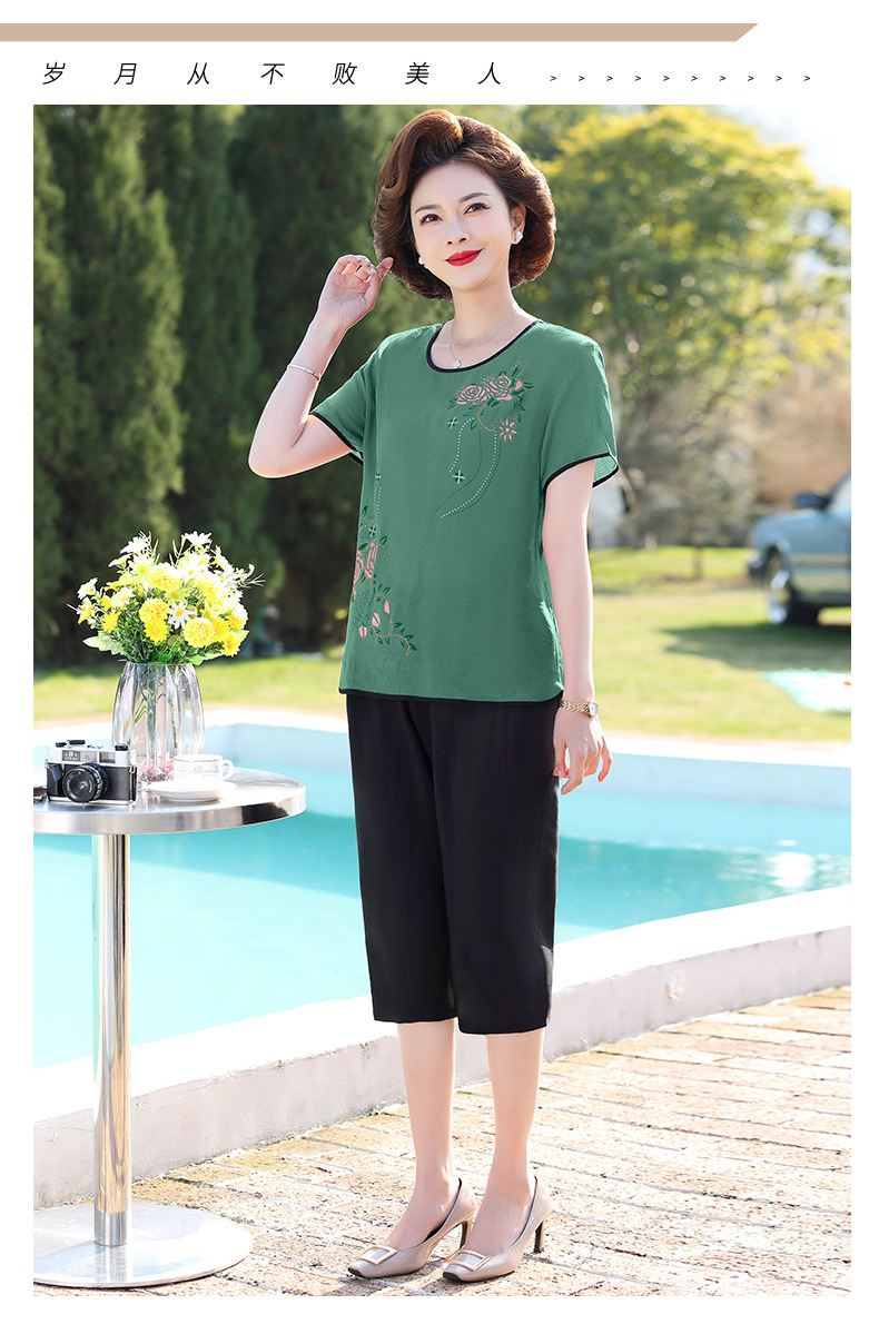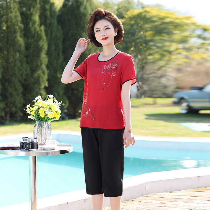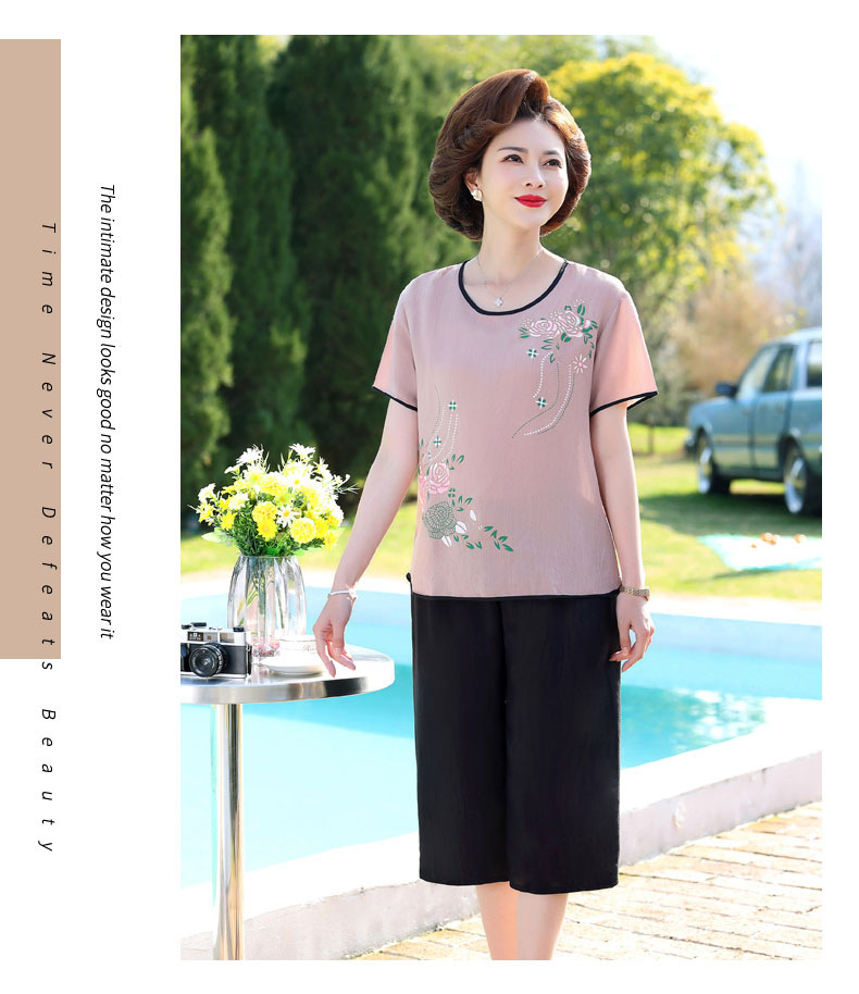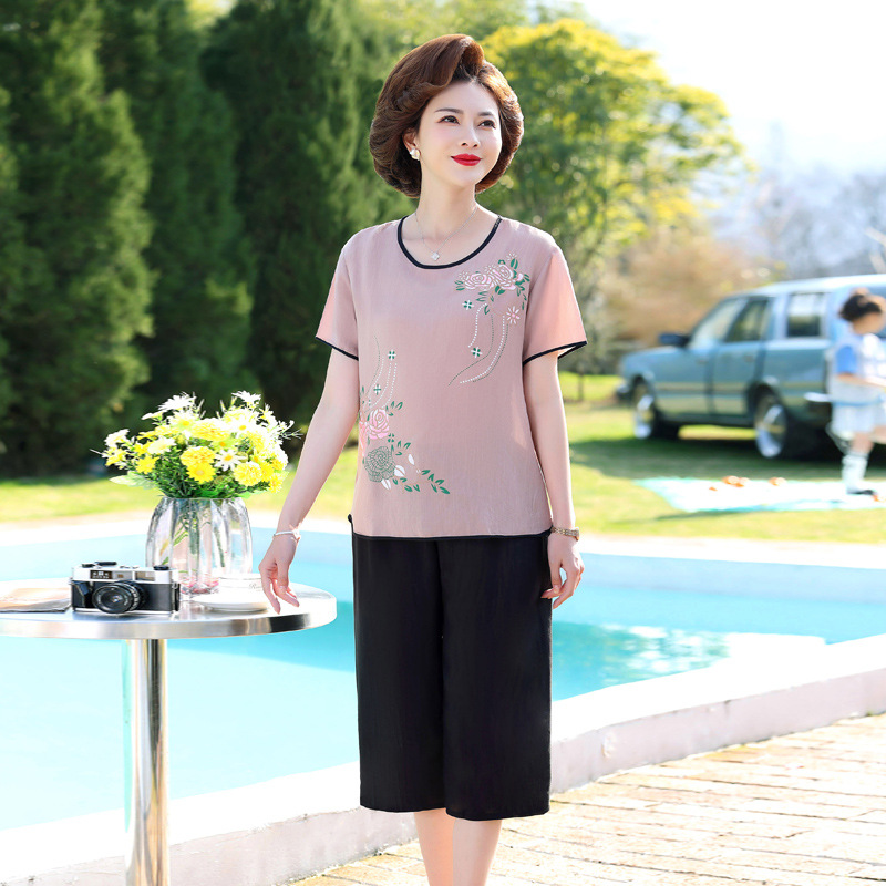 Летний костюм для новоиспеченной мамы 2025 года, модный топ-двойка, летняя футболка с коротким рукавом для женщин среднего и пожилого возраста