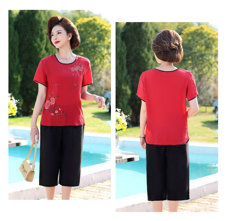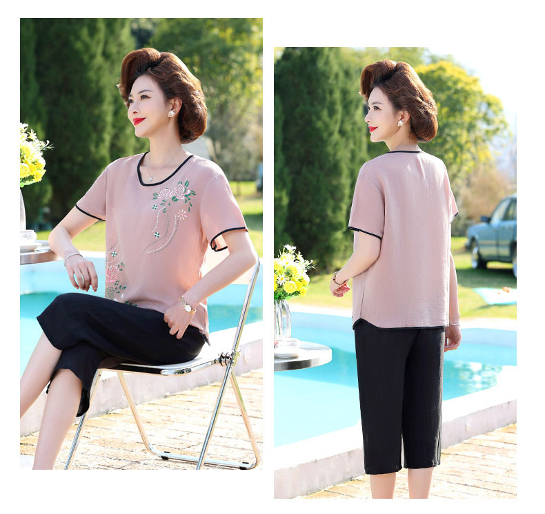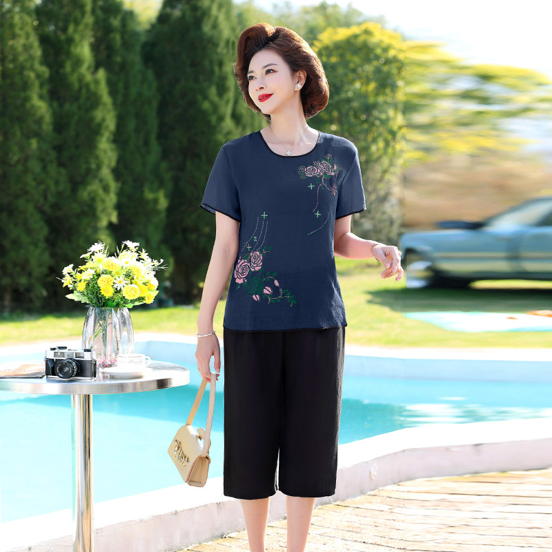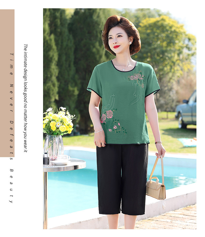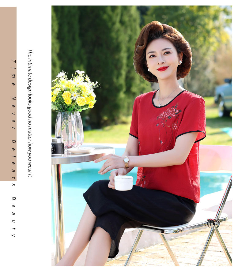 Летний костюм для новоиспеченной мамы 2025 года, модный топ-двойка, летняя футболка с коротким рукавом для женщин среднего и пожилого возраста