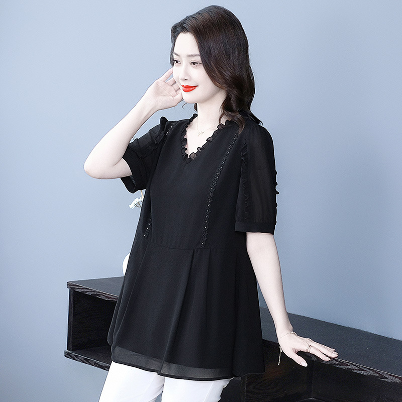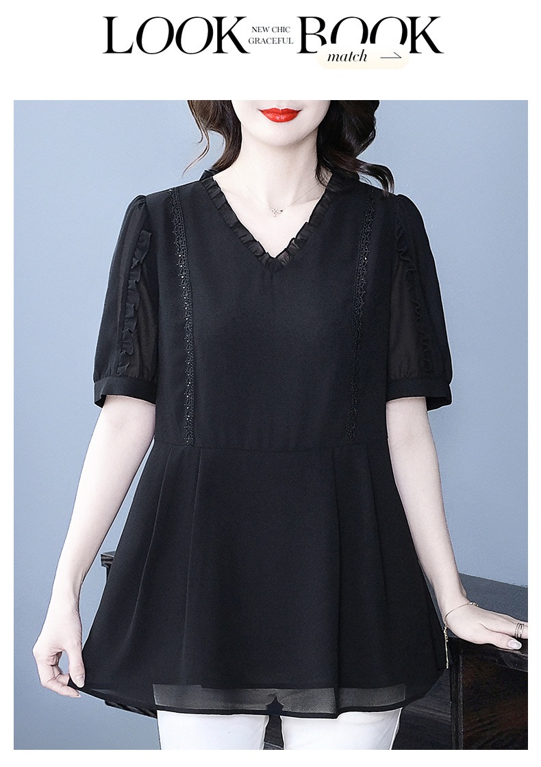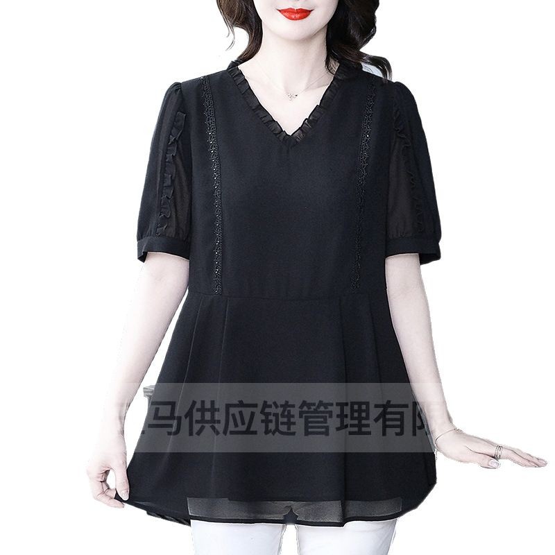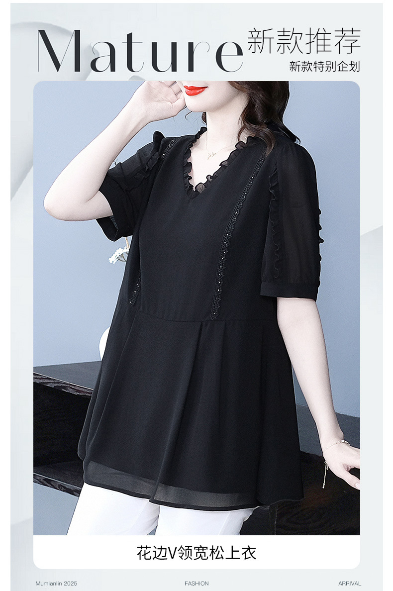 2025 лето новый французский европейский стиль высокого класса счетчик кружева мода шифоновая рубашка топ большой размер толстая MM женская одежда