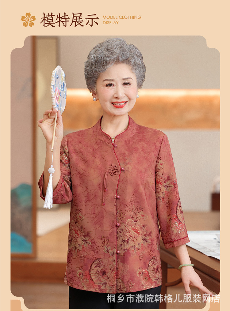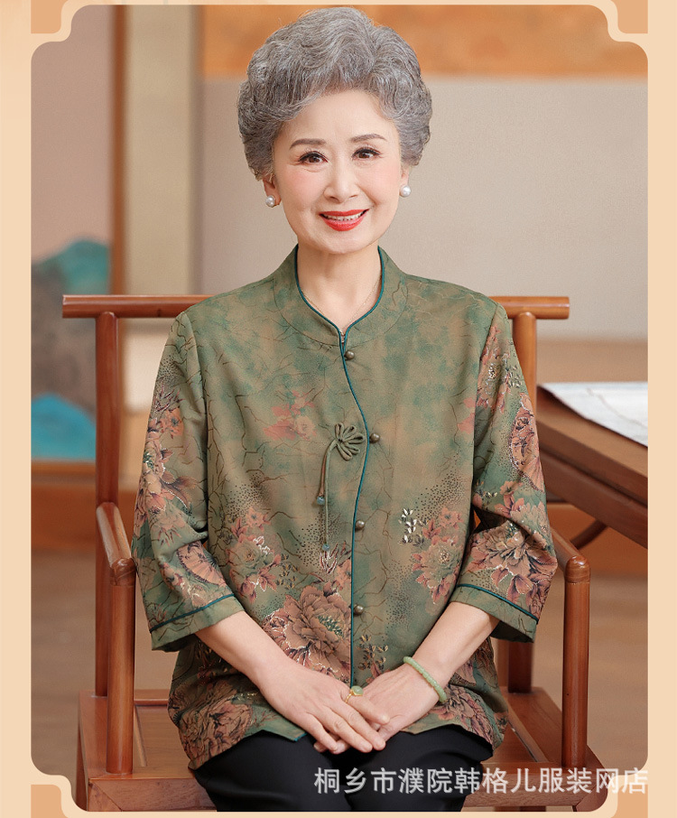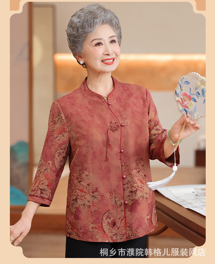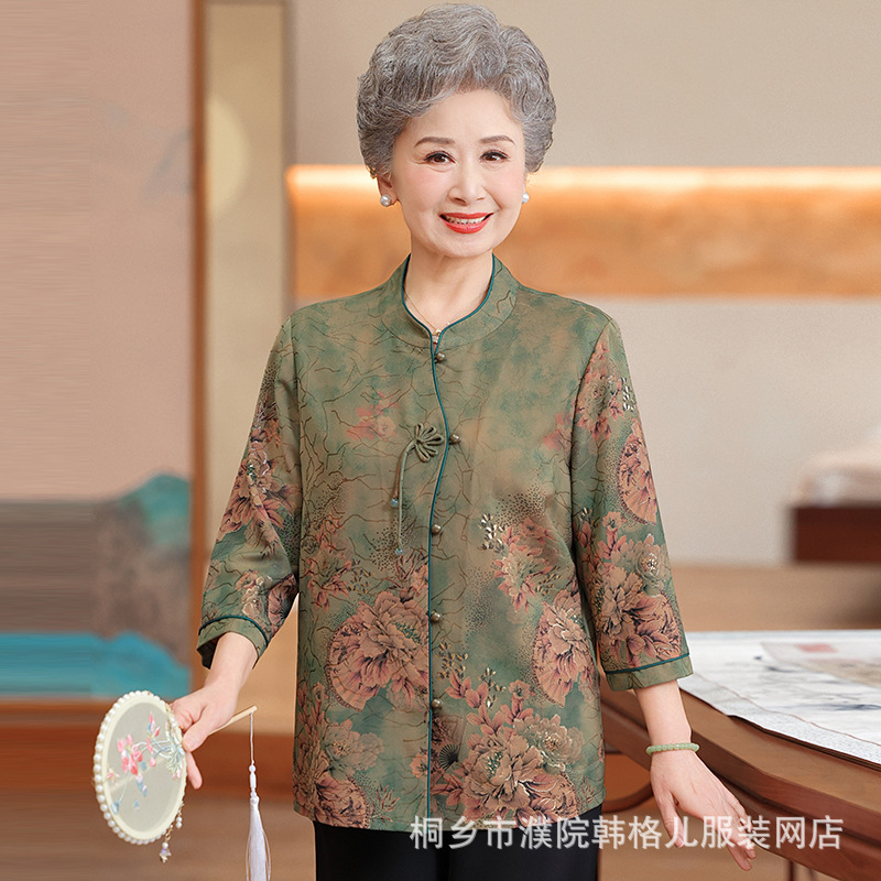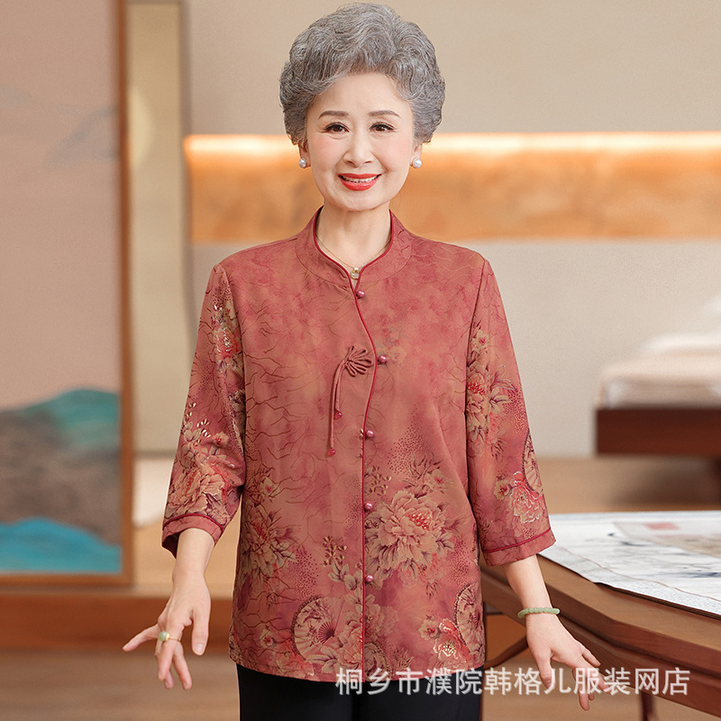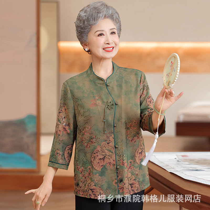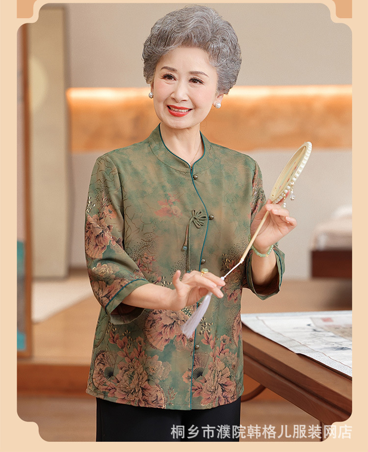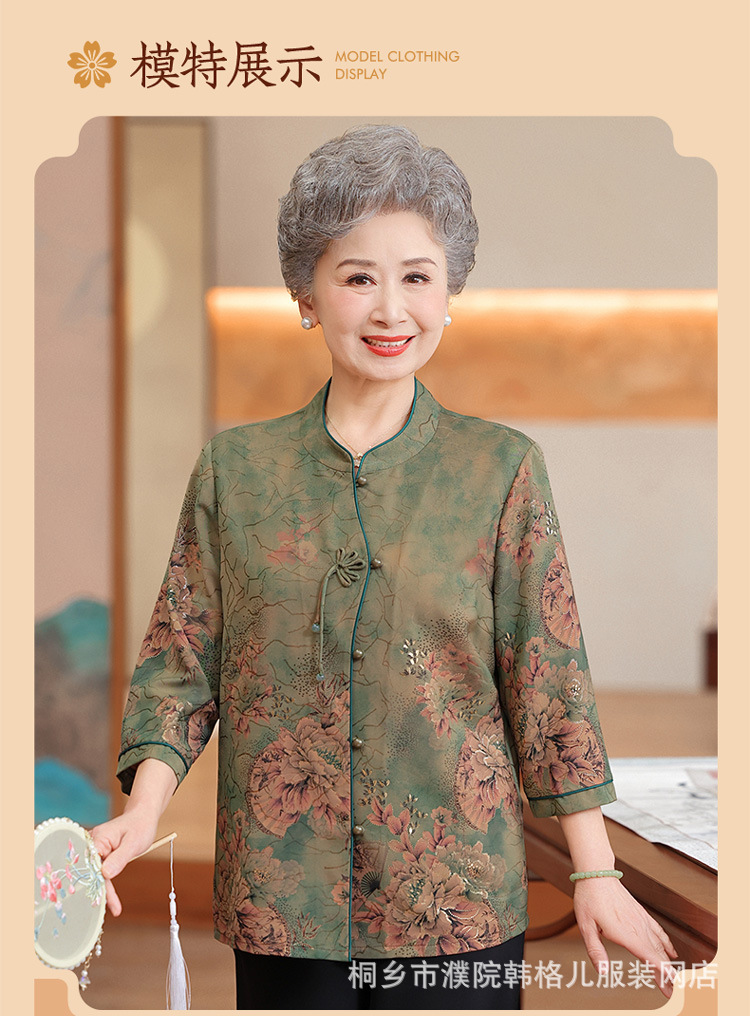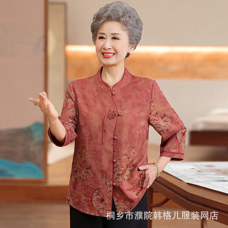 Пожилые люди летняя женская рубашка бабушка новый китайский стиль топ старухи пожилая одежда пожилая мама рубашка