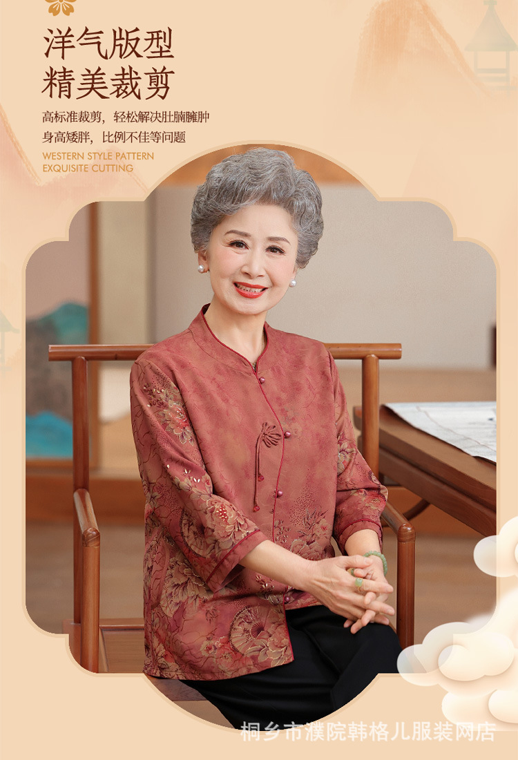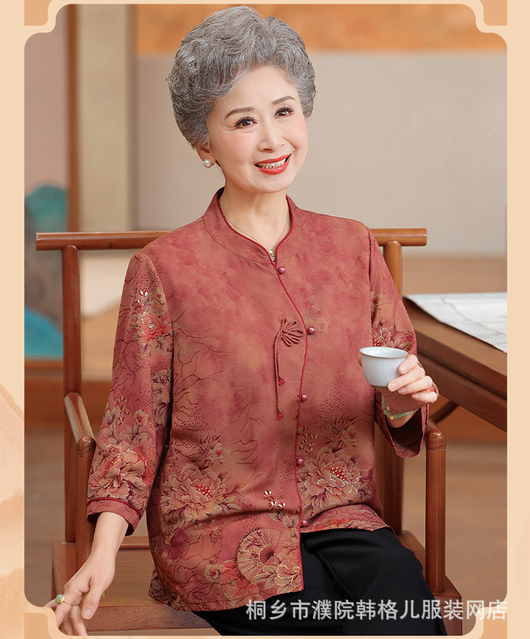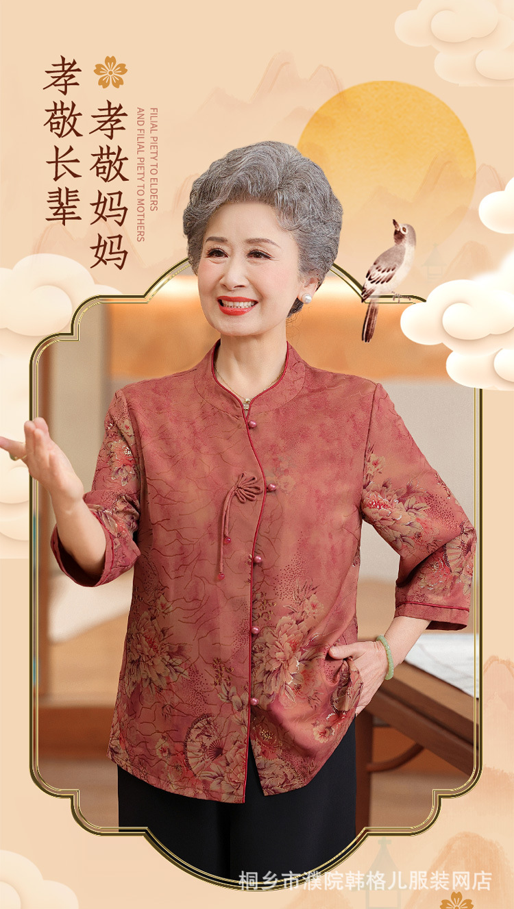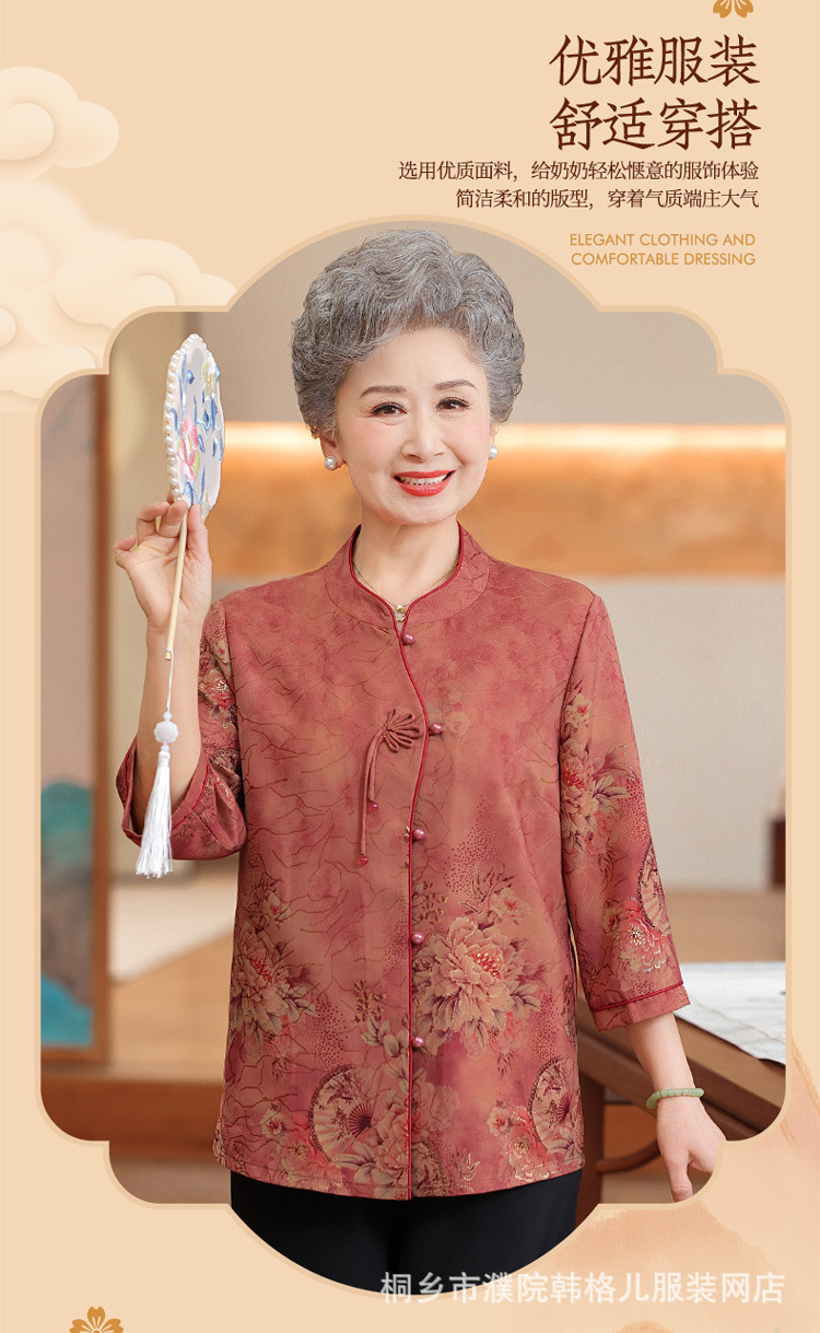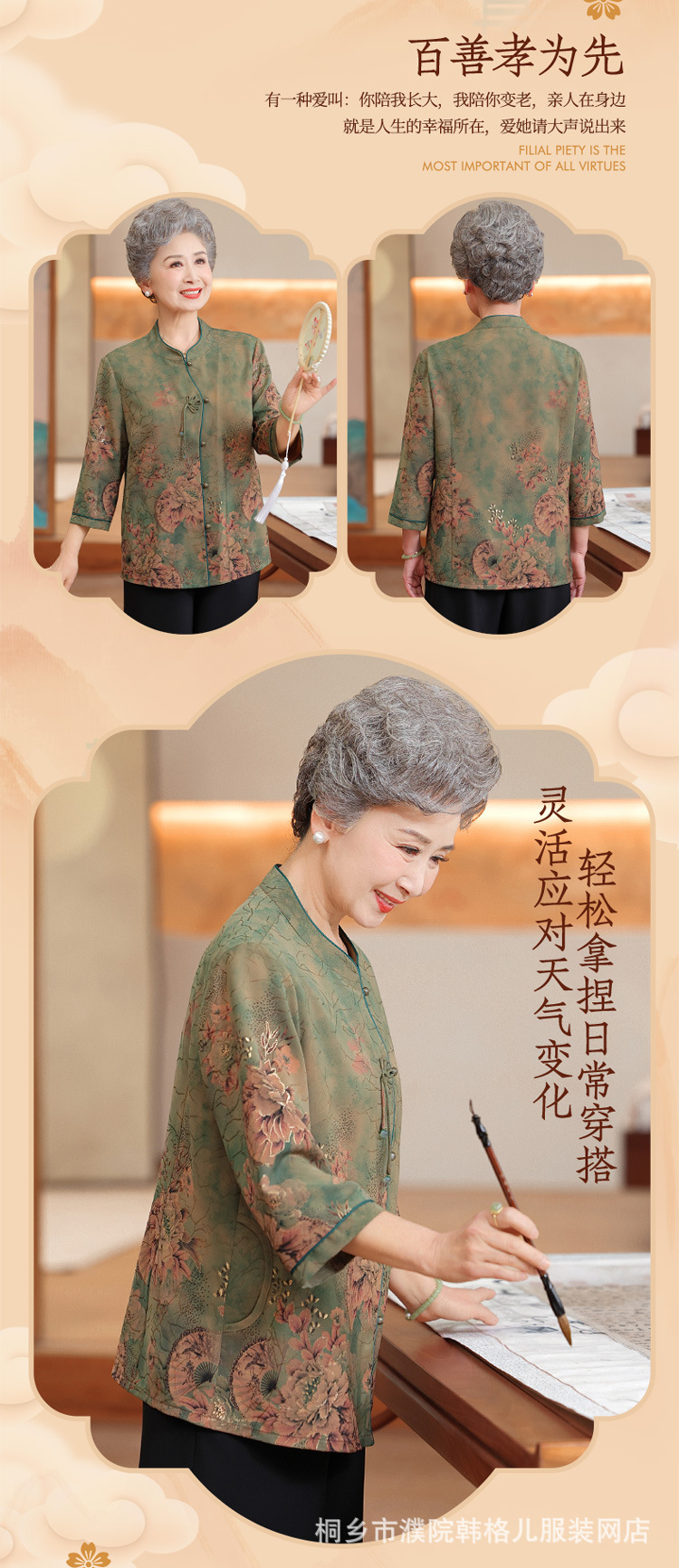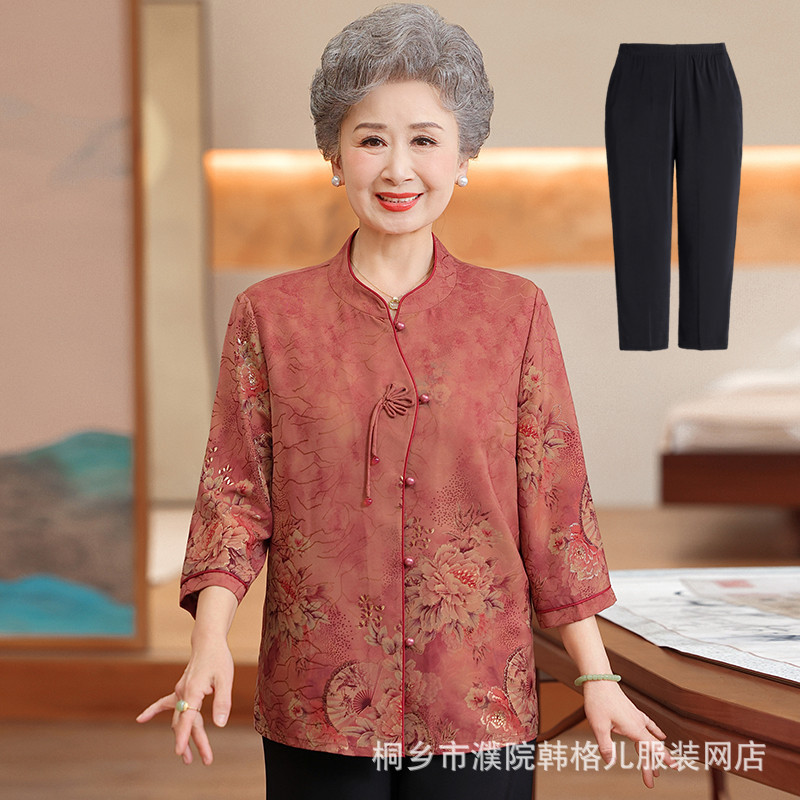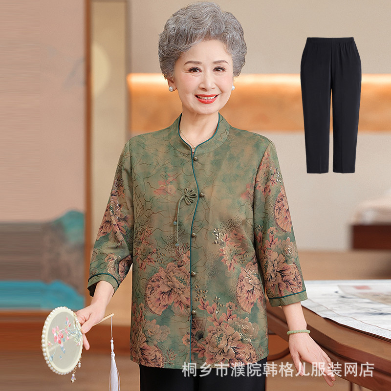 Пожилые люди летняя женская рубашка бабушка новый китайский стиль топ старухи пожилая одежда пожилая мама рубашка