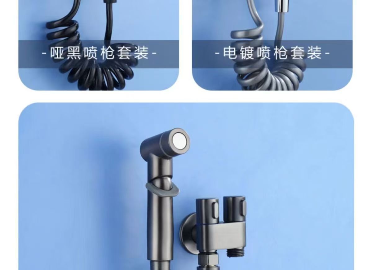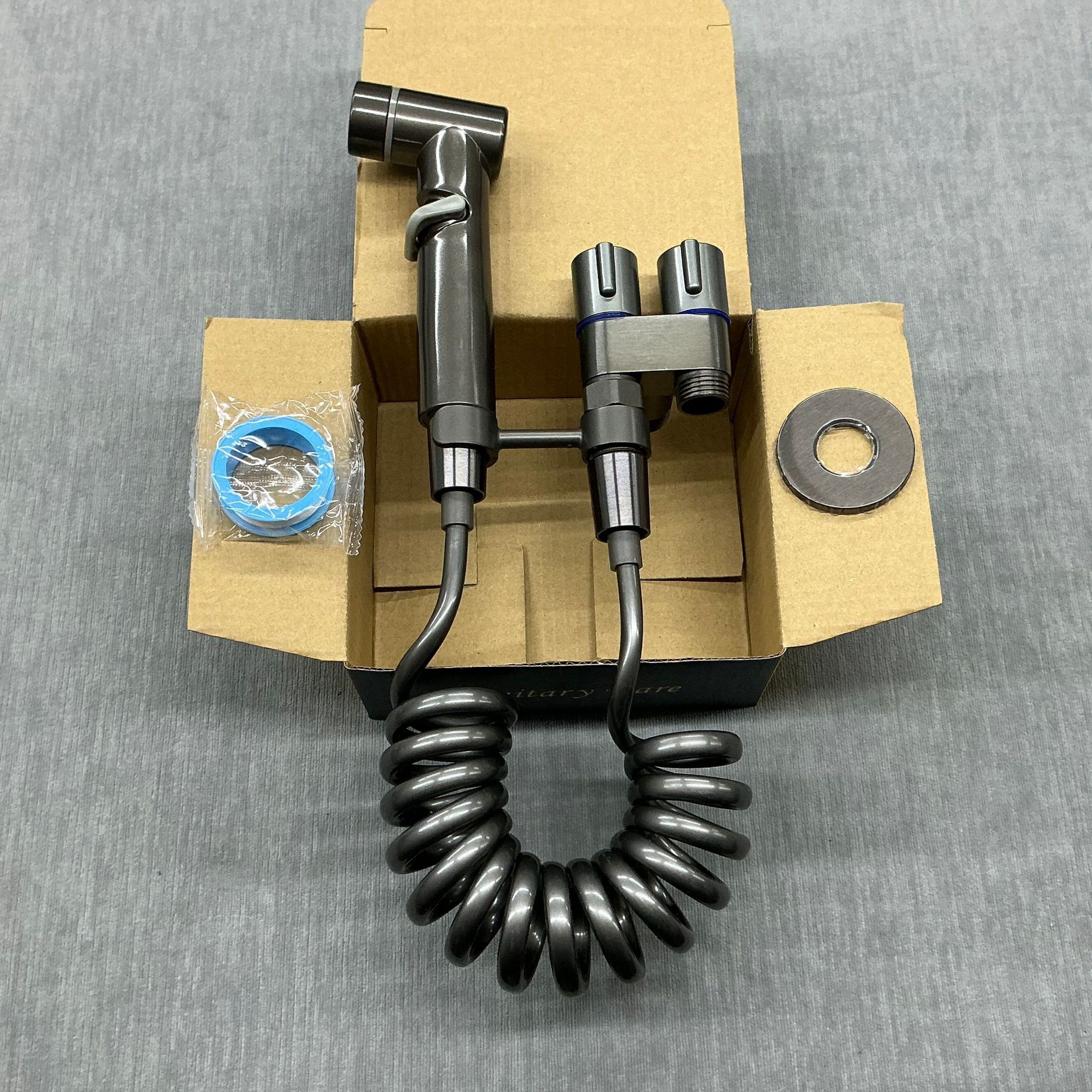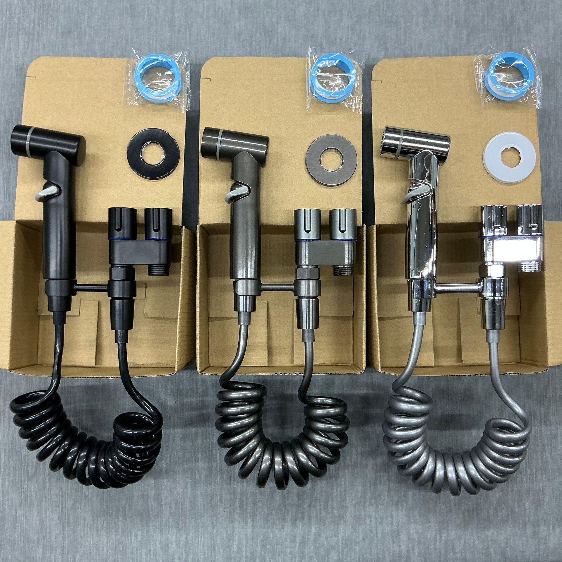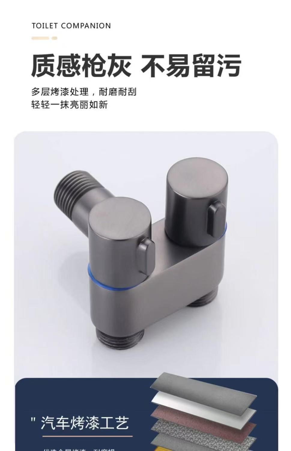 Пистолет-распылитель серого цвета [ABS]; Черный распылитель [ABS]; Гальванический распылитель [ABS]; Набор Gun Gray [нержавеющая сталь]; Черный комплект [нержавеющая сталь]; Набор для гальванического покрытия [нержавеющая сталь]; Серый угловой клапан с одним входом и двумя выходами [нержавеющая сталь]; Черный угловой кран с одним входом и двумя выходами [нержавеющая сталь]; Гальванизированный угловой клапан с одним входом и двумя выходами [нержавеющая сталь]