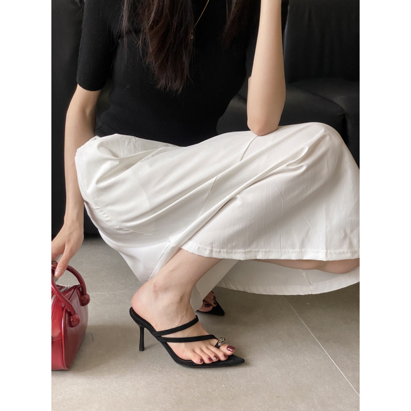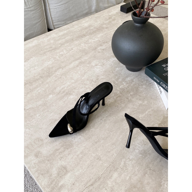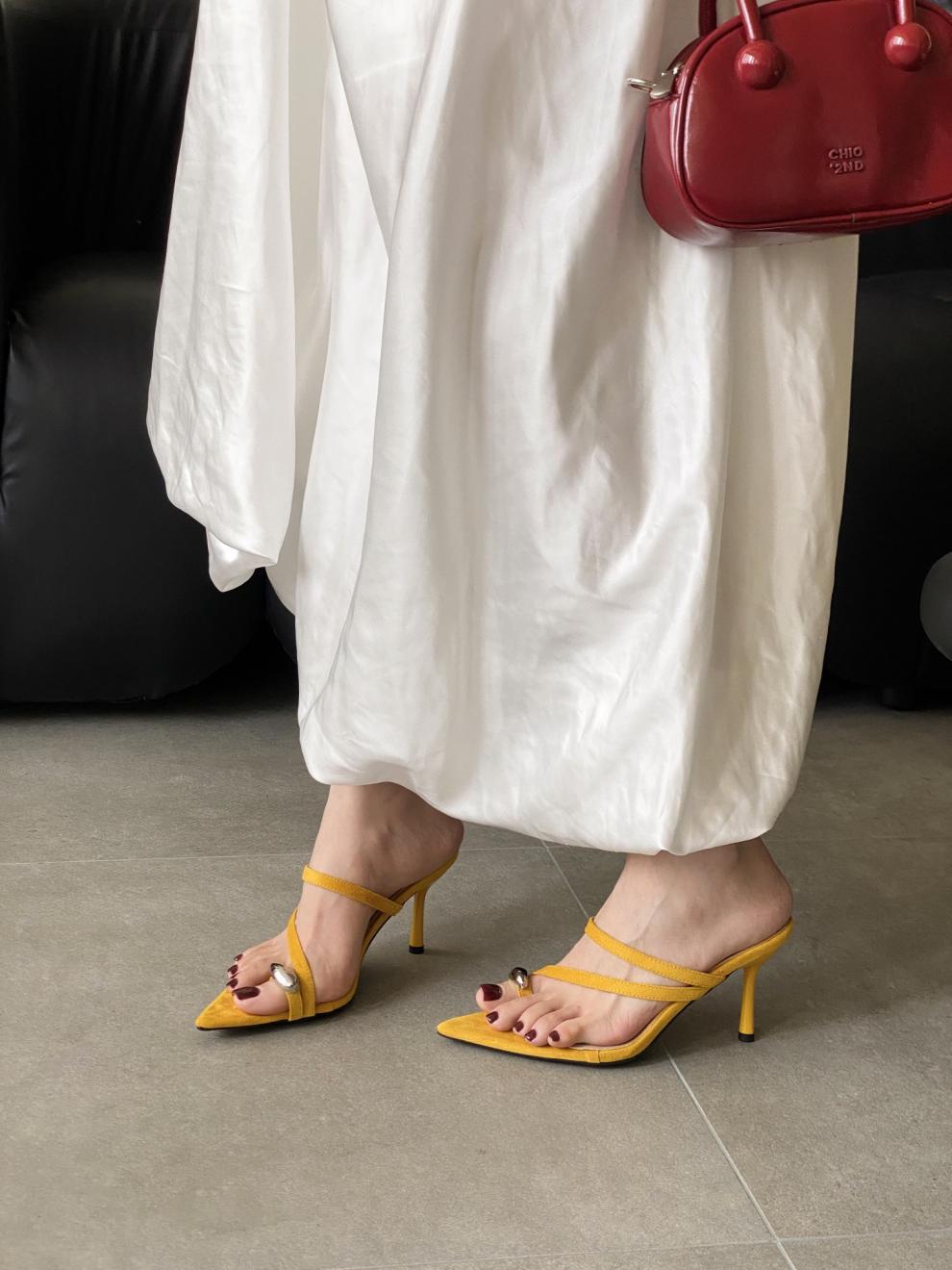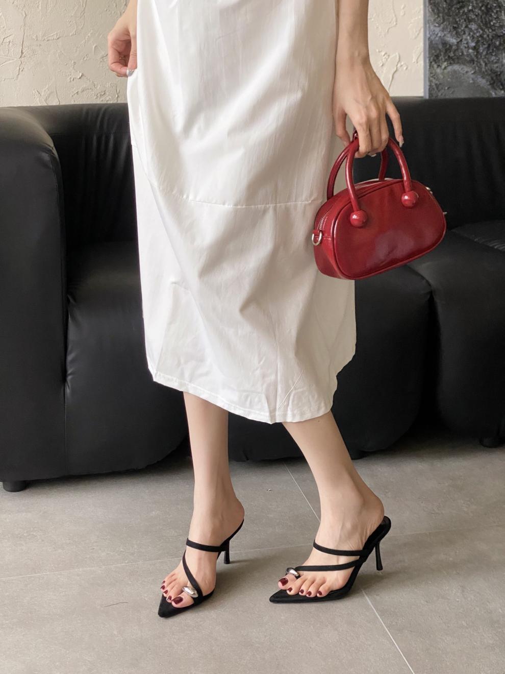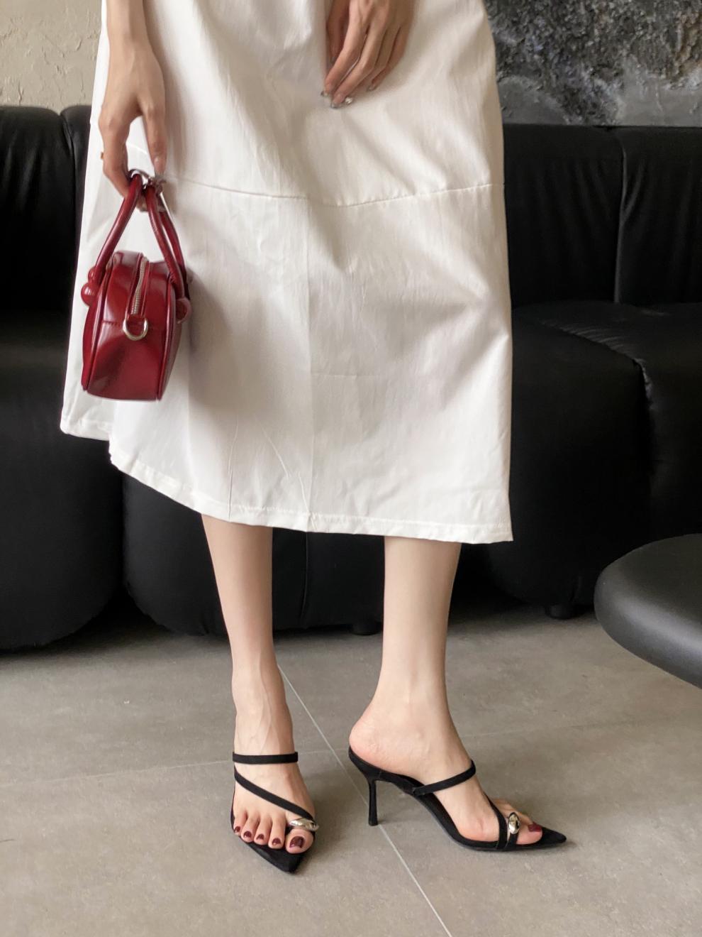 Туфли-шлепанцы на высоком каблуке-шпильке с острым носком в европейском и американском стиле, римские ремешки