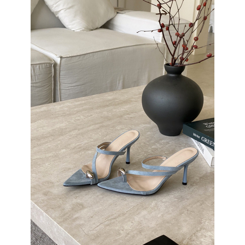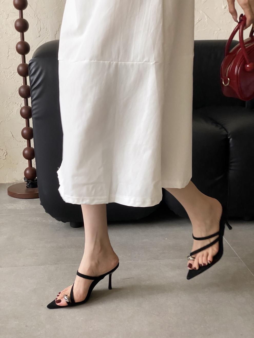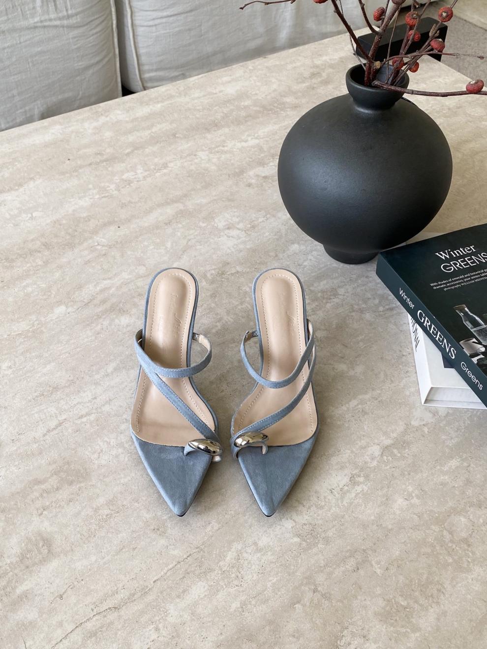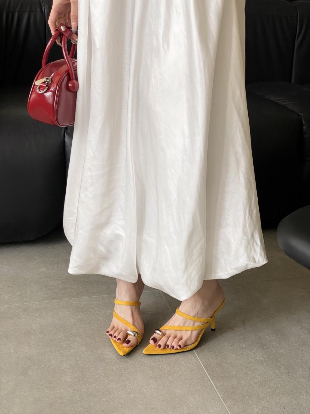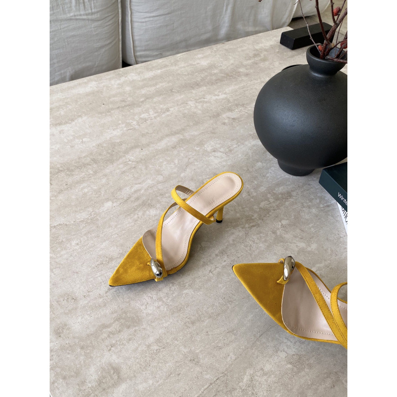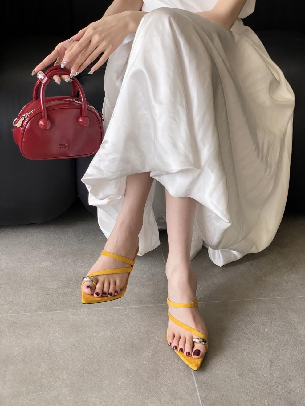 Туфли-шлепанцы на высоком каблуке-шпильке с острым носком в европейском и американском стиле, римские ремешки