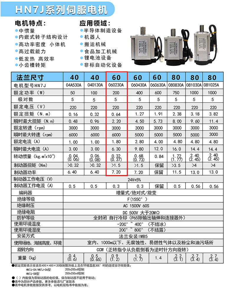 Hidawei 200W60 AC 220V серводвигатель, 3000 об/мин, двигатель с постоянным магнитом, импульсный привод шины