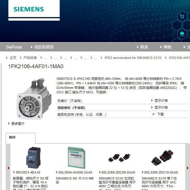 Серводвигатель Siemens 1FK2106-4AF01-1MA0 с скользящим ключом