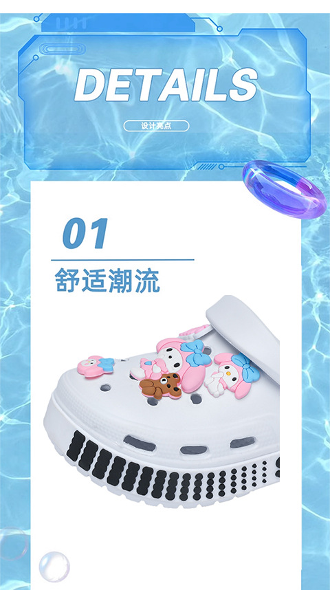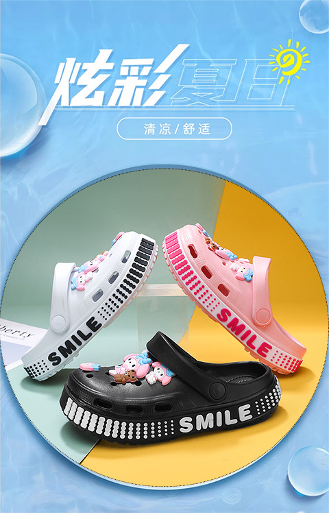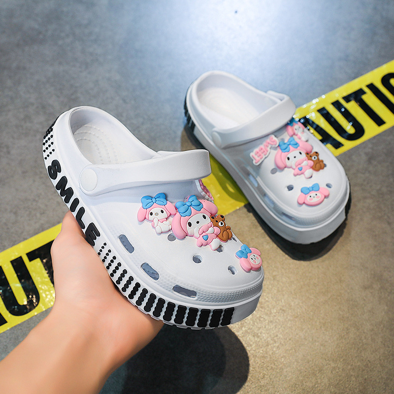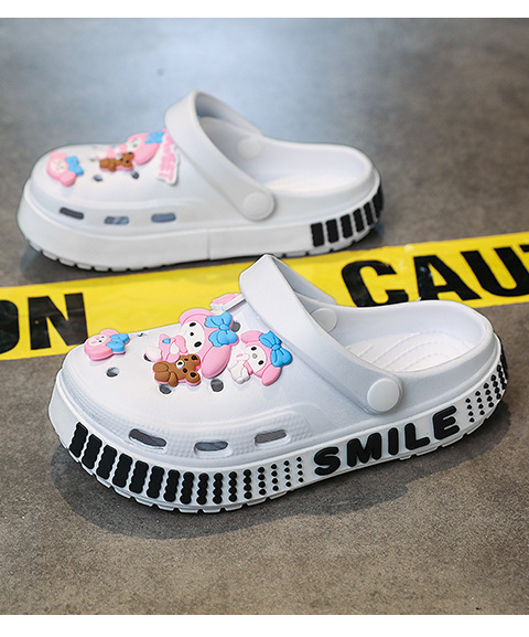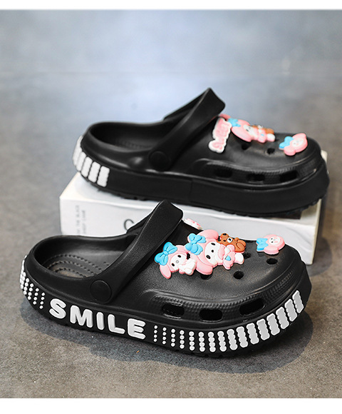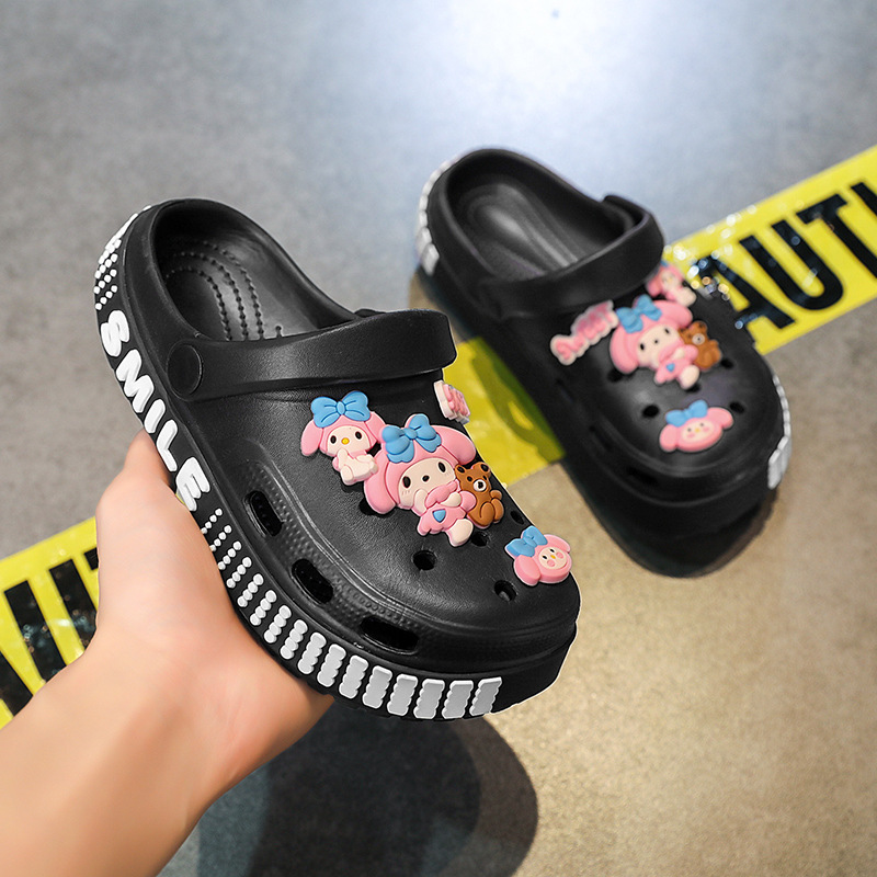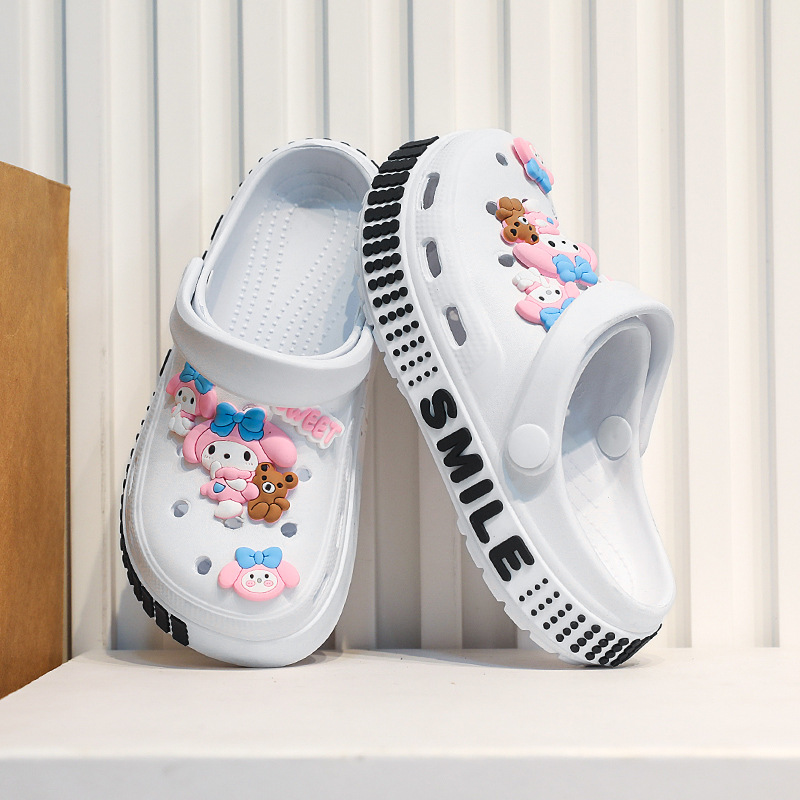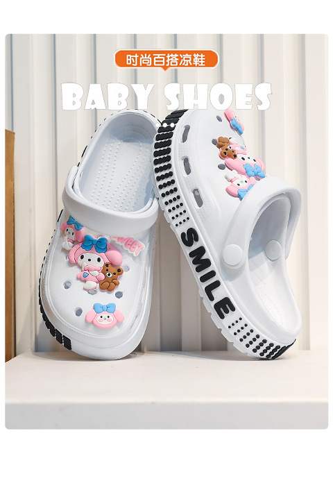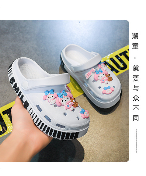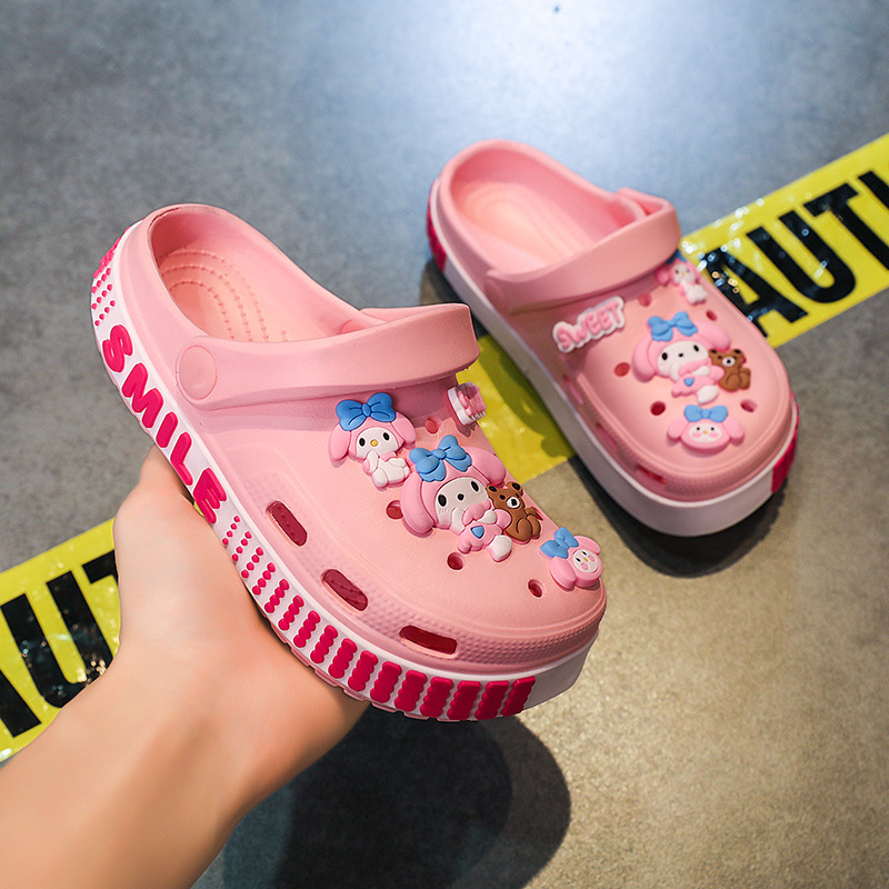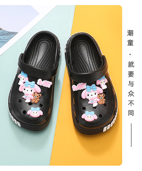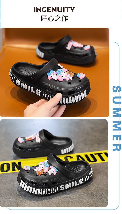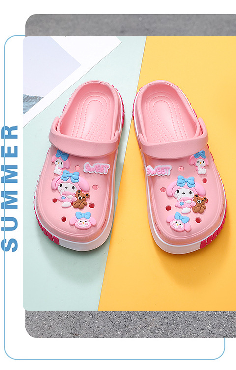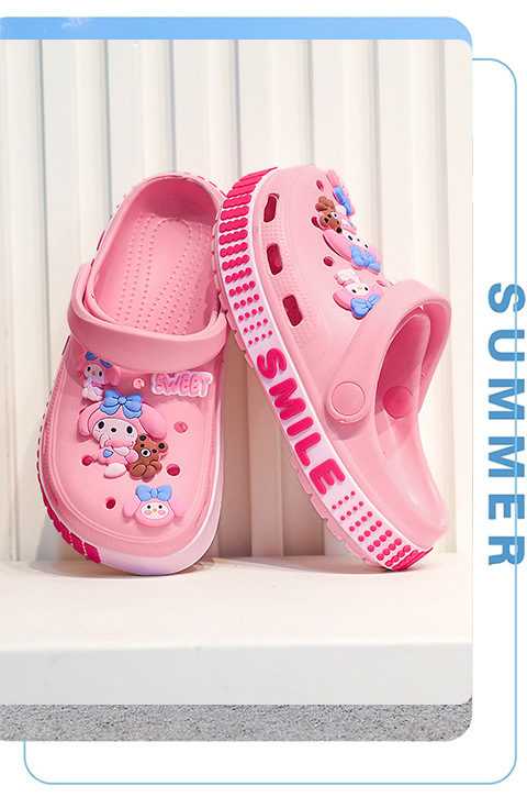 Детская обувь «крокодил» для девочек, летние новые стильные противоскользящие детские тапочки Kuromi среднего и большого размера для девочек, модная верхняя одежда, пляжная обувь