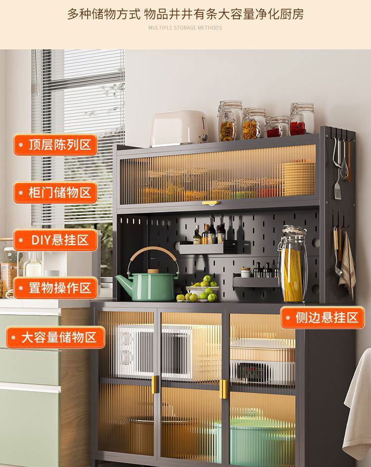Кухня Углеродистая сталь Многофункциональный обеденный шкаф стальной кованой рабочей стойки Современный минималистичный шкафчик для хранения шкафчиков