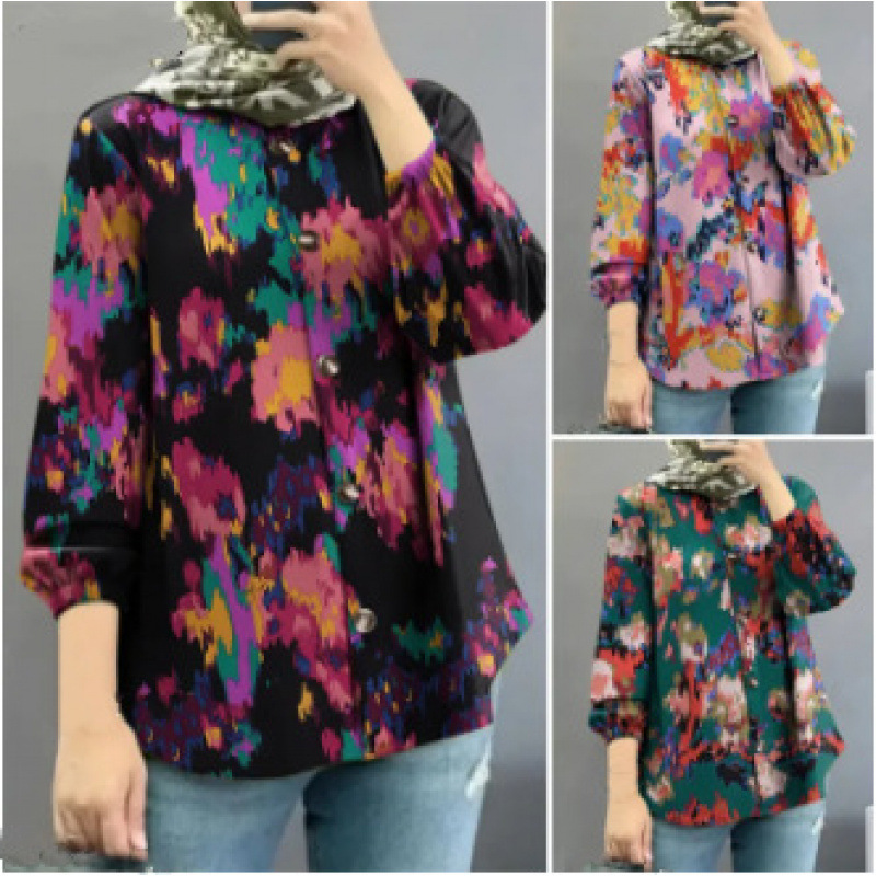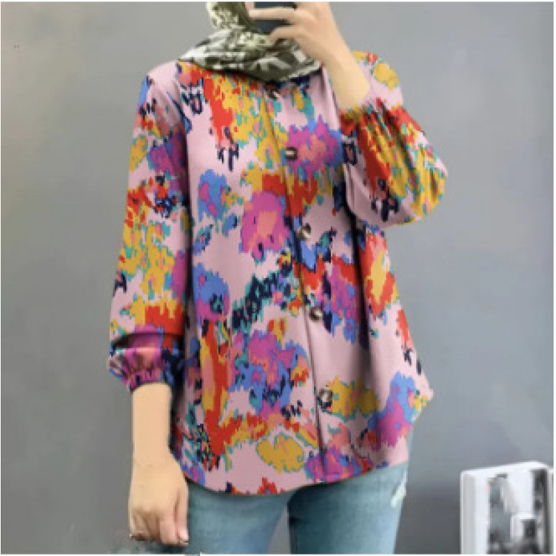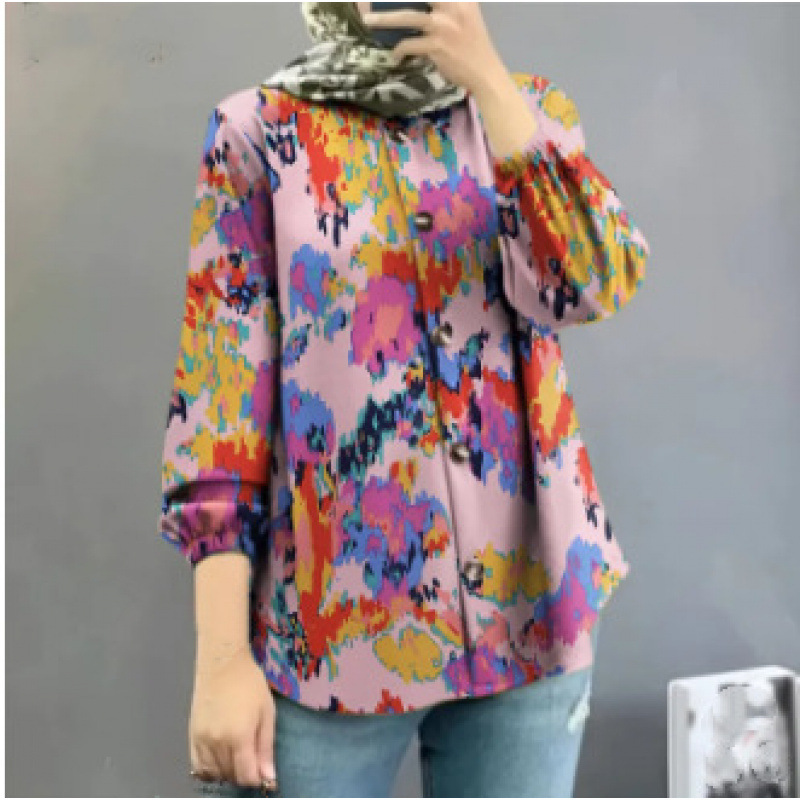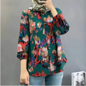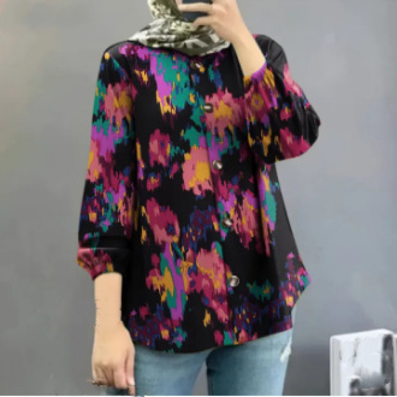 Новая женская свободная модная рубашка больших размеров с пышными рукавами и пуговицами с длинными рукавами и принтом
